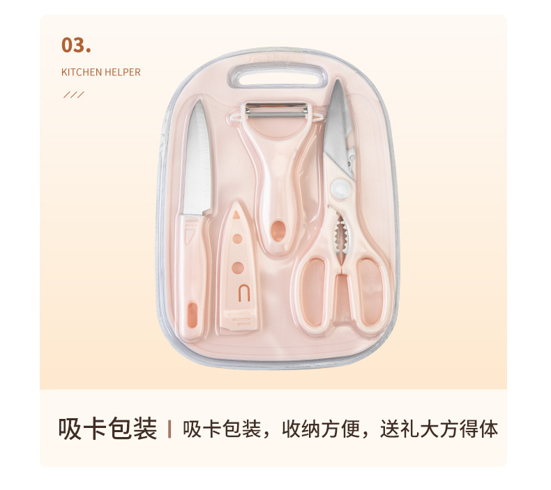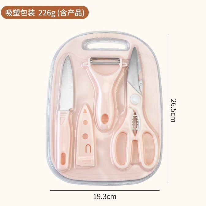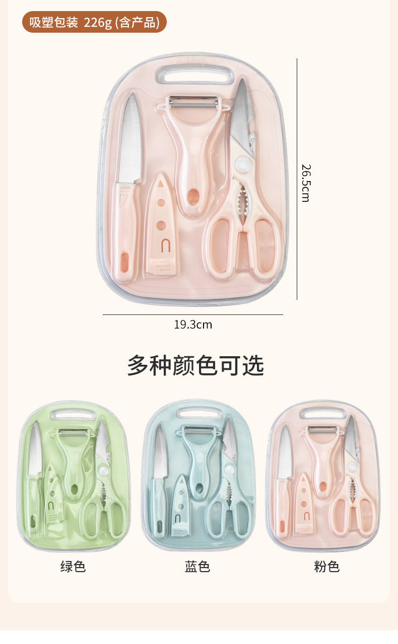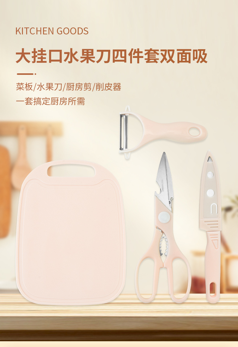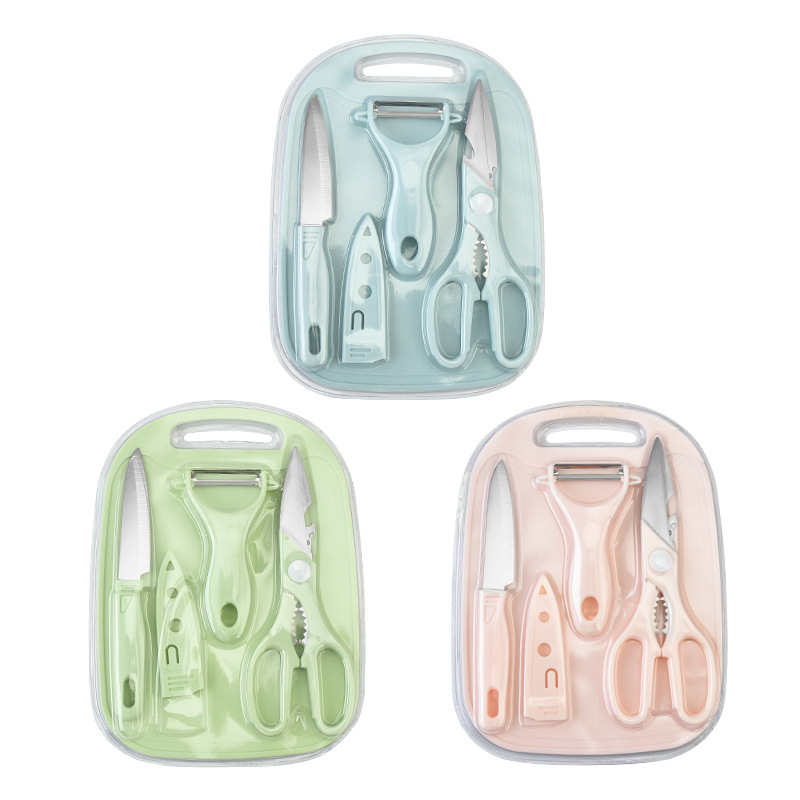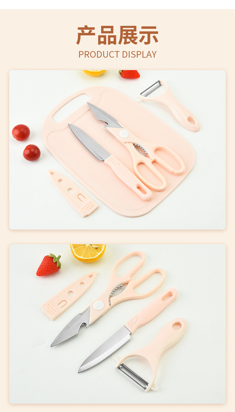 新款不锈钢刀具套装水果刀四件套菜板双面吸宝宝辅食家用便携套刀