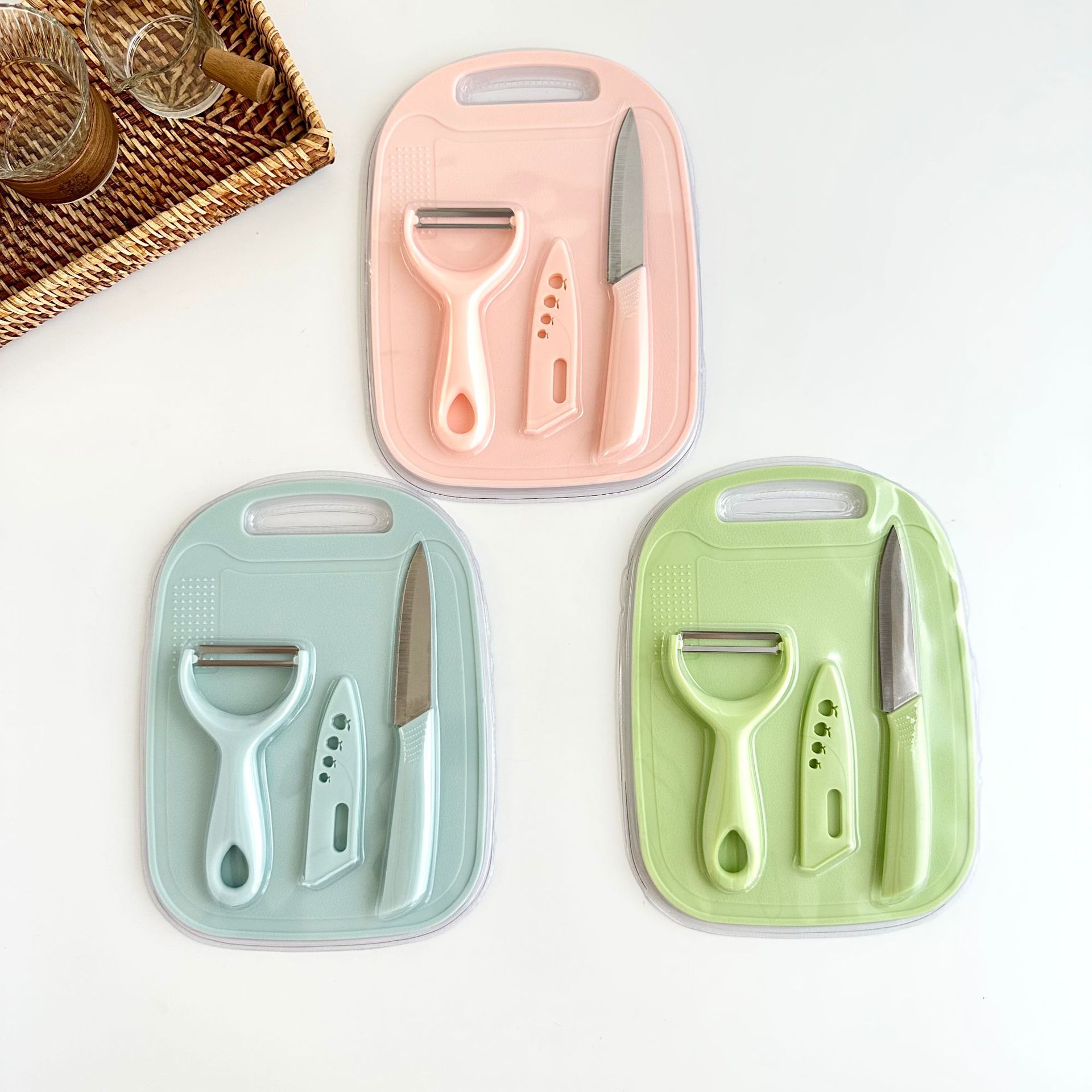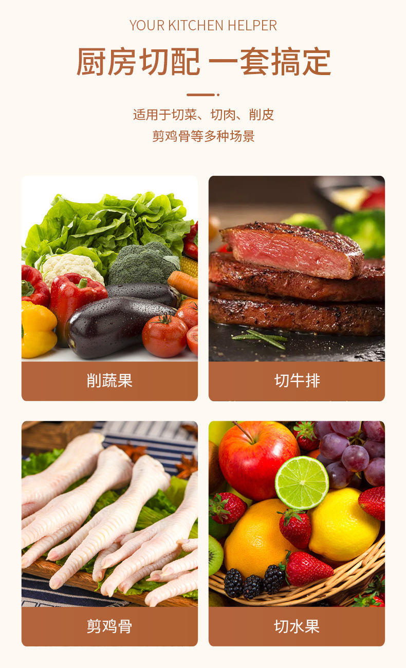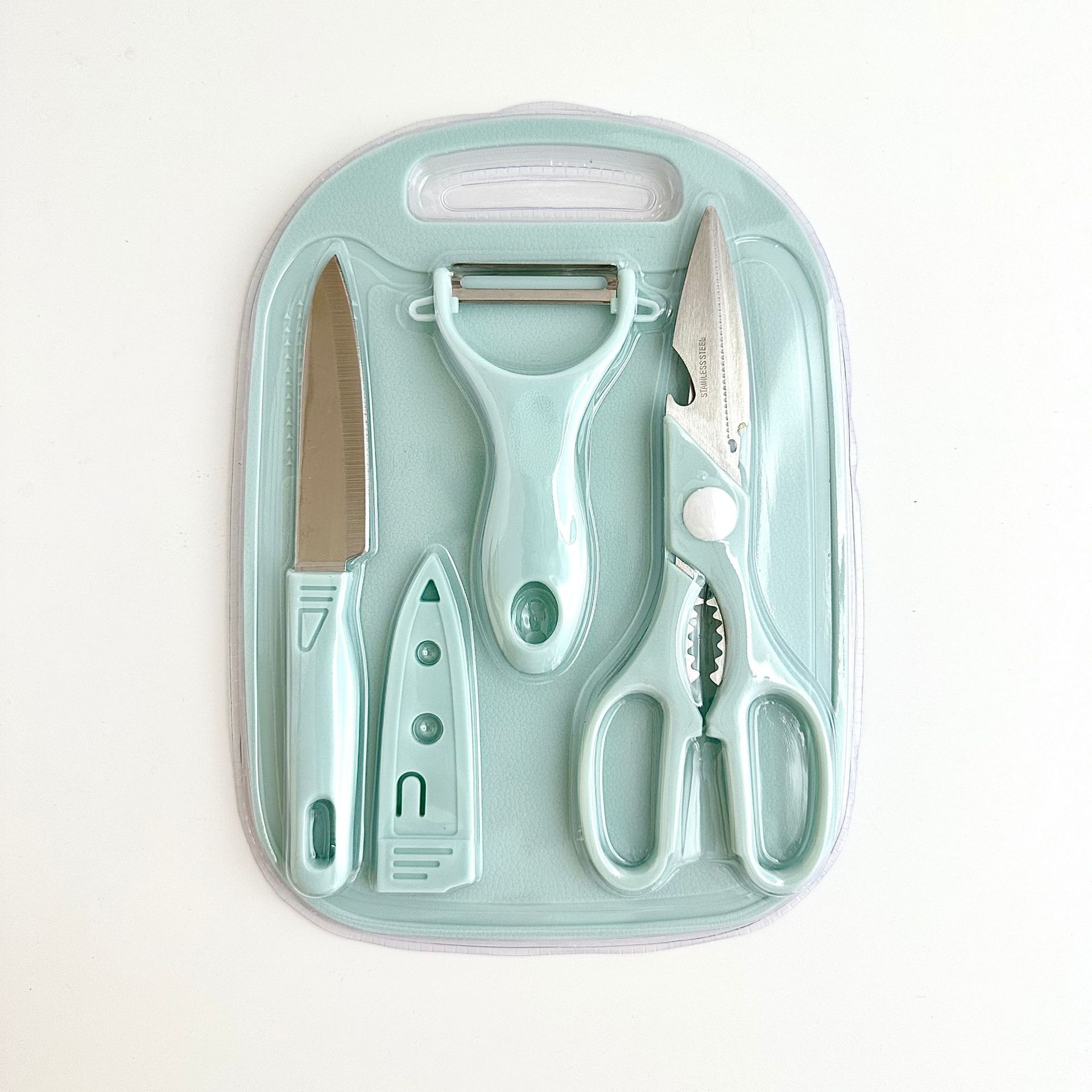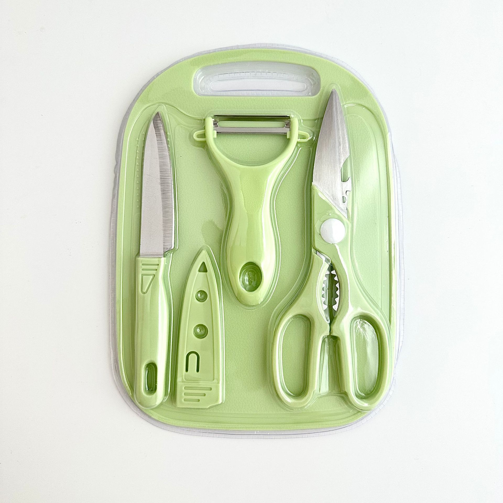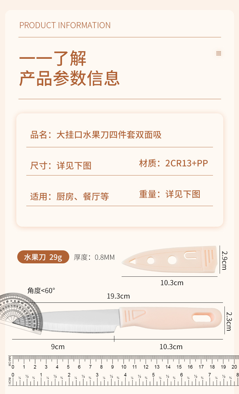 新款不锈钢刀具套装水果刀四件套菜板双面吸宝宝辅食家用便携套刀
