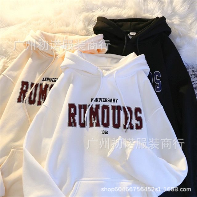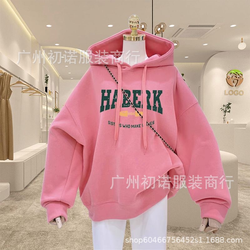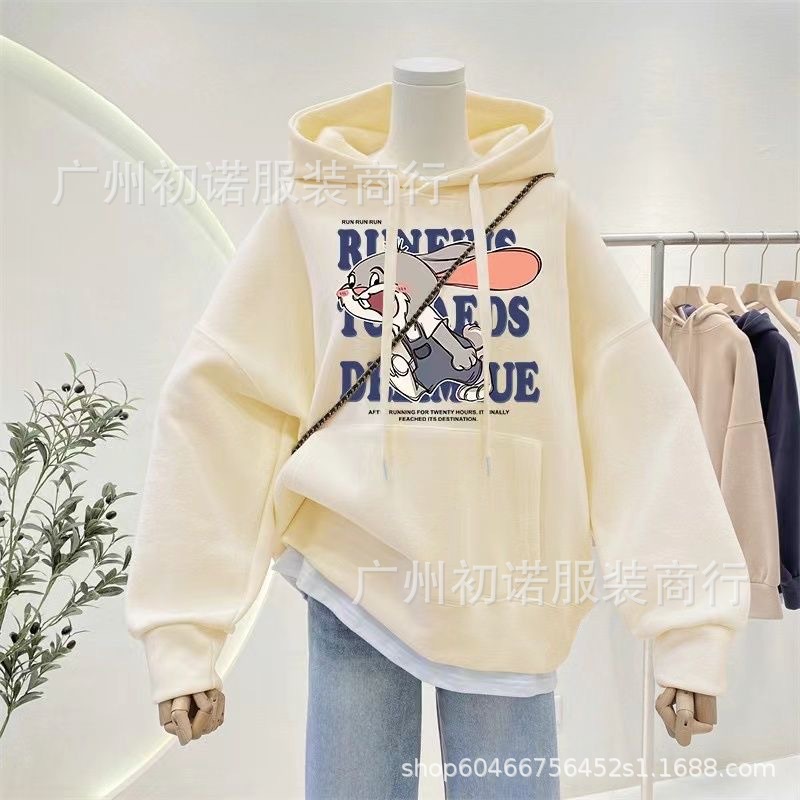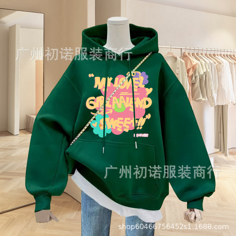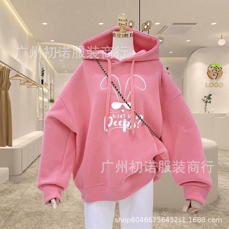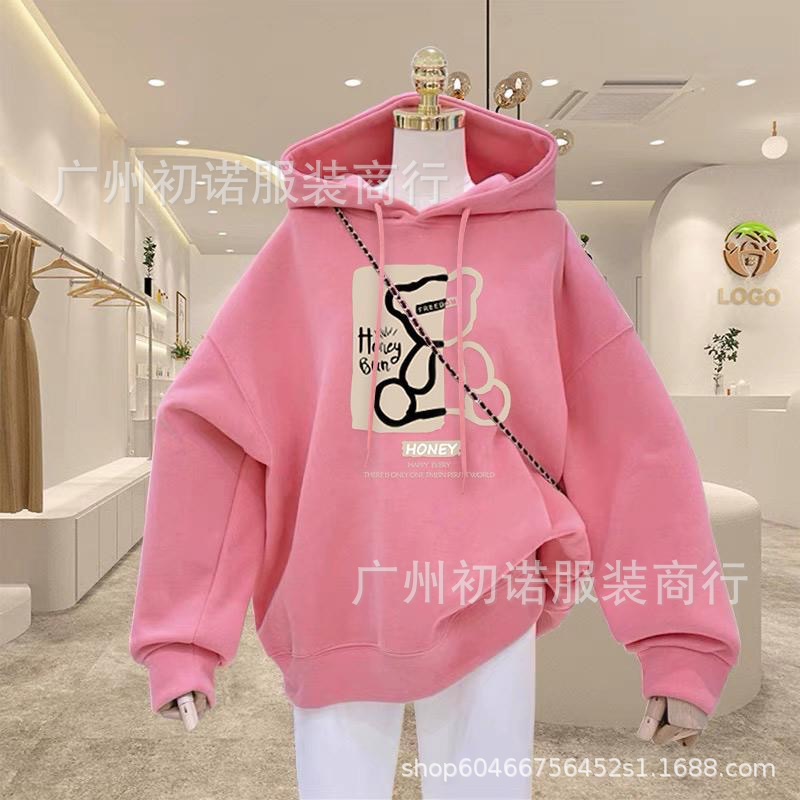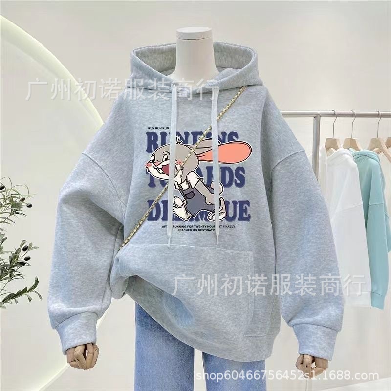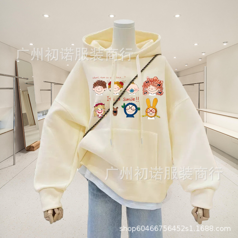 加绒秋冬新款连帽卫衣女装潮牌韩版慵懒风外套宽松卡通上衣学生装