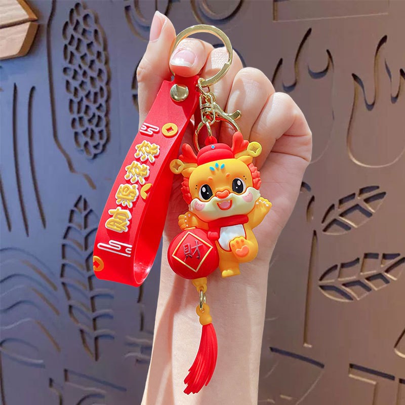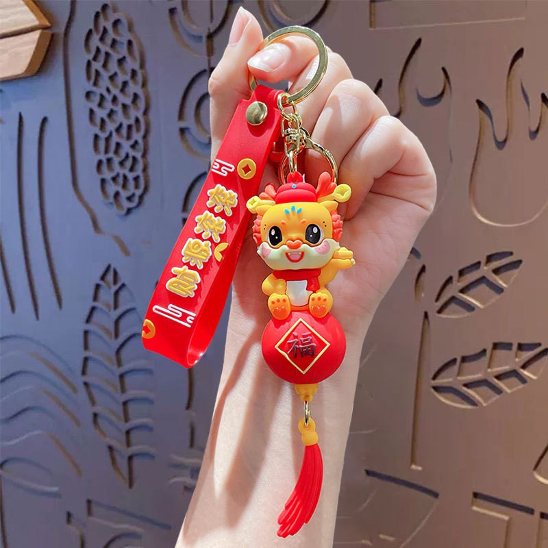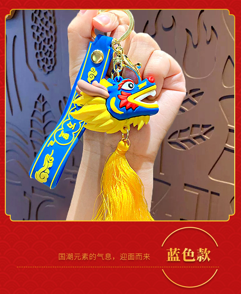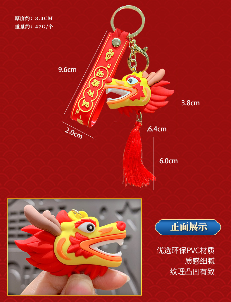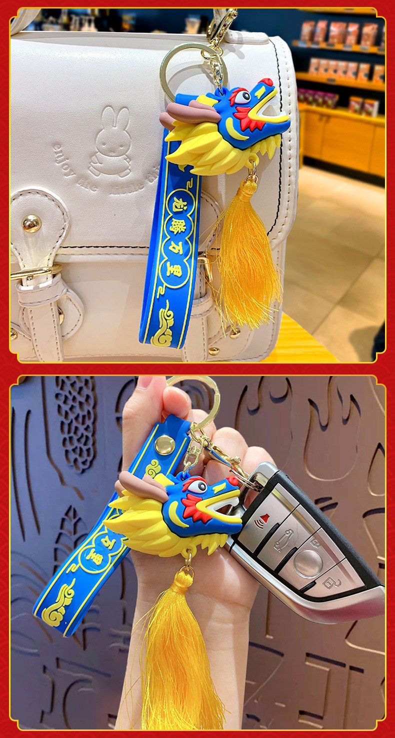 创意国潮鸿运龙头新年钥匙扣女卡通汽车包包钥匙链挂件龙年小礼品