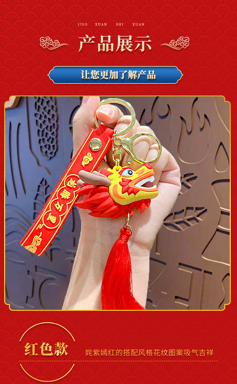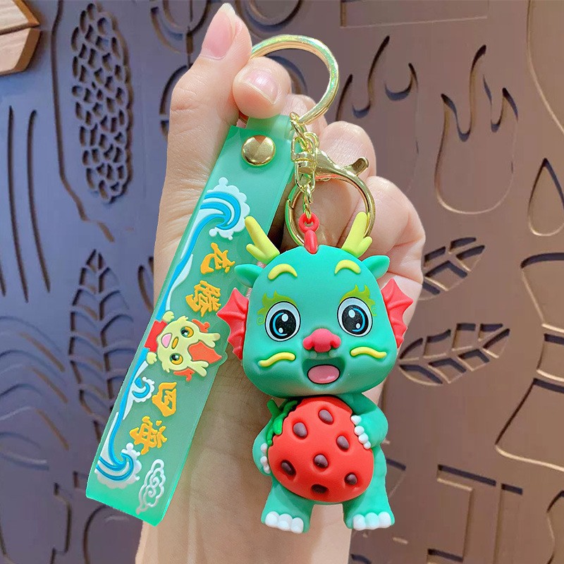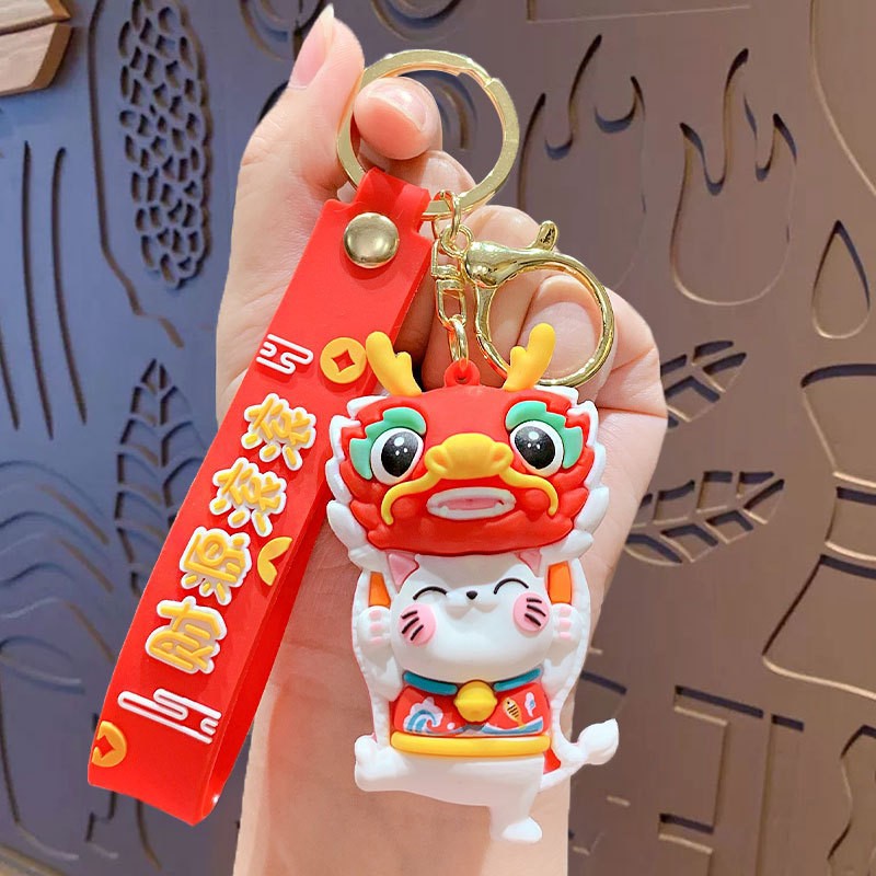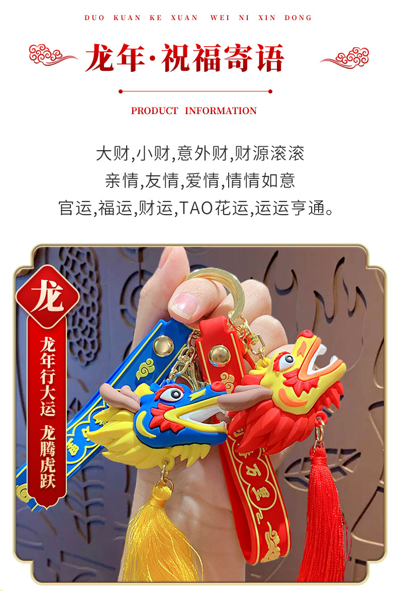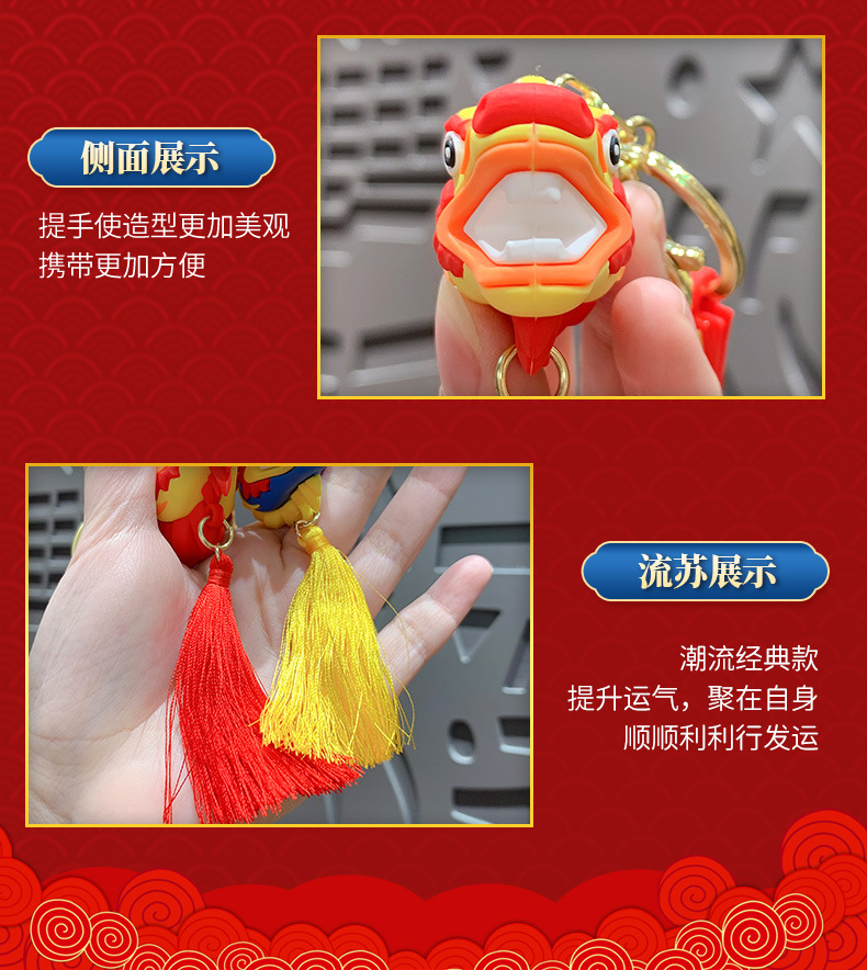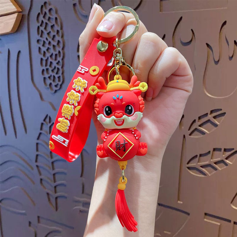 创意国潮鸿运龙头新年钥匙扣女卡通汽车包包钥匙链挂件龙年小礼品