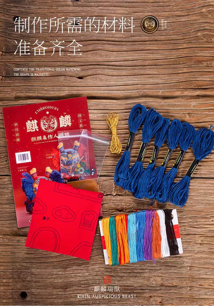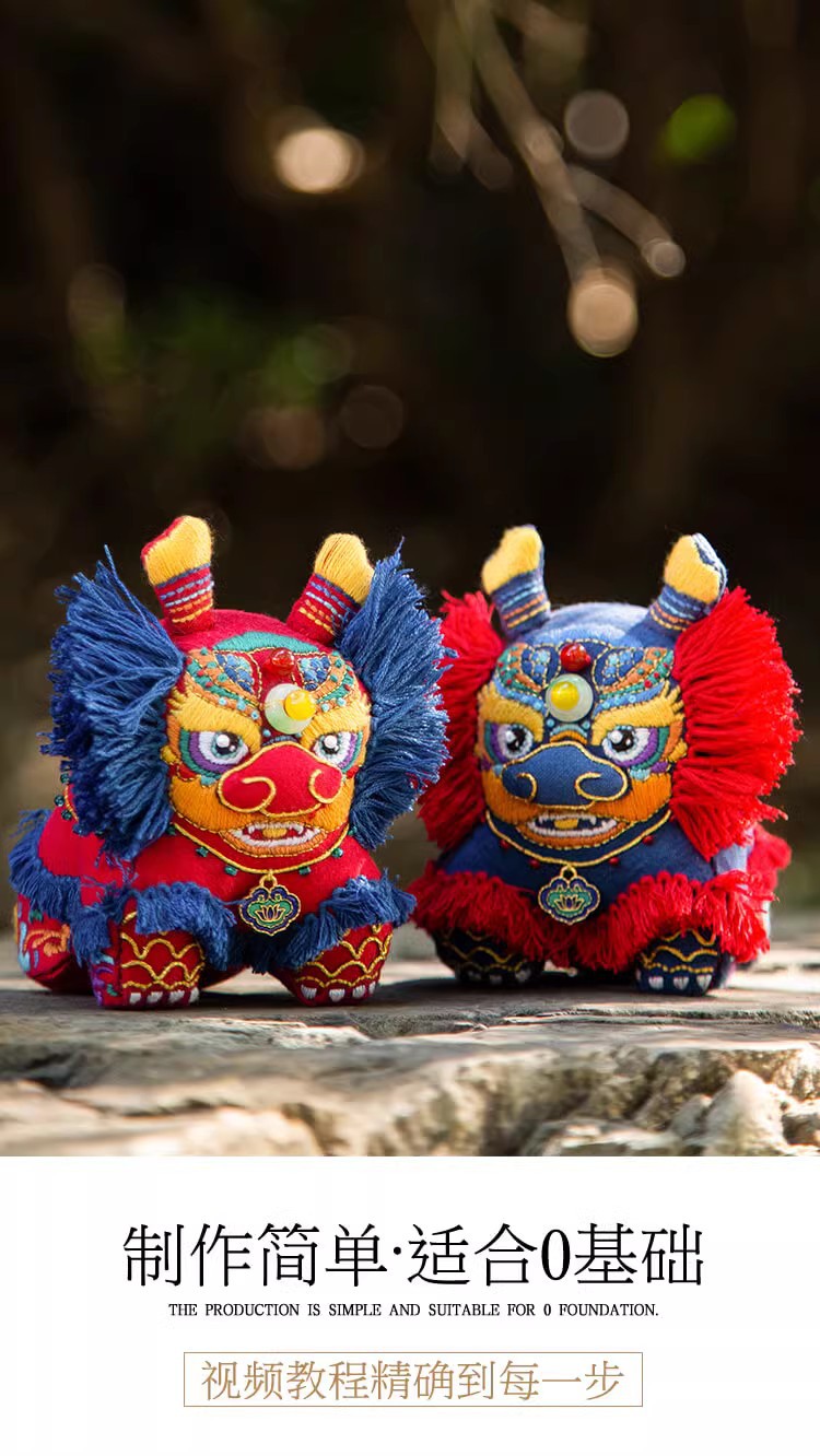 手工布老虎刺绣diy材料包醒狮平安符布艺玩偶摆件吉祥物节日礼物