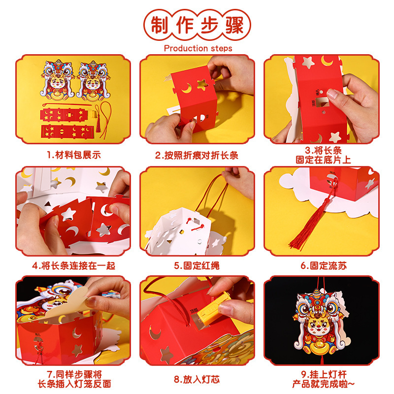 2024新款龙年元旦灯笼手工diy制作材料包新年春节儿童手提花灯笼