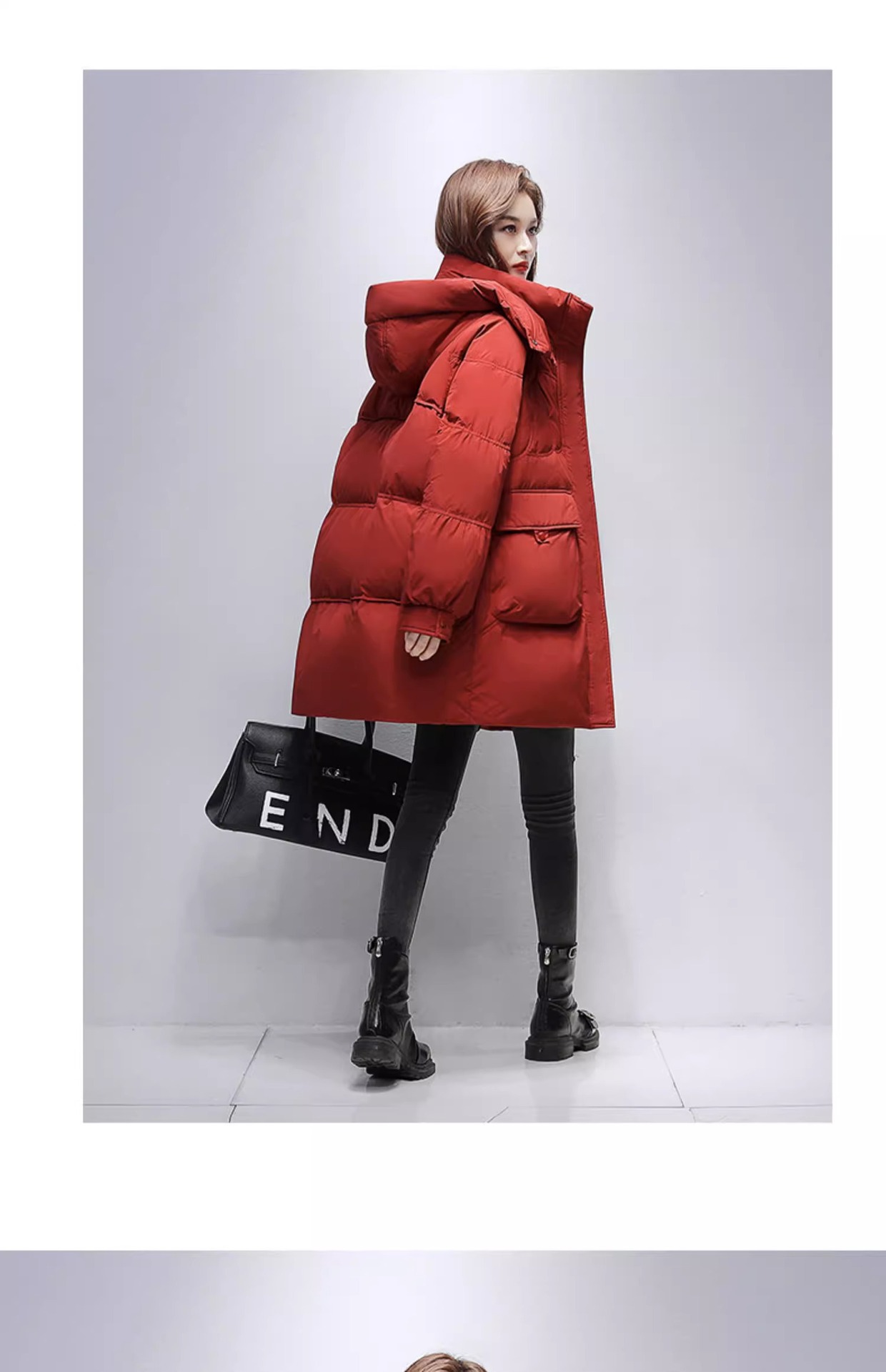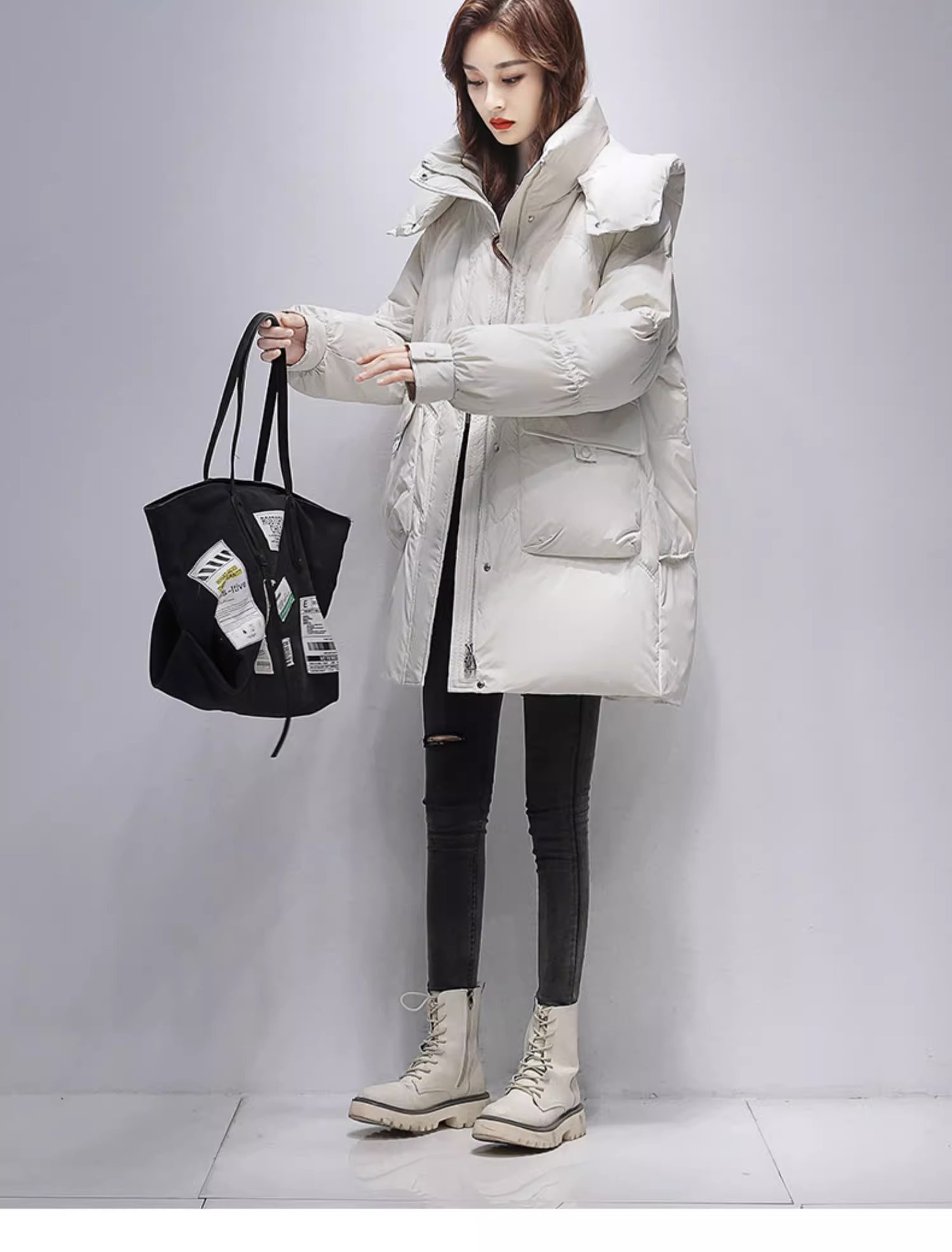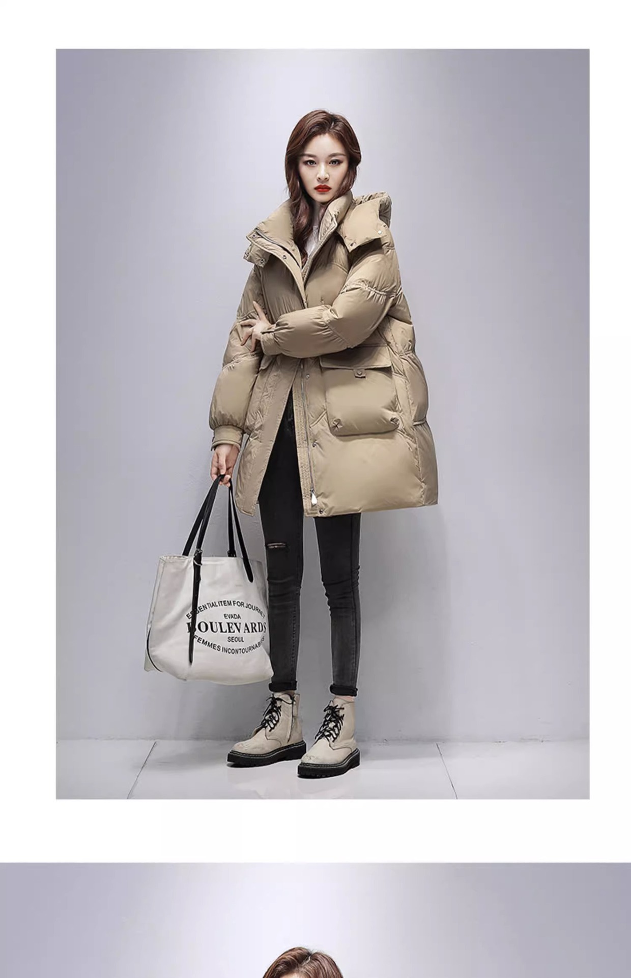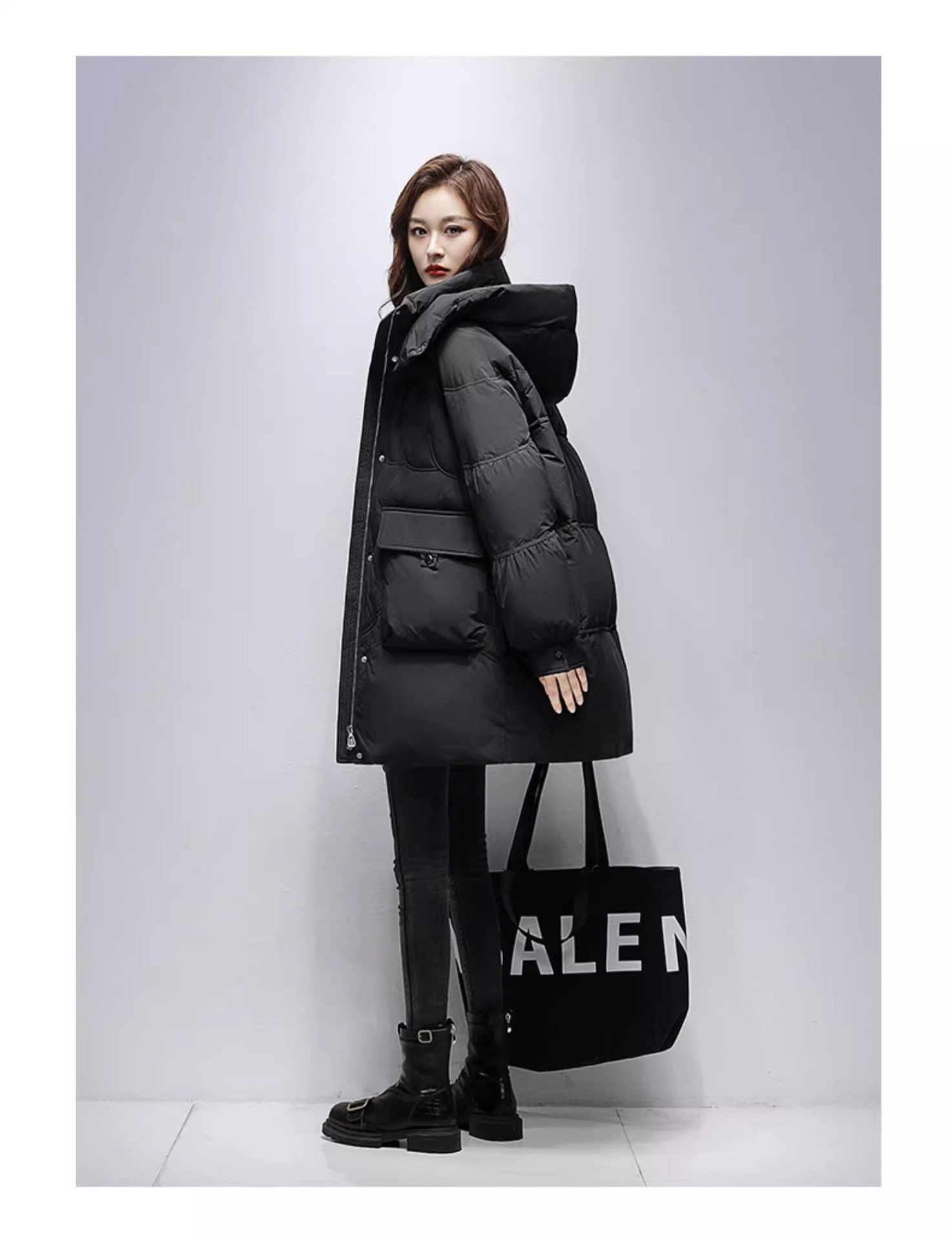 2023新款中长款羽绒服女款冬季白鸭绒高端保暖连帽外套嘉兴平湖
