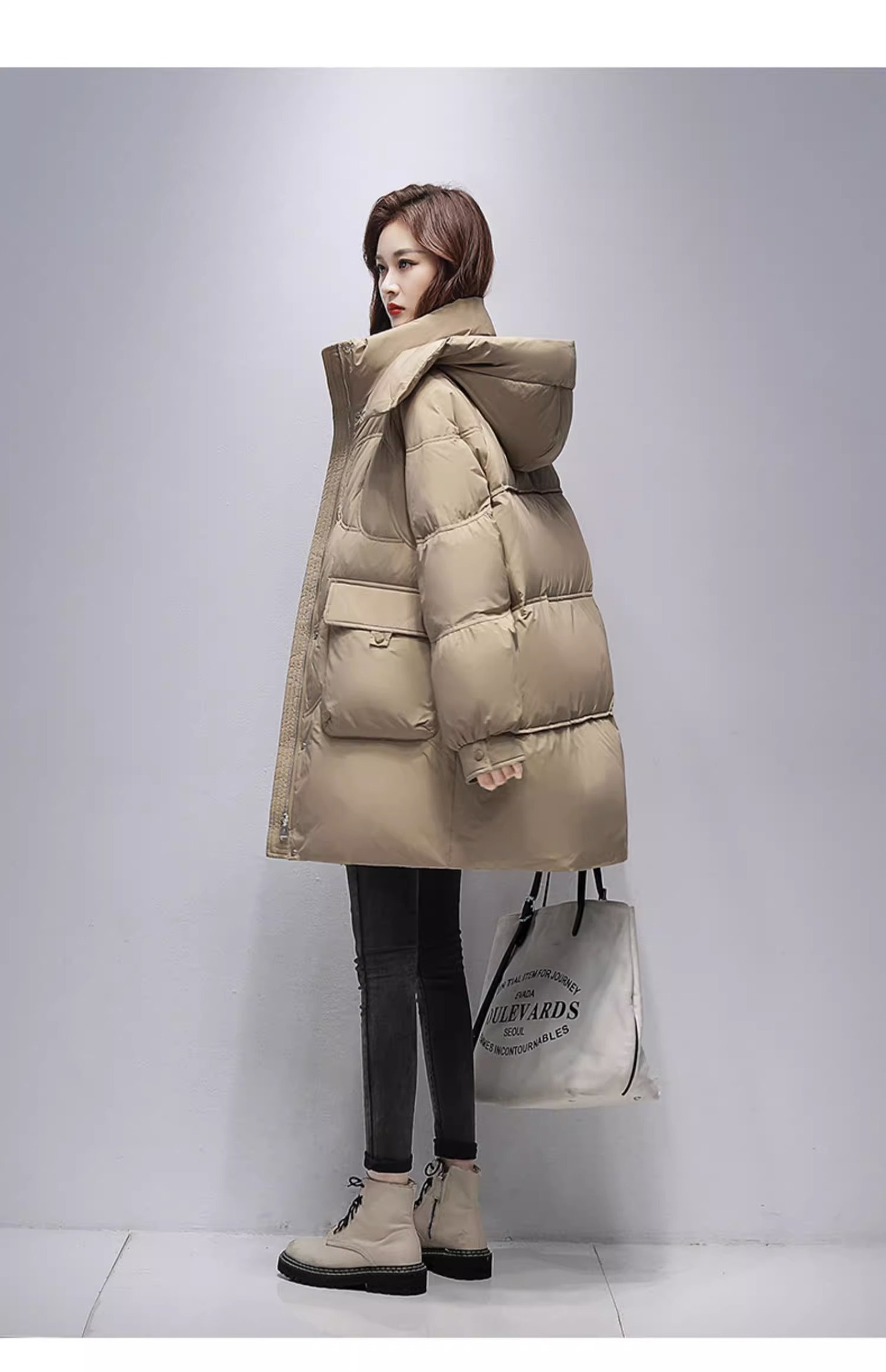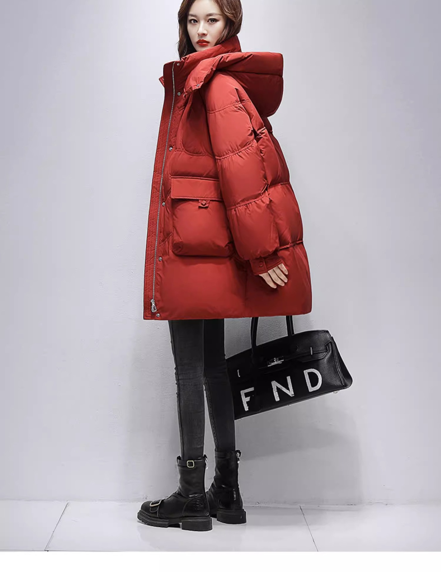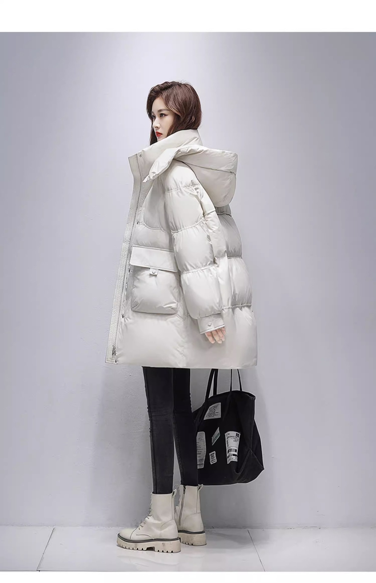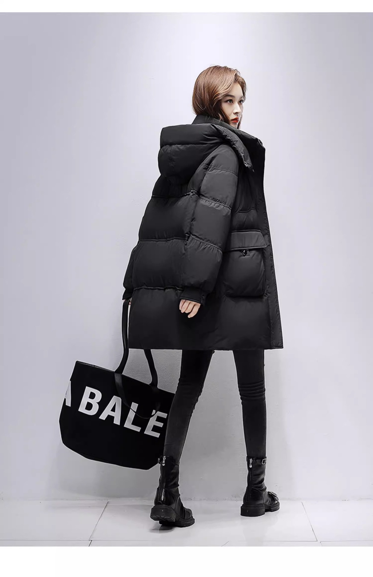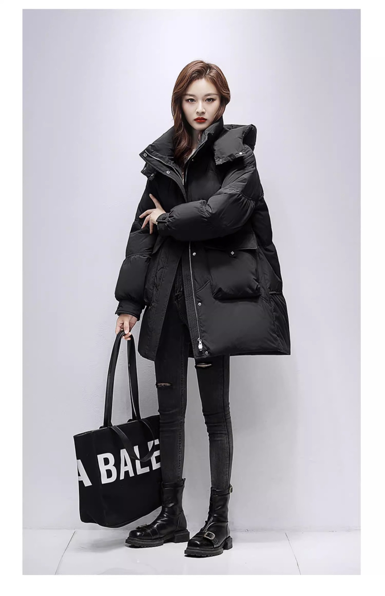 2023新款中长款羽绒服女款冬季白鸭绒高端保暖连帽外套嘉兴平湖