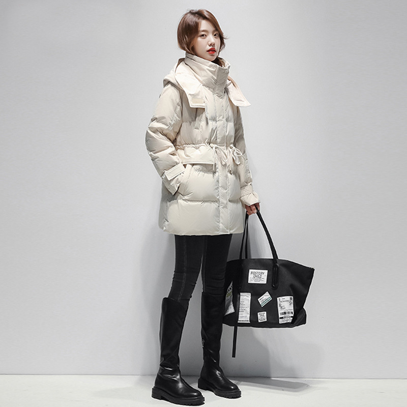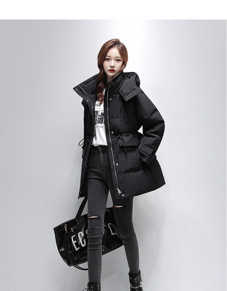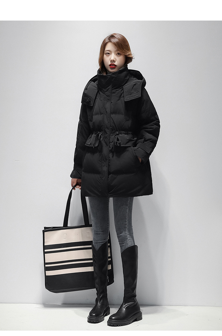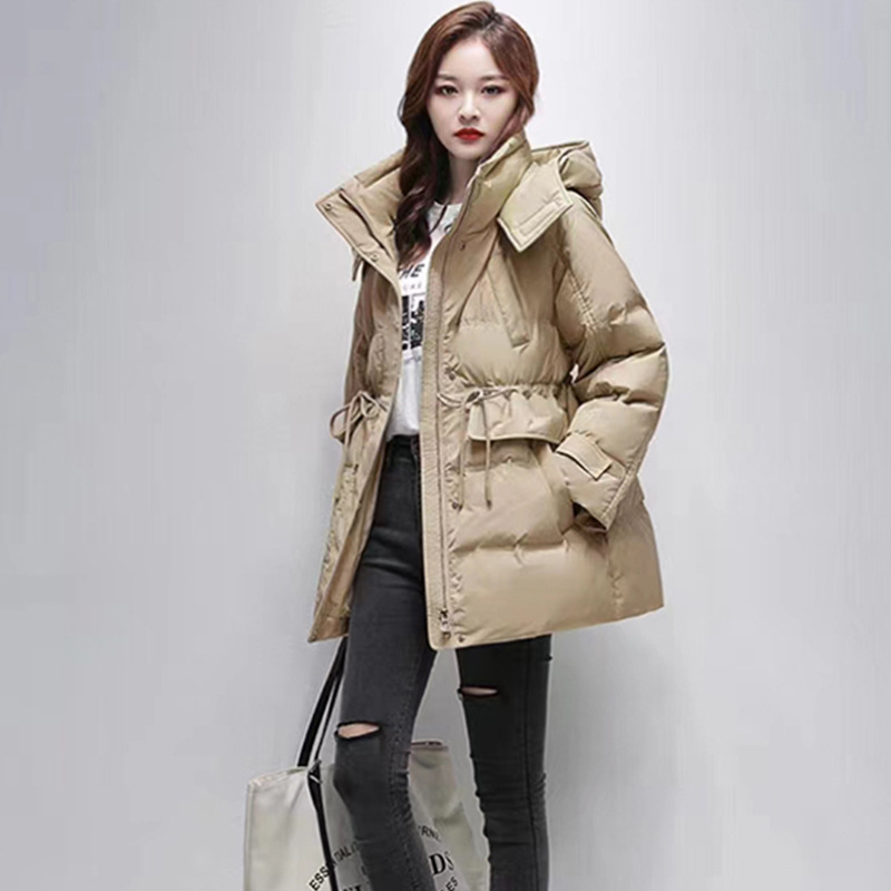 2023嘉兴平湖羽绒服女中长款抽绳收腰显瘦外套现货
