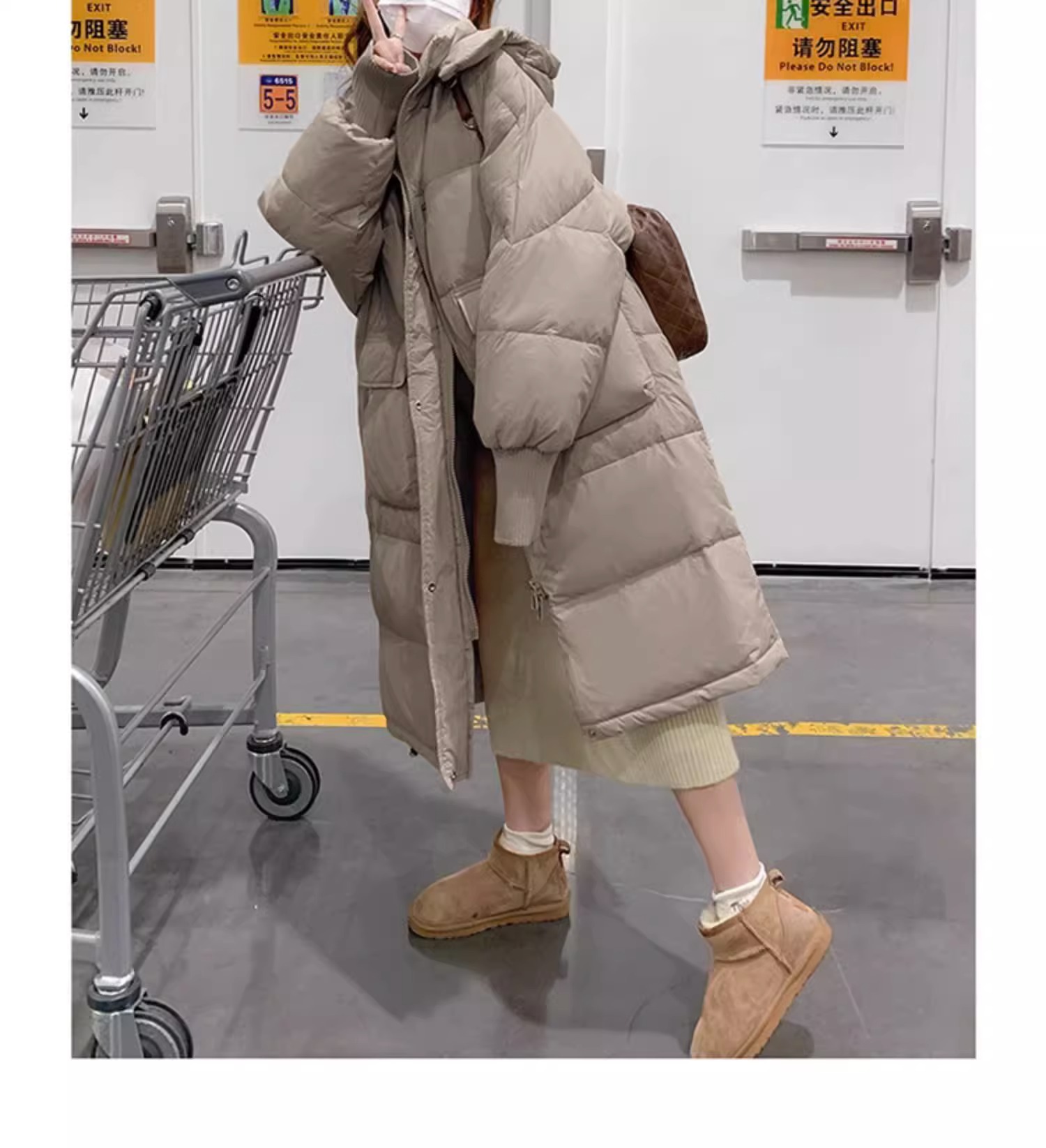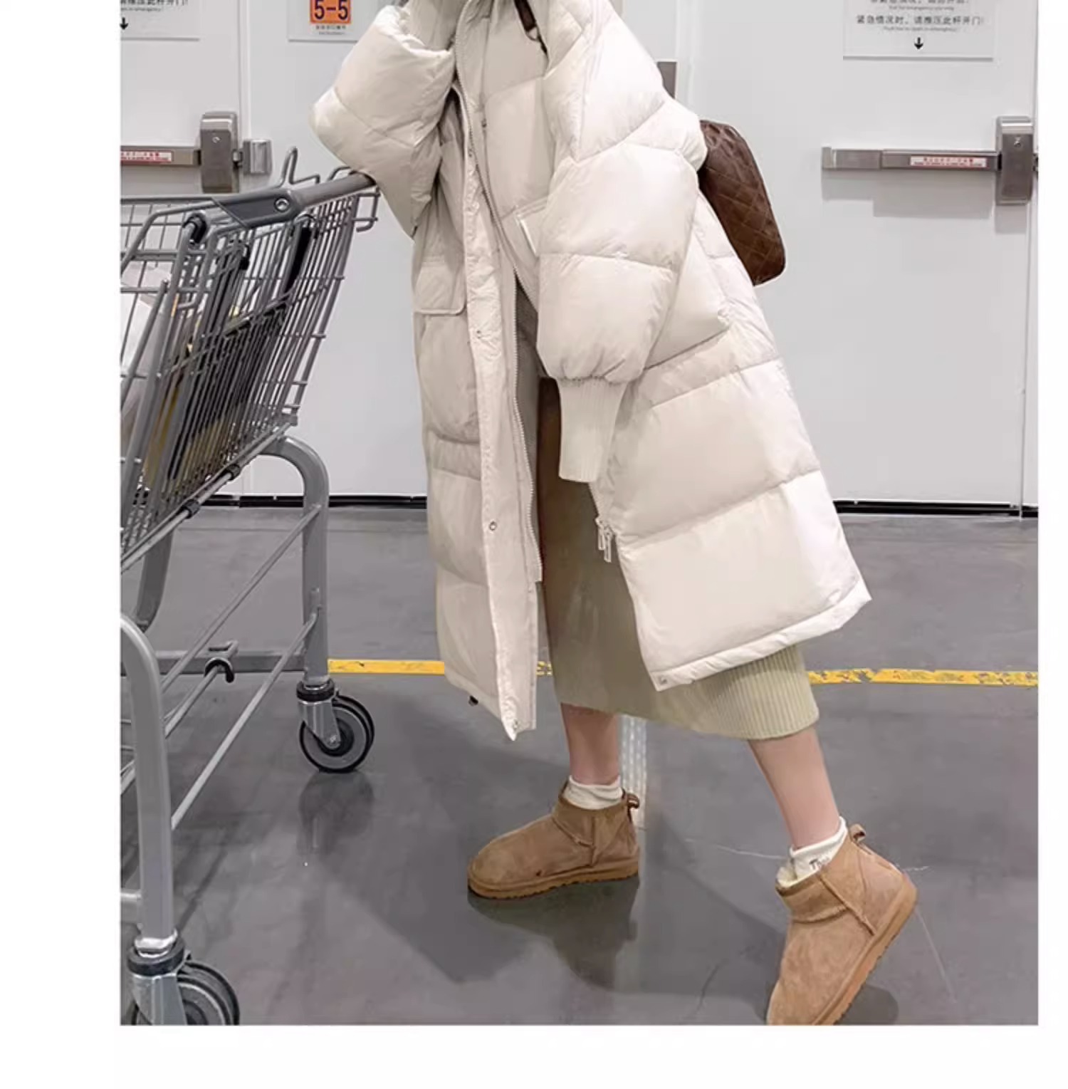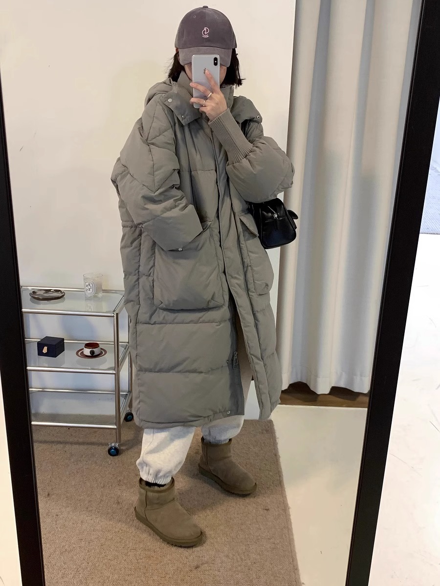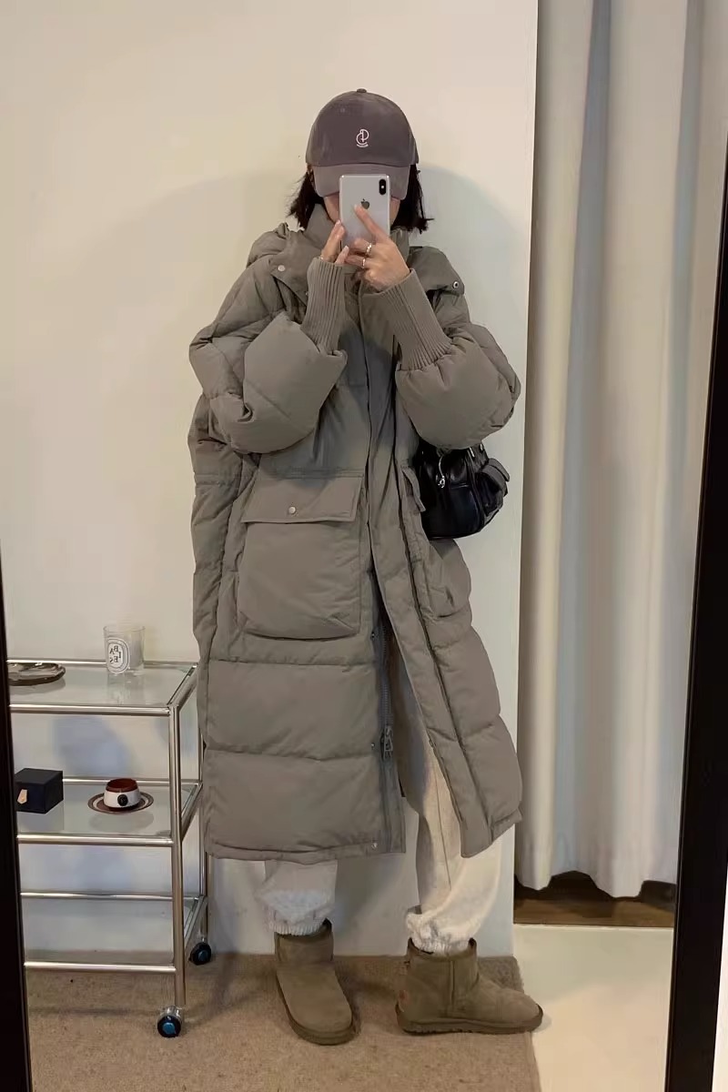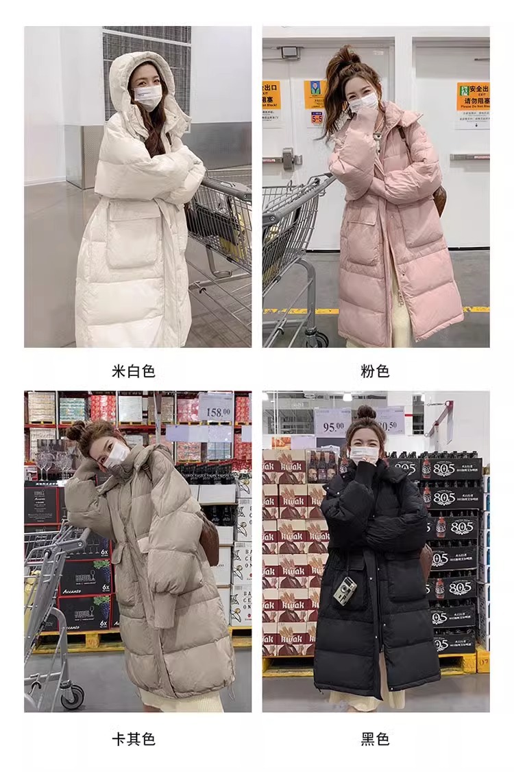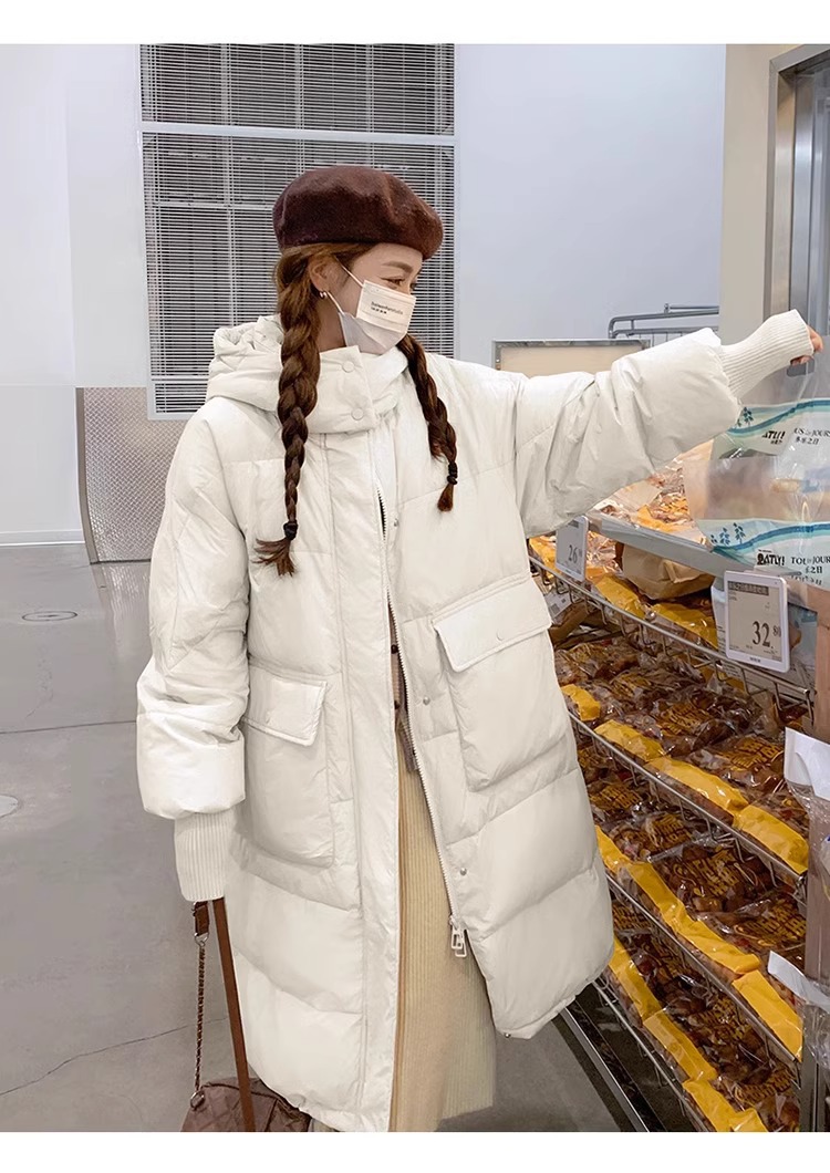 2023新款中长款羽绒服女过膝保暖休闲百搭简约白鸭绒外套