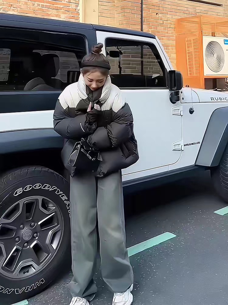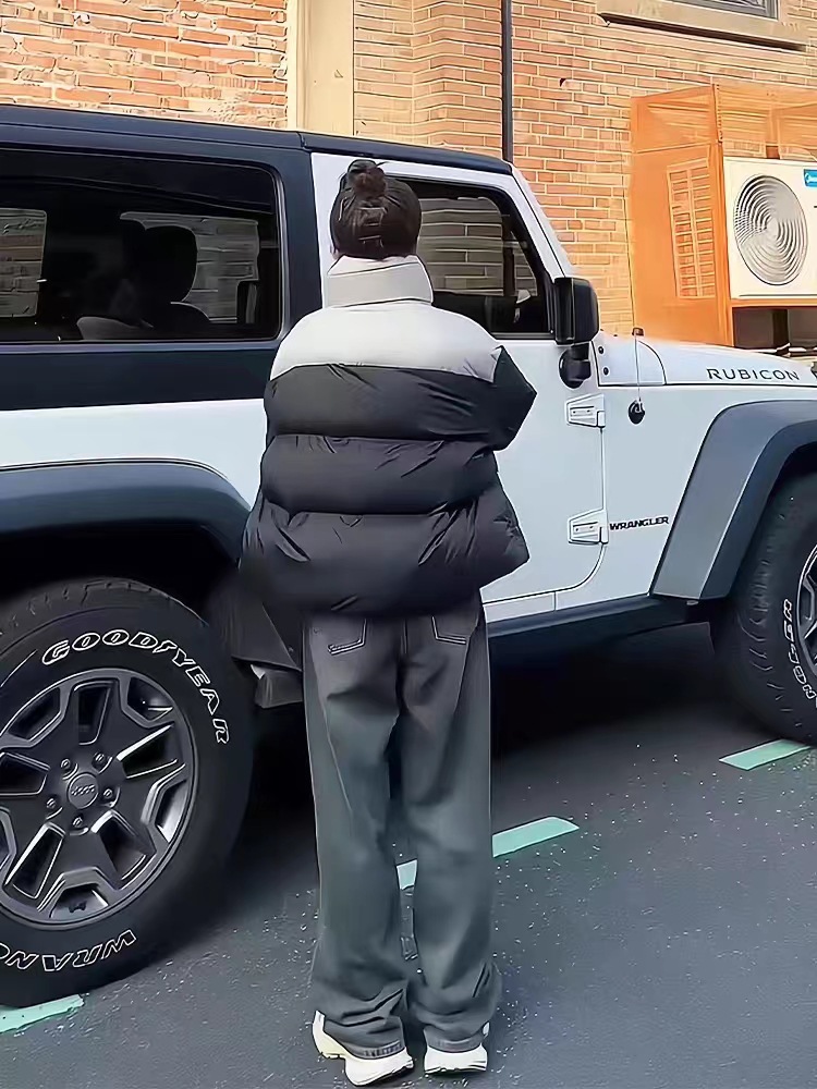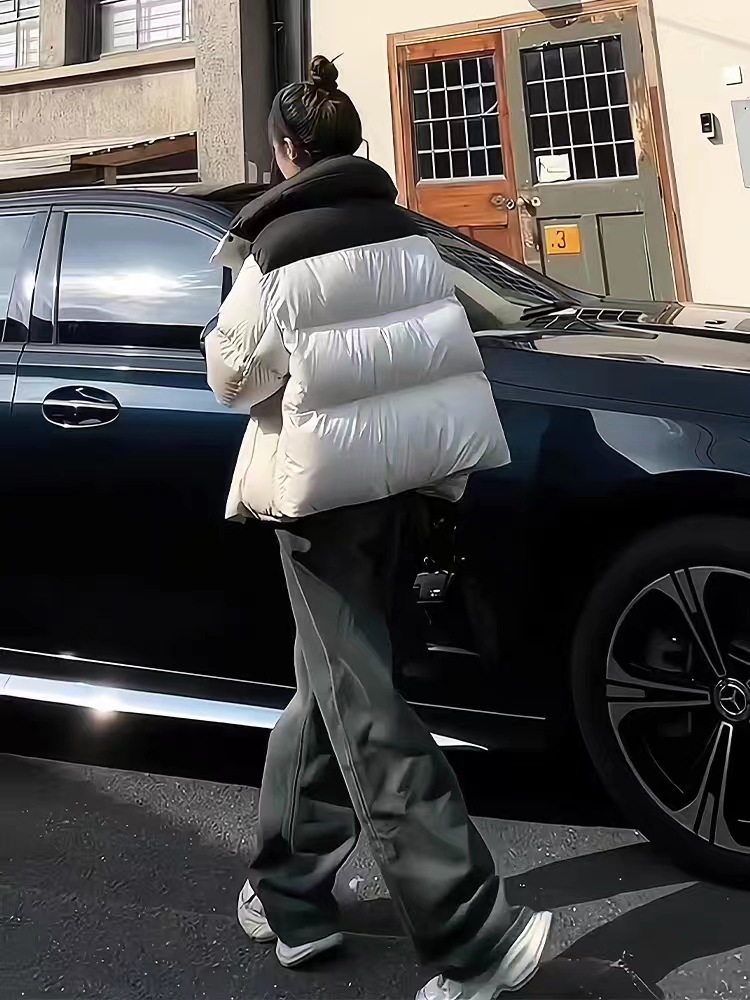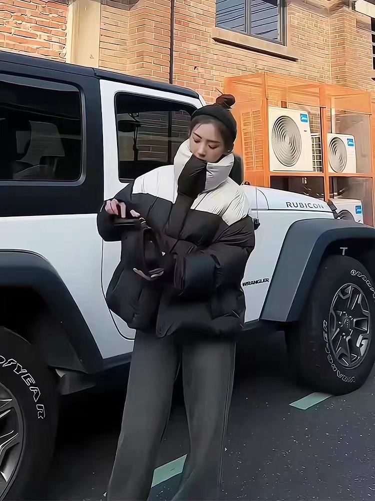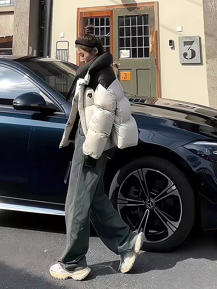 2023冬季新款羽绒服女撞色白鸭绒时尚爱心韩版宽松立领保暖外套