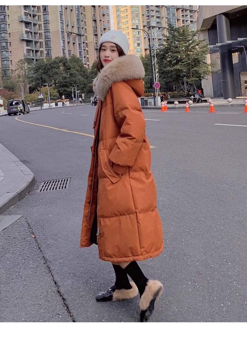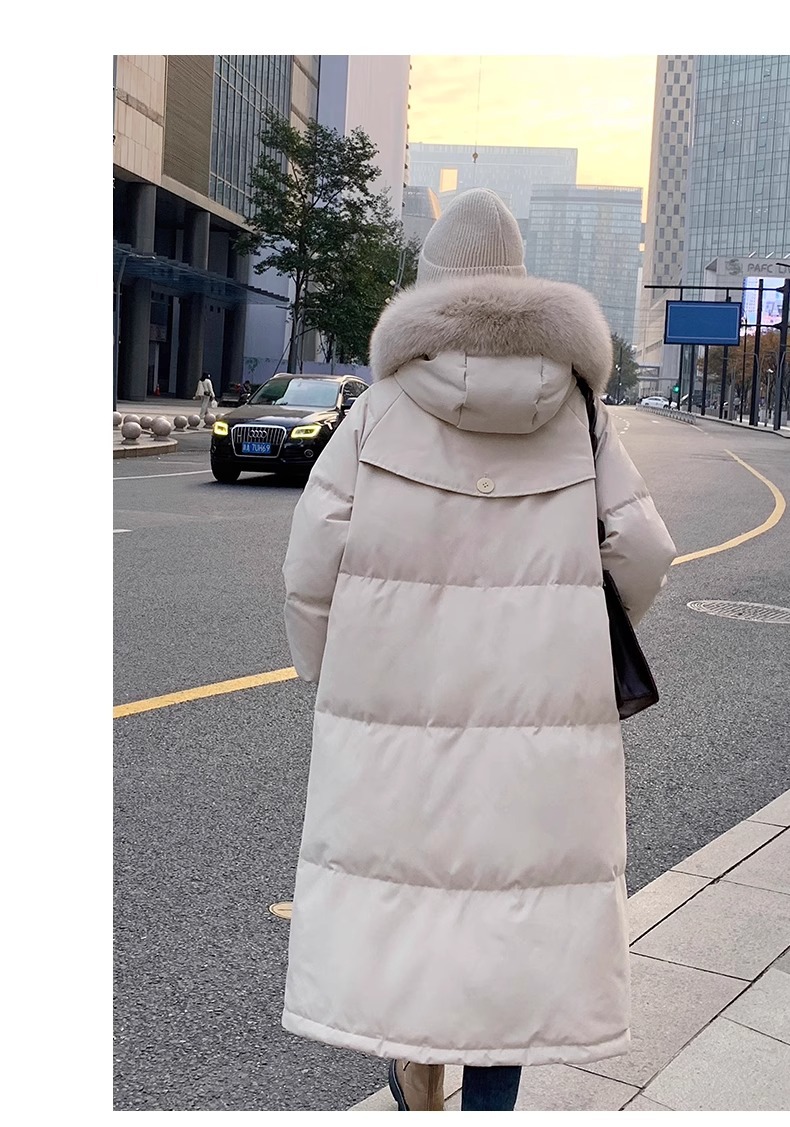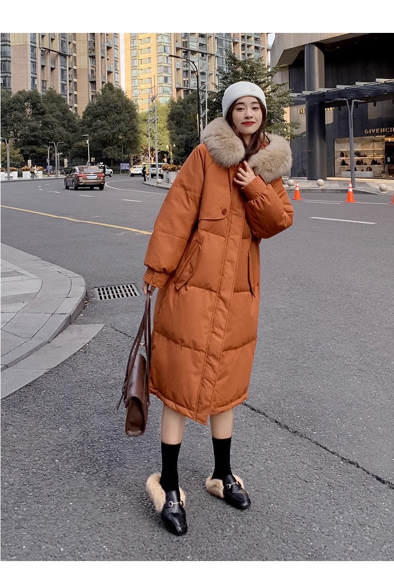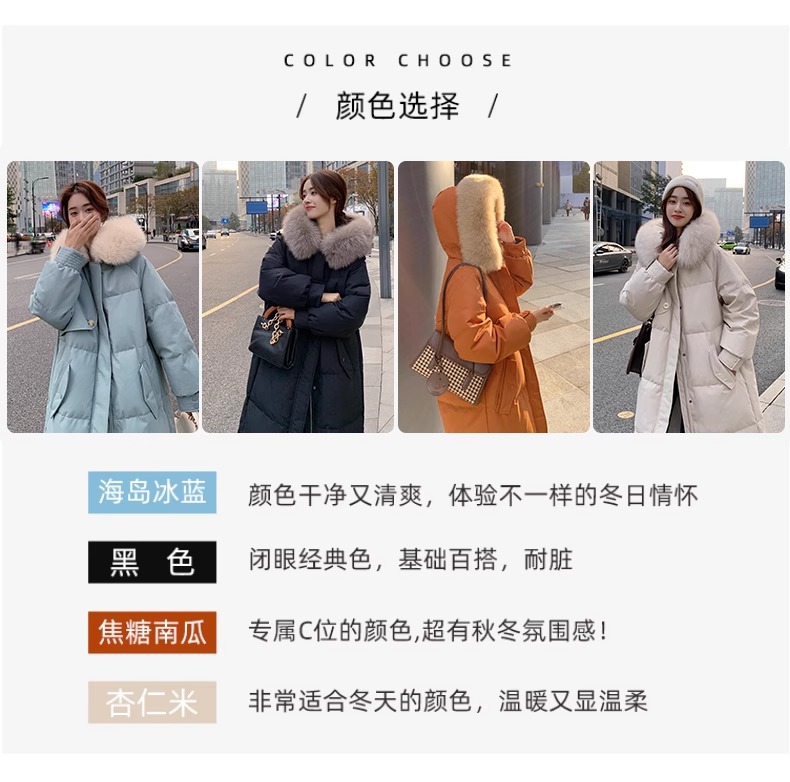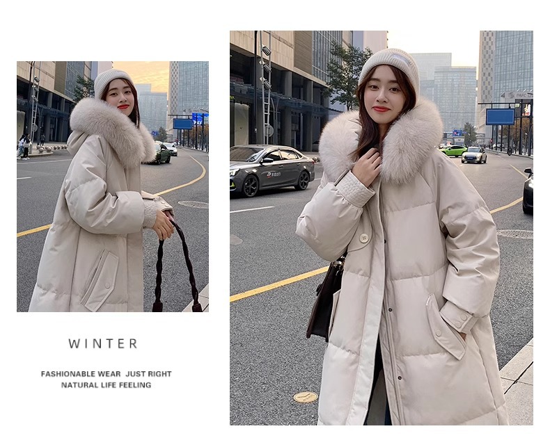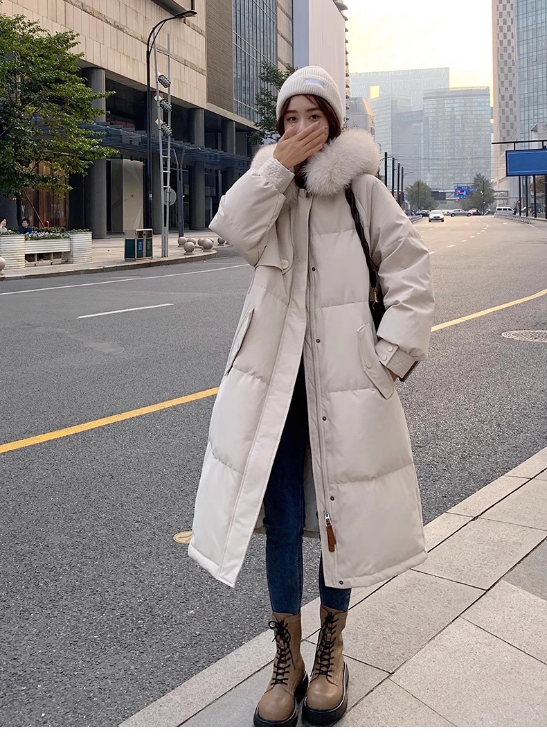 2023羽绒服女中长款加厚外套韩版时尚宽松连帽白鸭绒外套