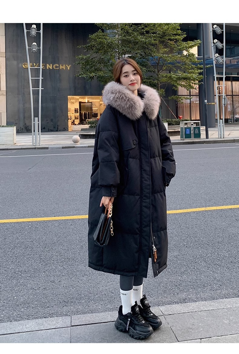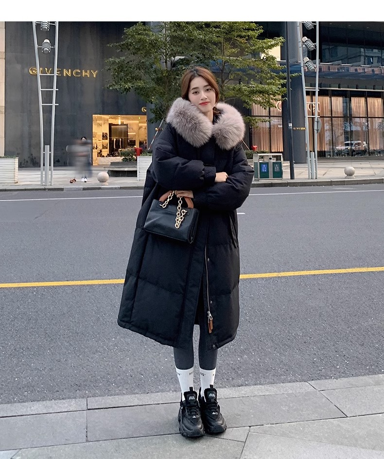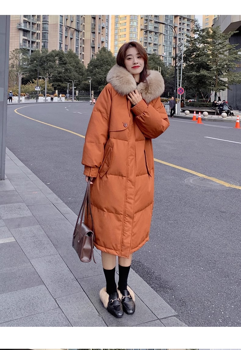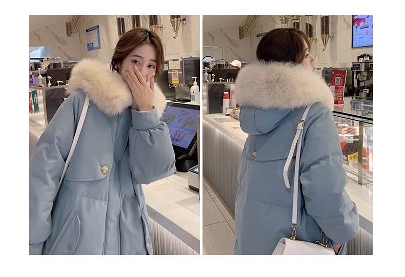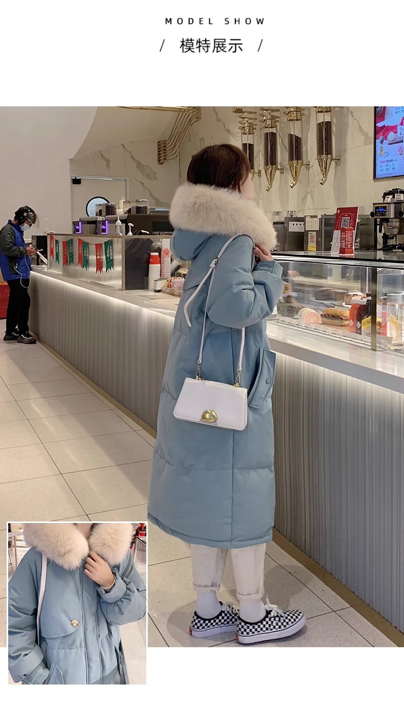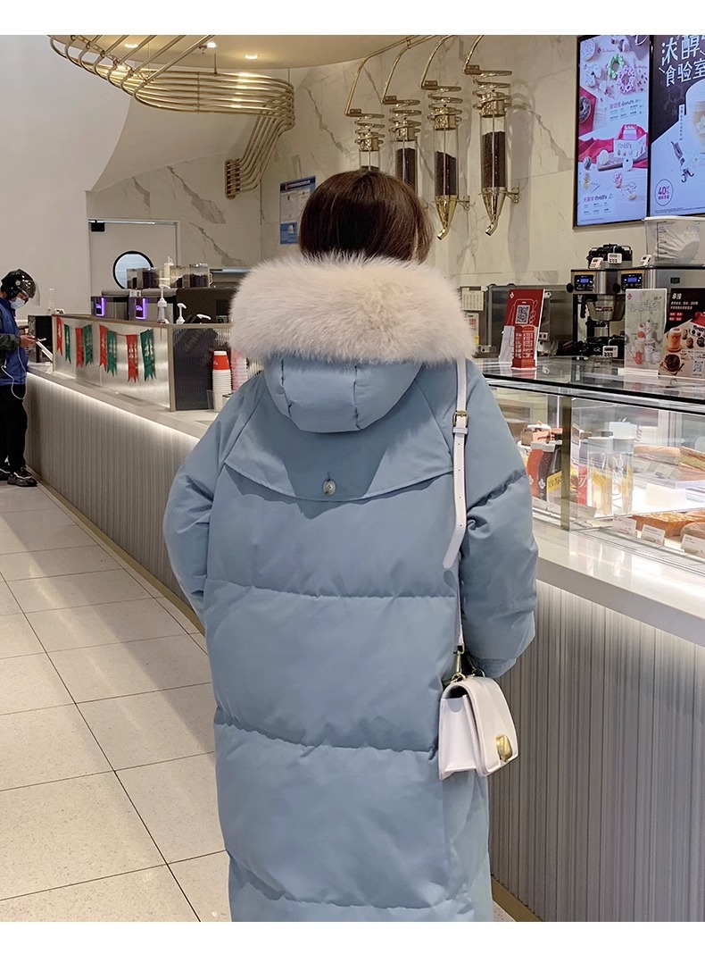 2023羽绒服女中长款加厚外套韩版时尚宽松连帽白鸭绒外套
