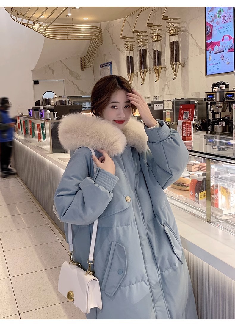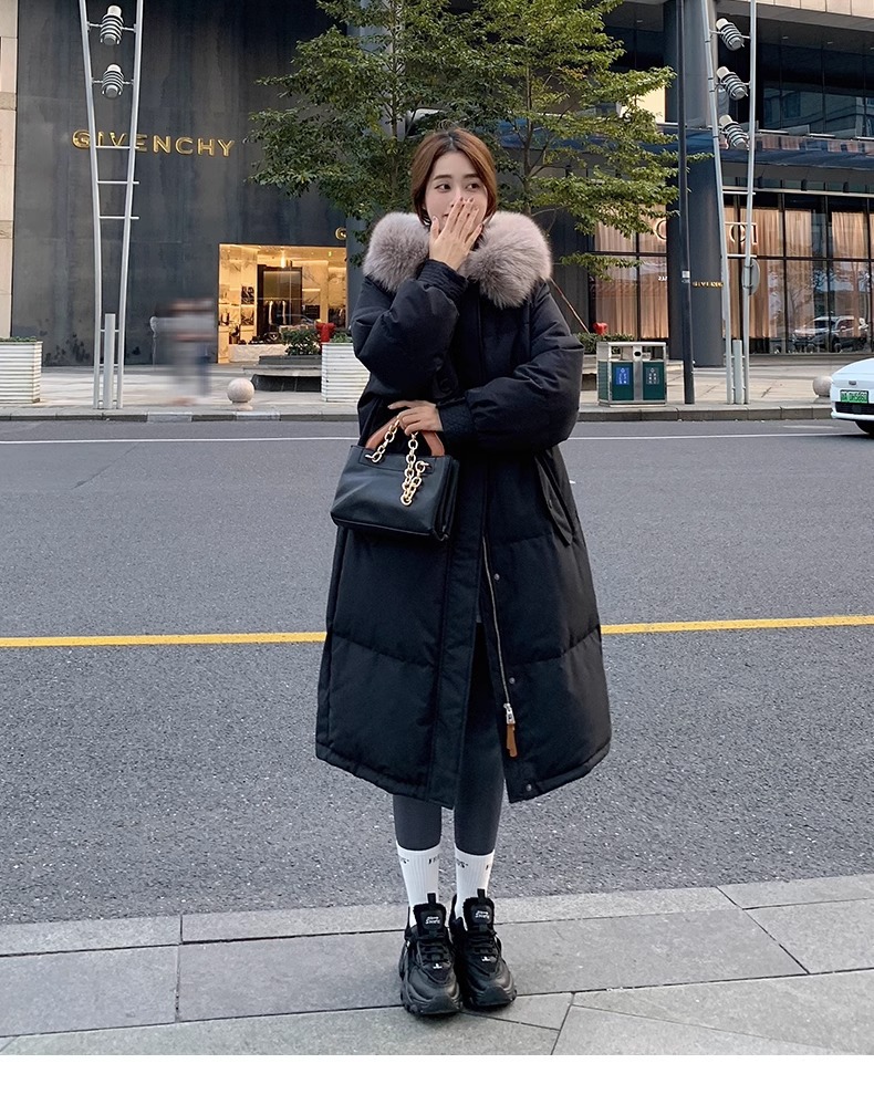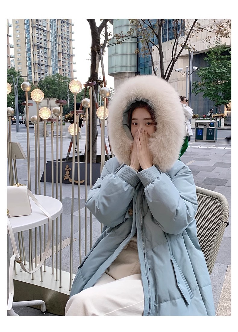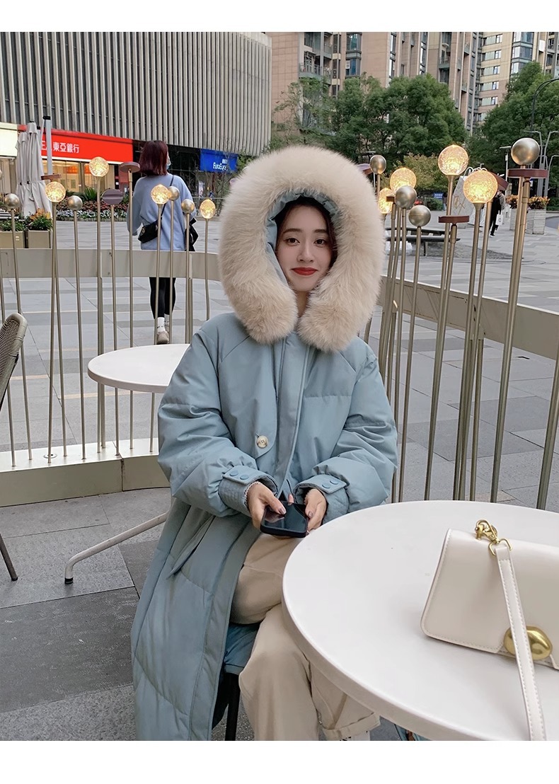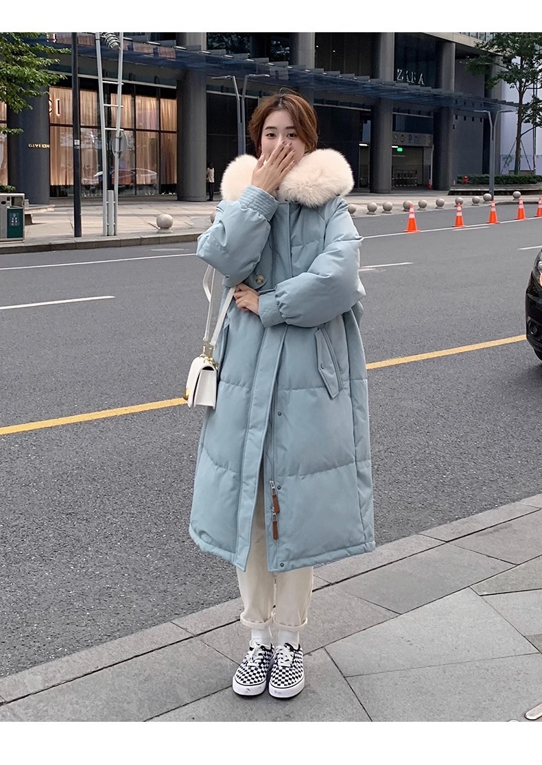 2023羽绒服女中长款加厚外套韩版时尚宽松连帽白鸭绒外套