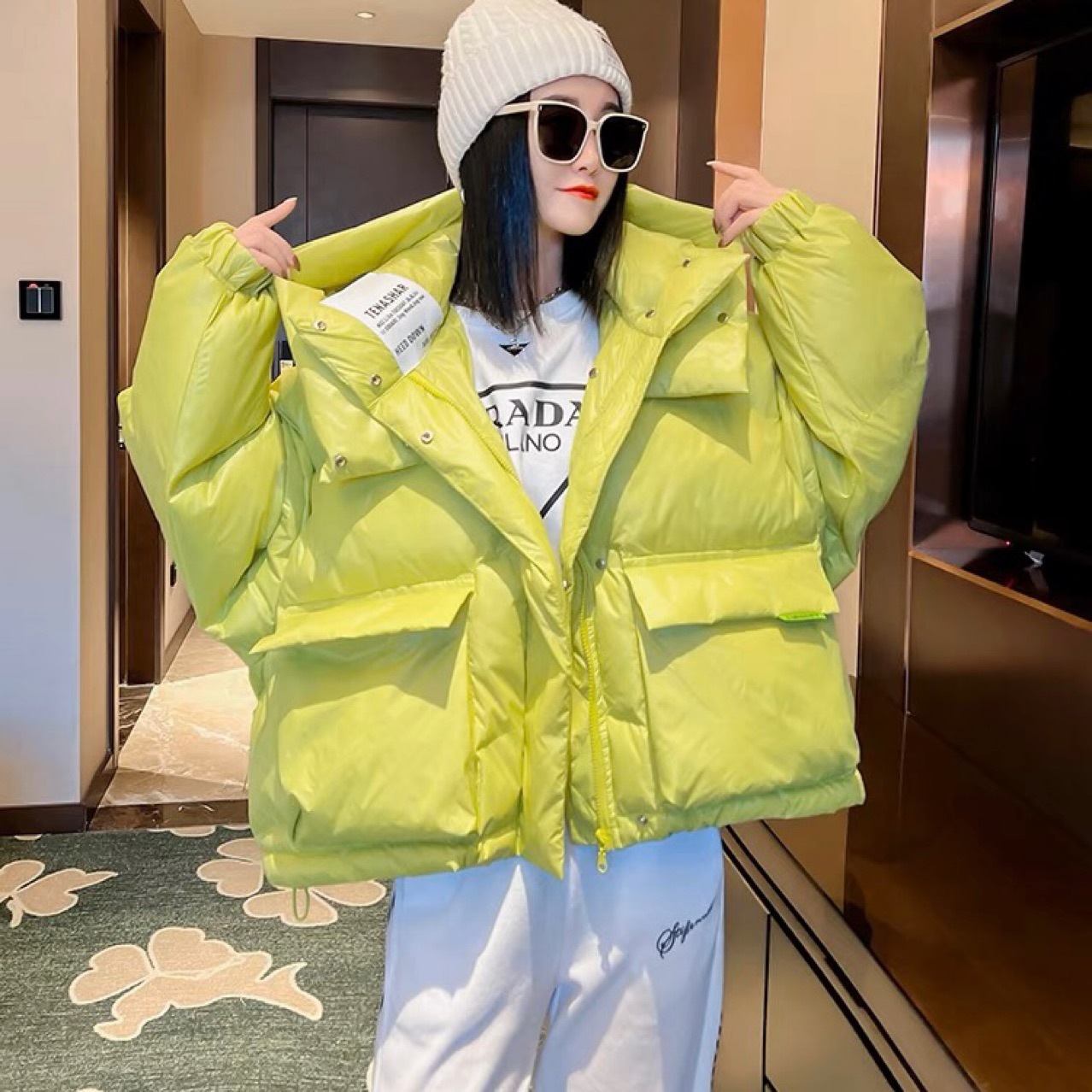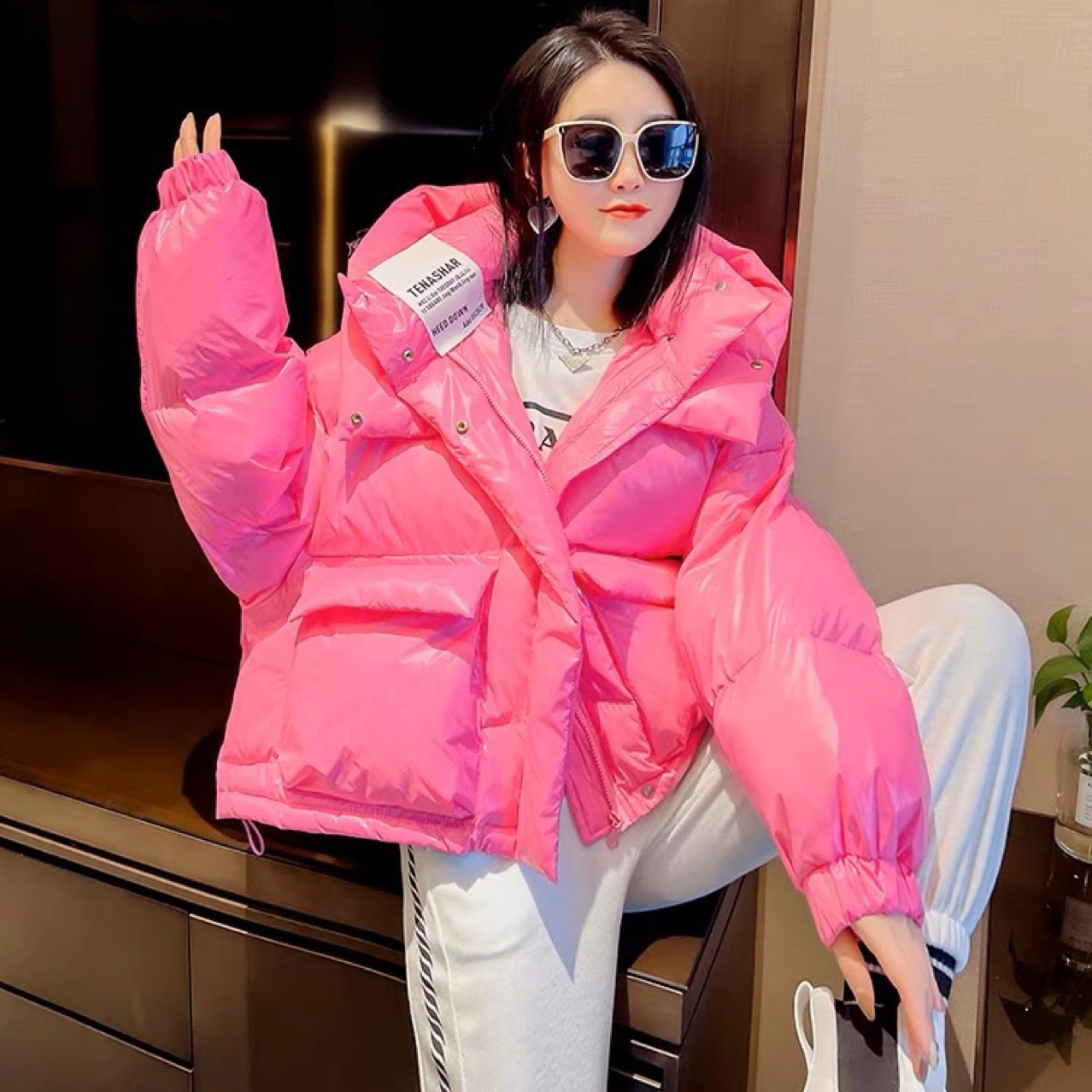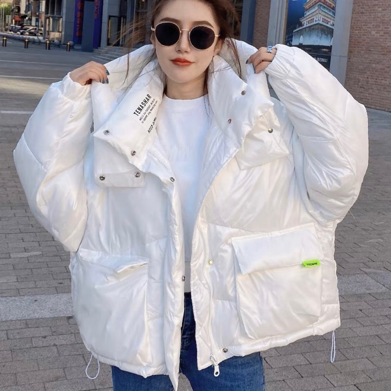 2023新款羽绒服女短款连帽纯色面包服加厚小个子洋气冬外套