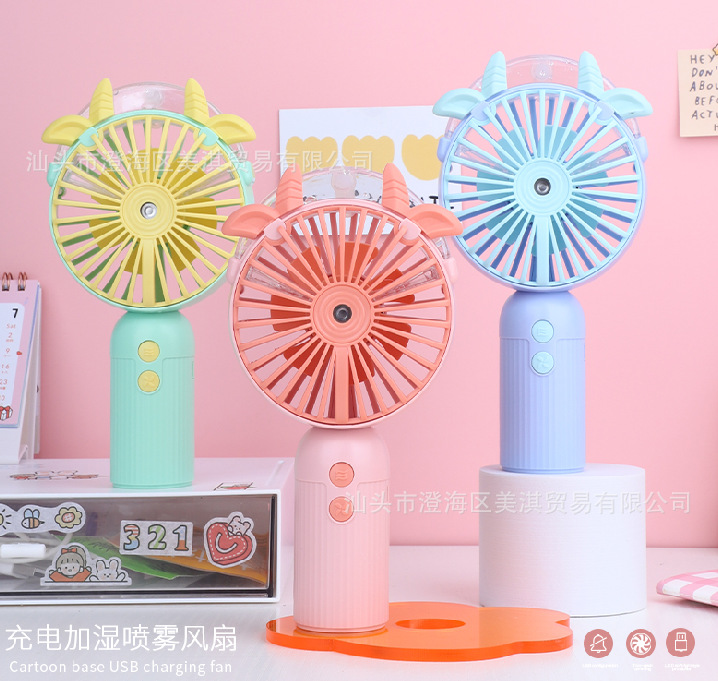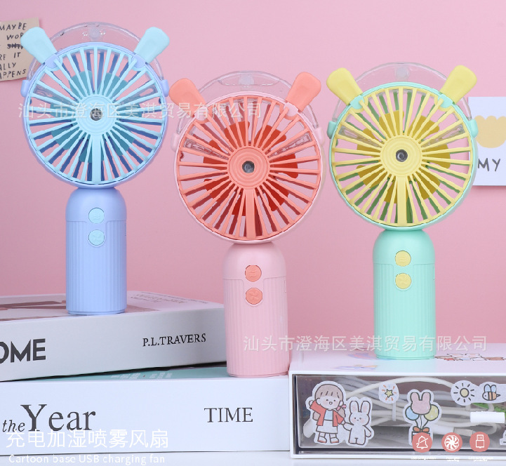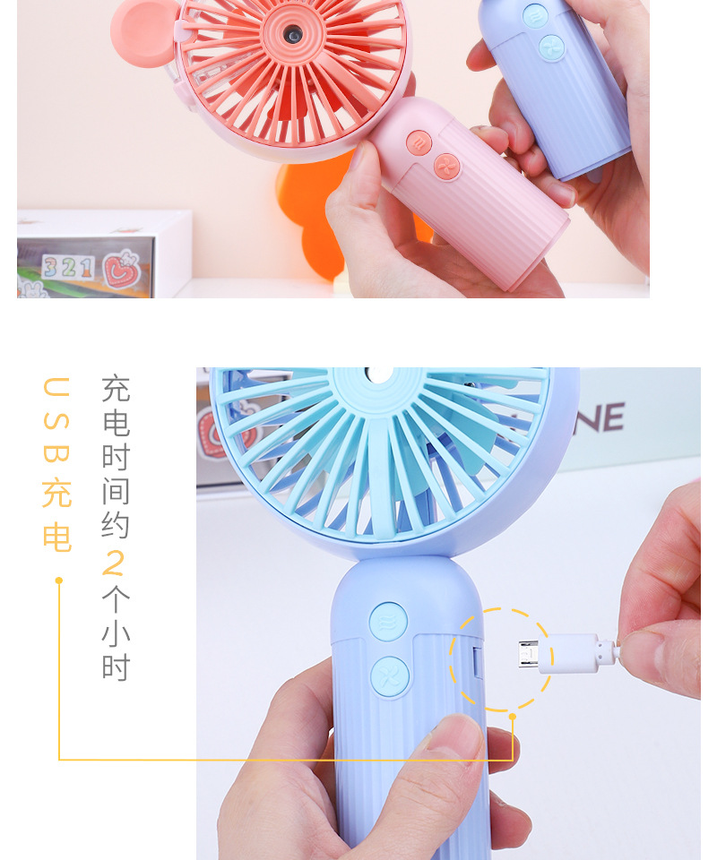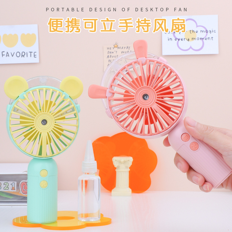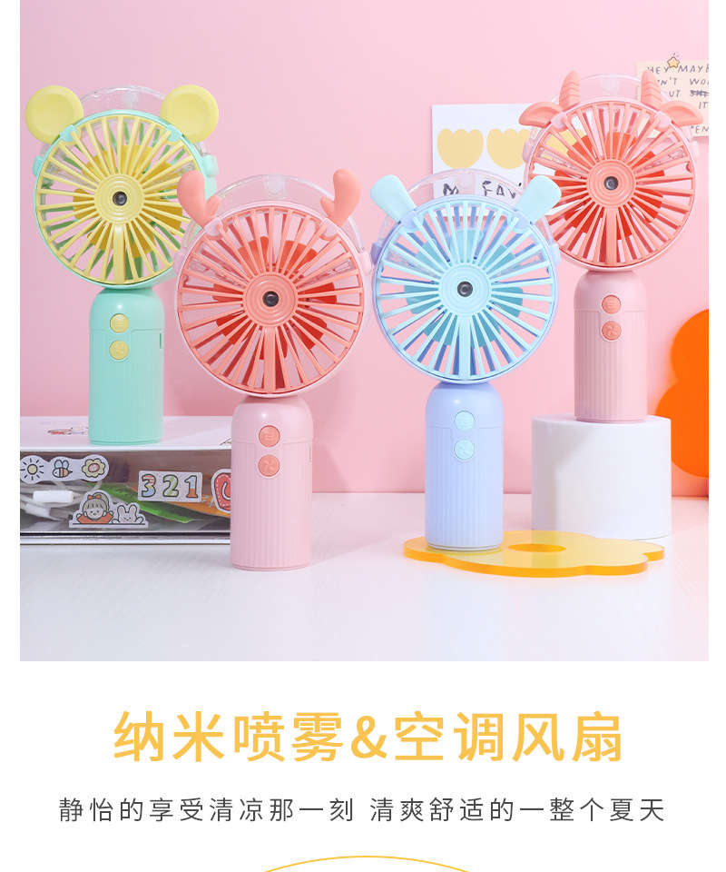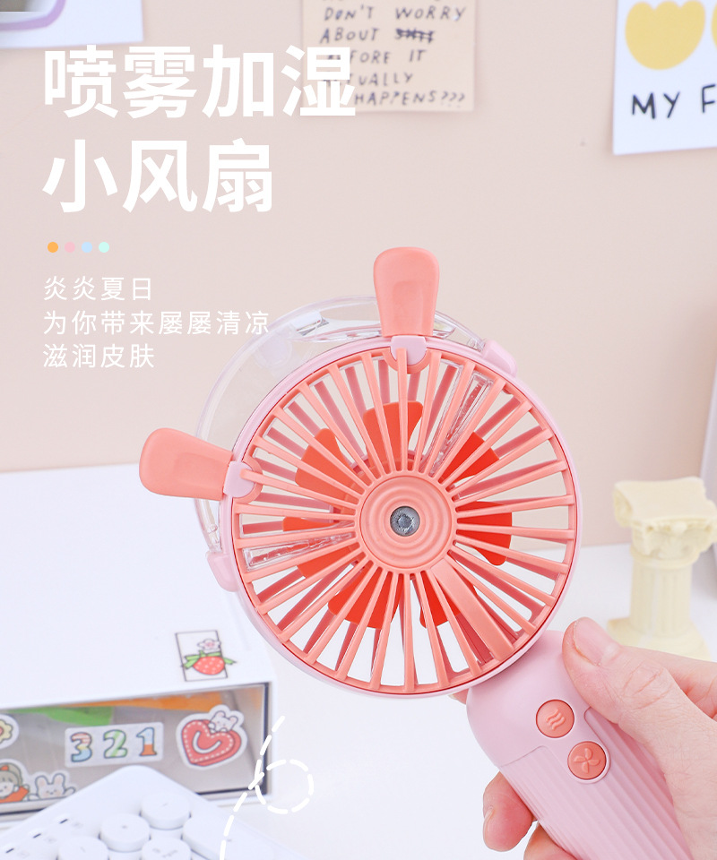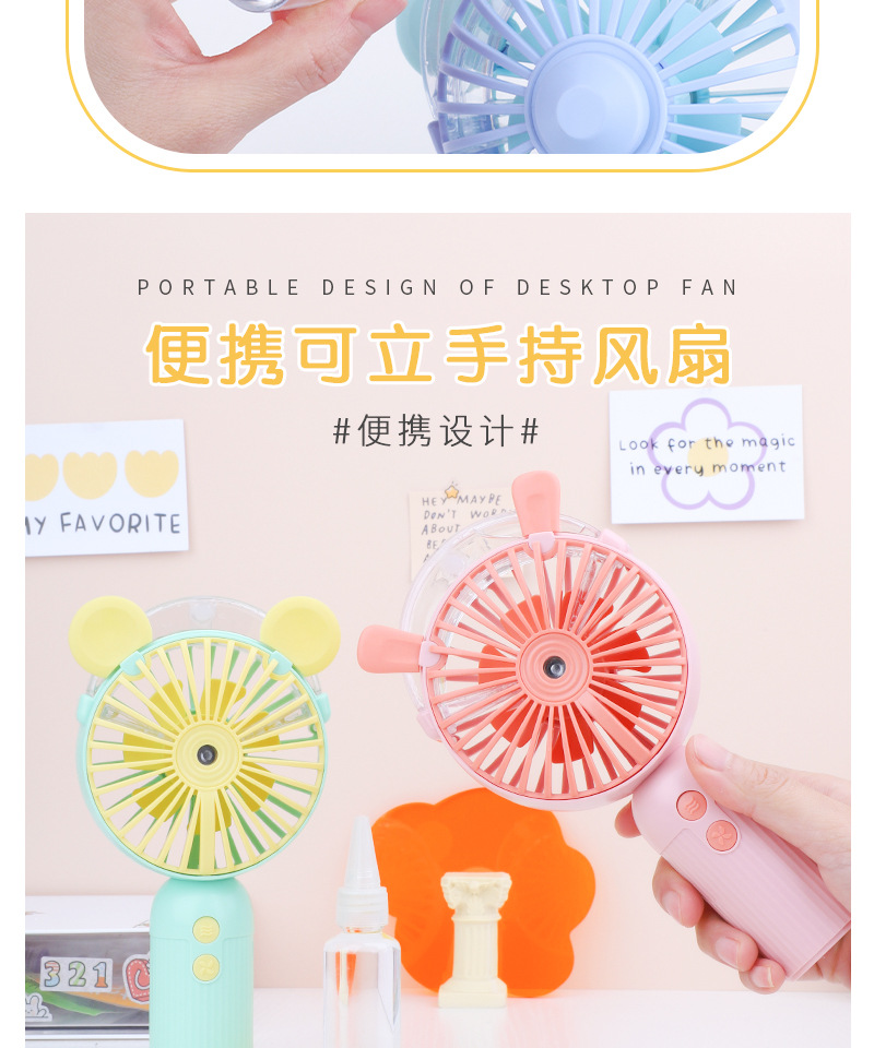 卡通呆萌可爱调档喷雾风扇静音台式小风扇女携带露营野餐用批发