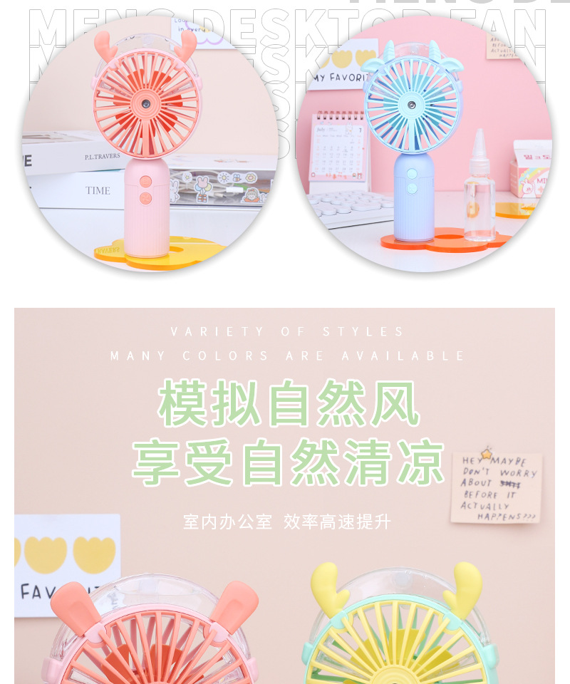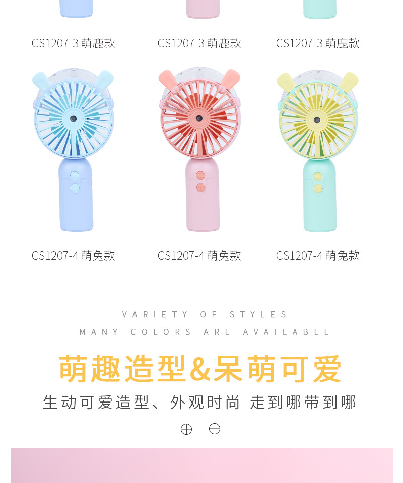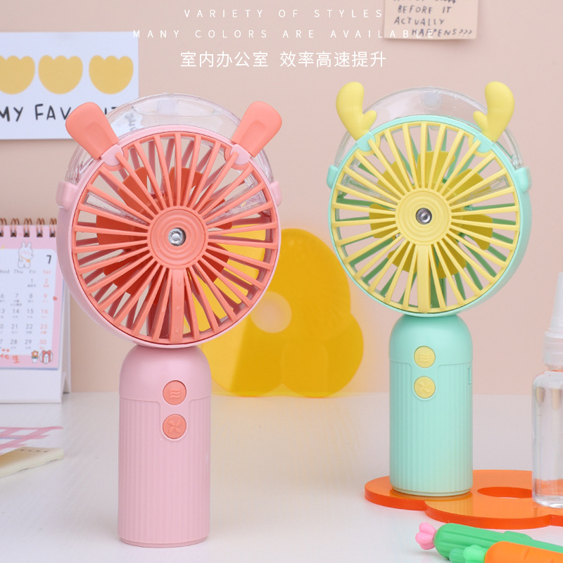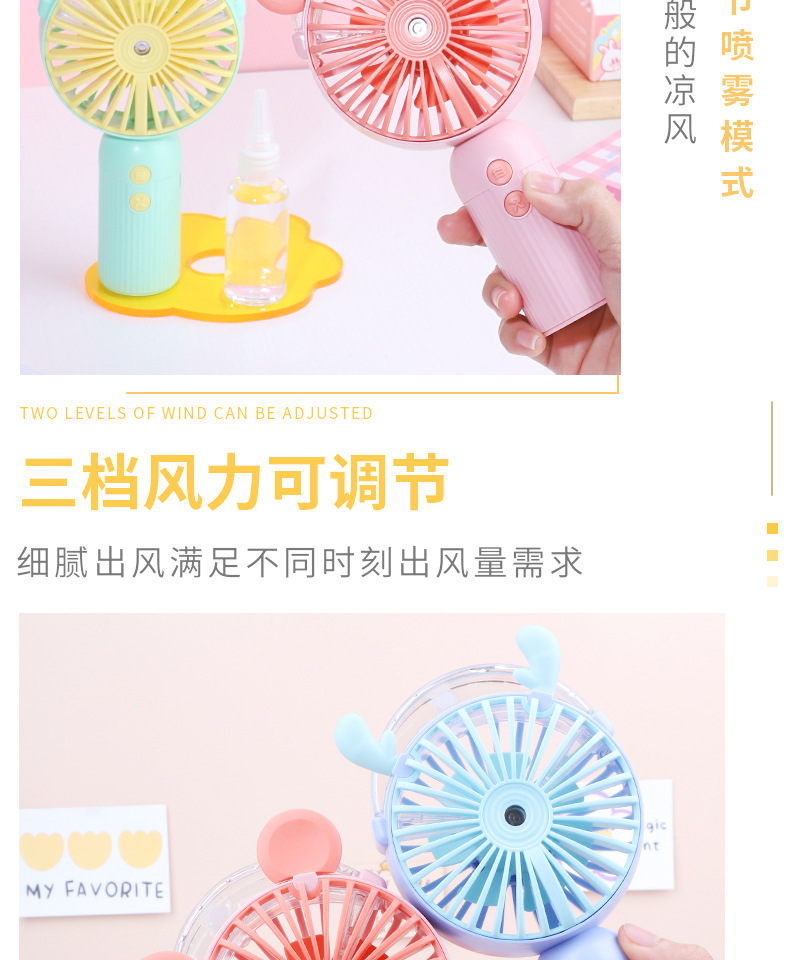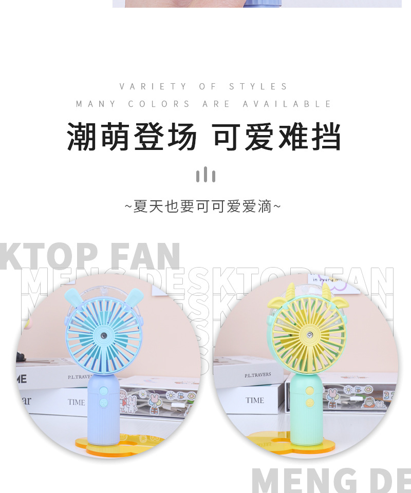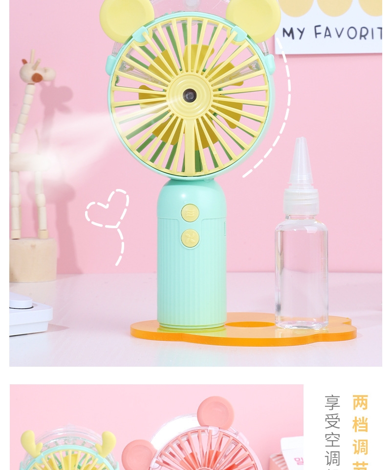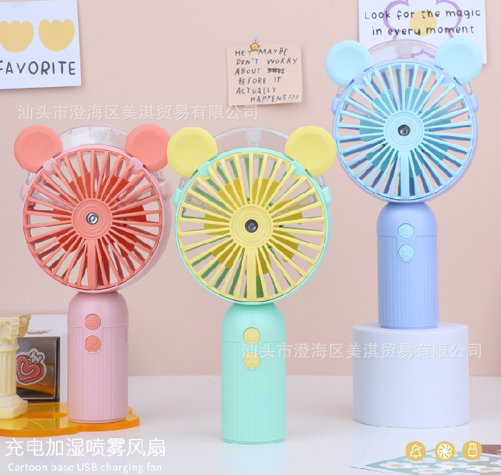 卡通呆萌可爱调档喷雾风扇静音台式小风扇女携带露营野餐用批发