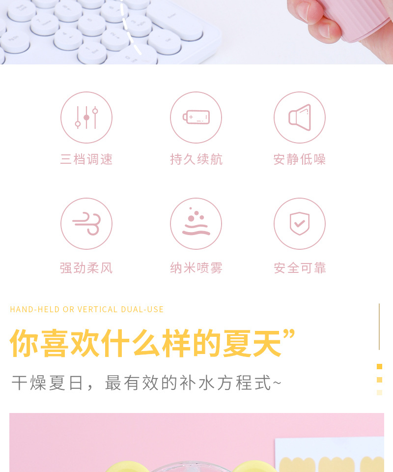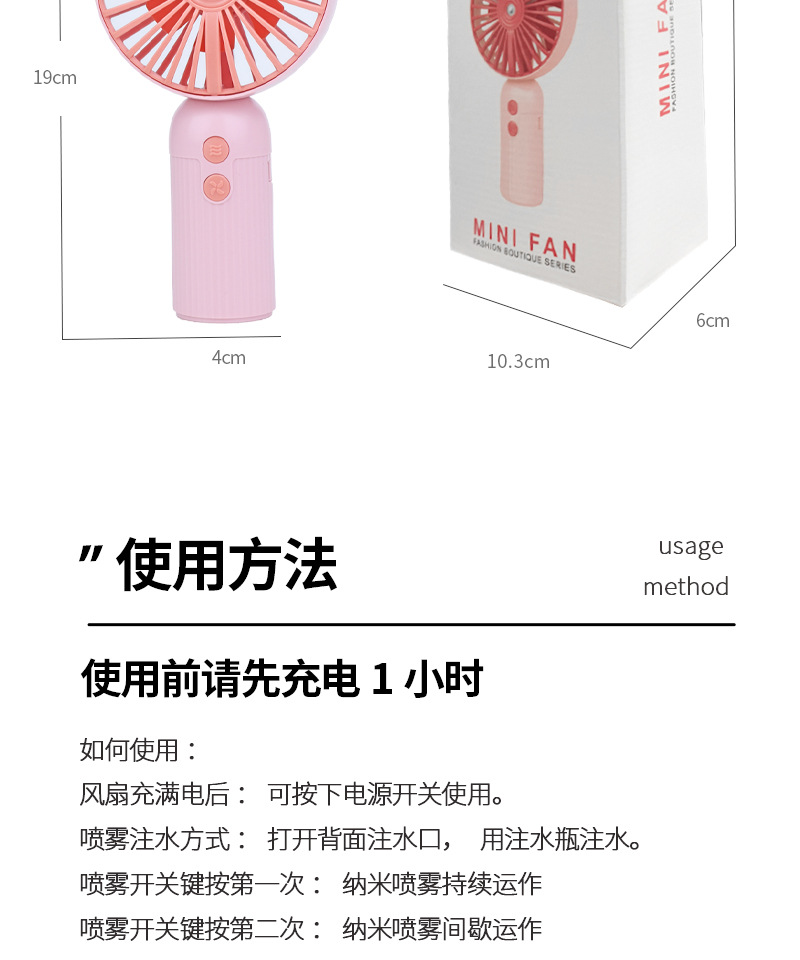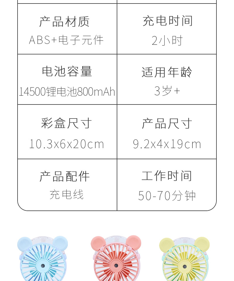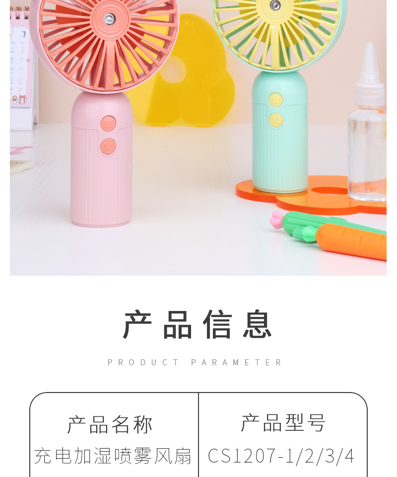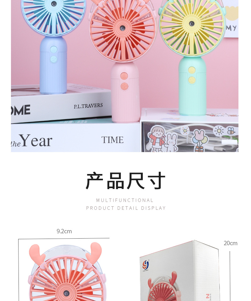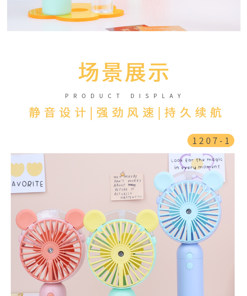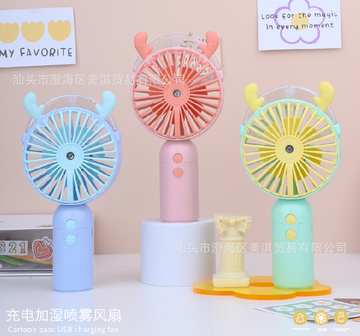 卡通呆萌可爱调档喷雾风扇静音台式小风扇女携带露营野餐用批发
