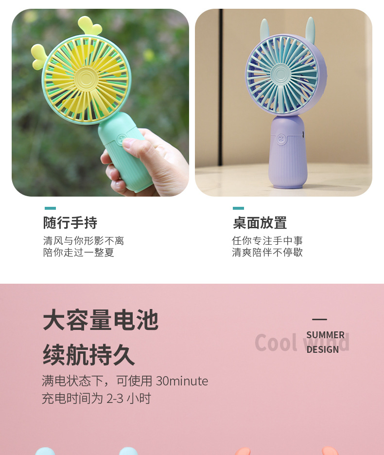 立方可支架usb小风扇宿舍迷你卡通充电地摊便携带静音批发