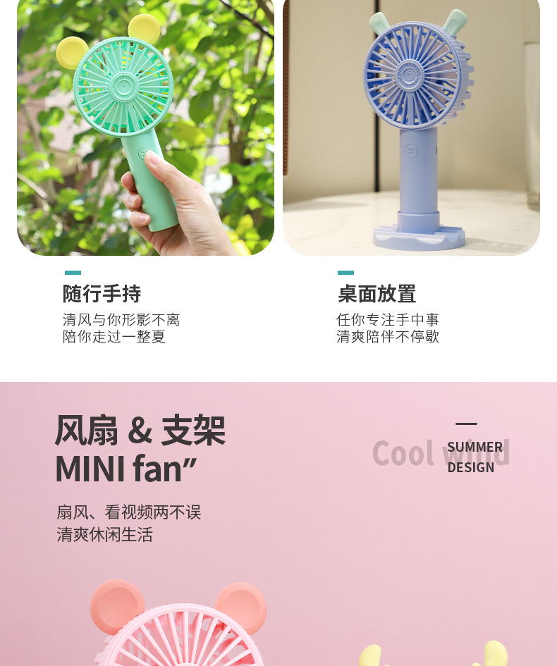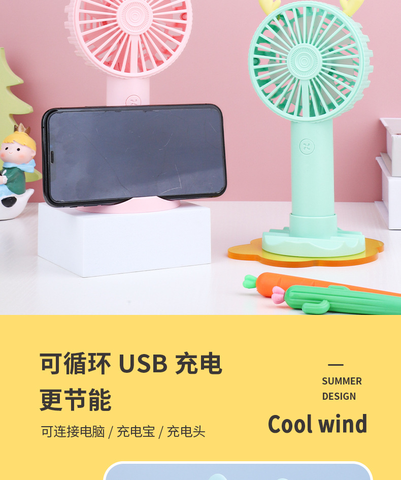 可支架usb小风扇宿舍迷你卡通充电地摊便携带静音批发