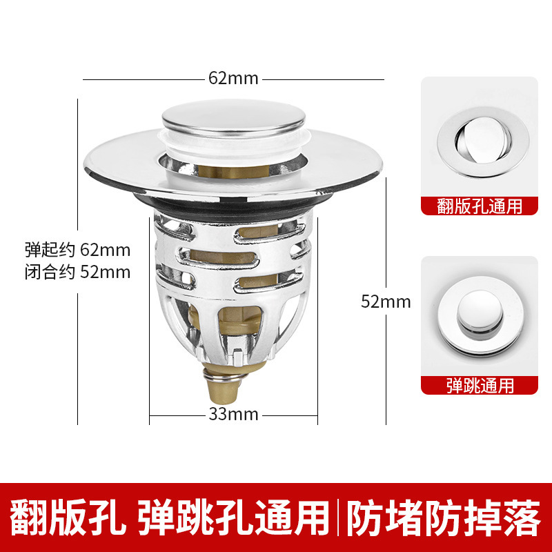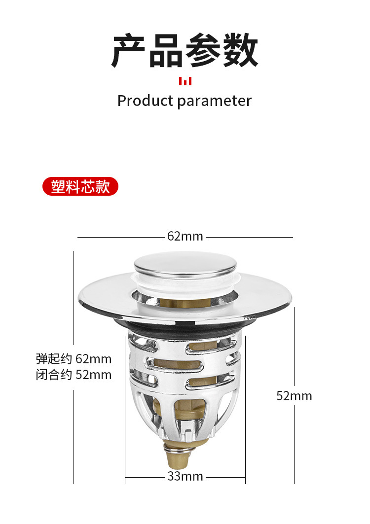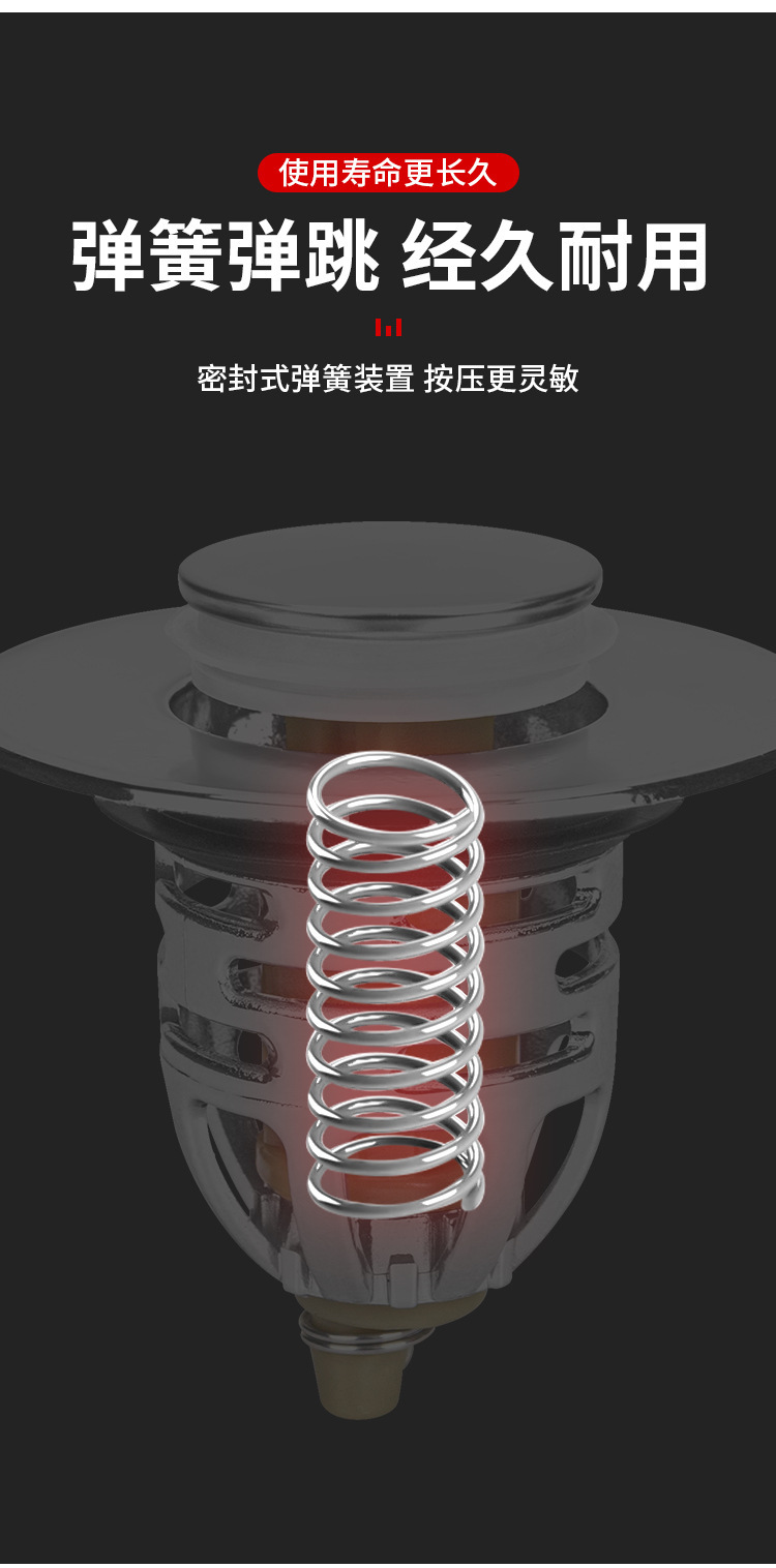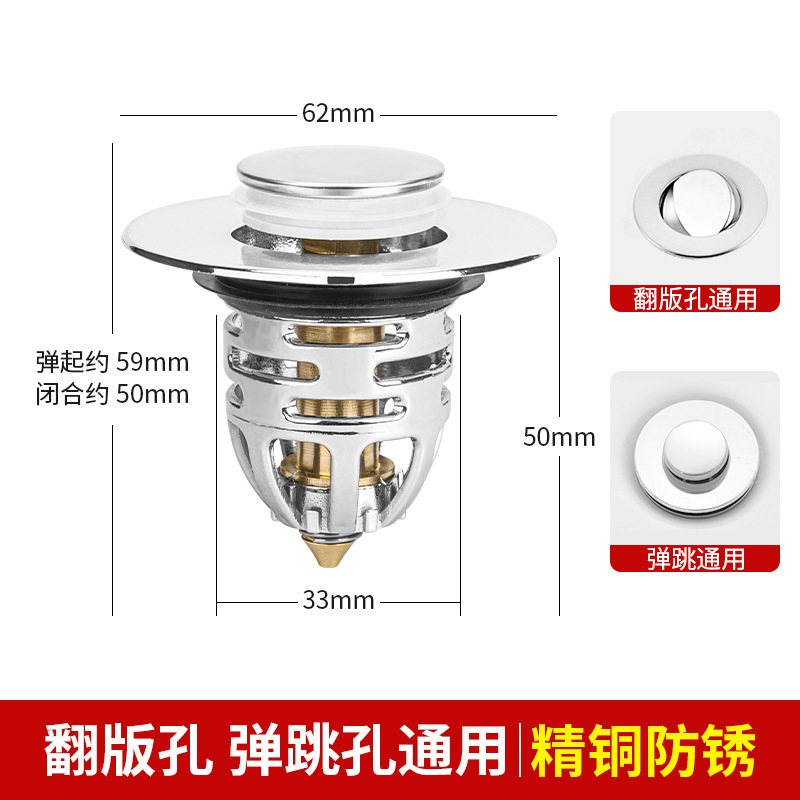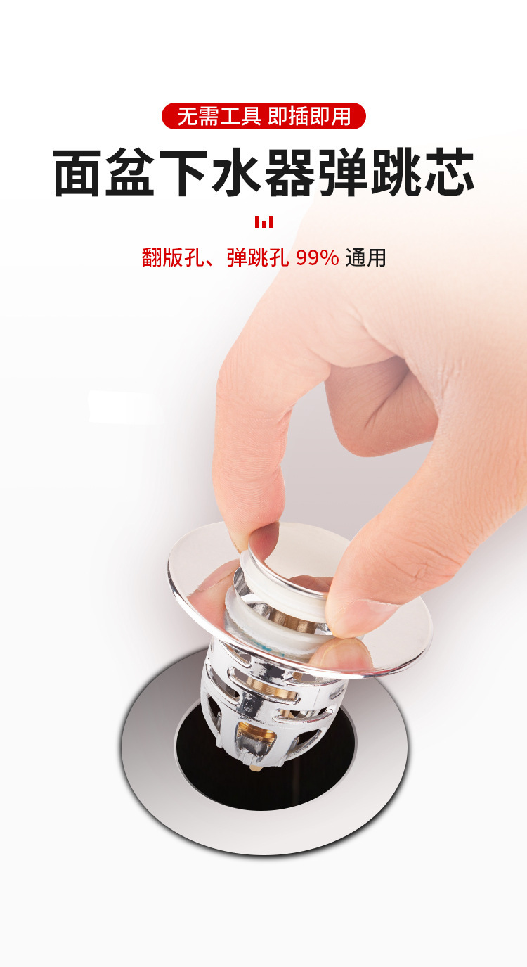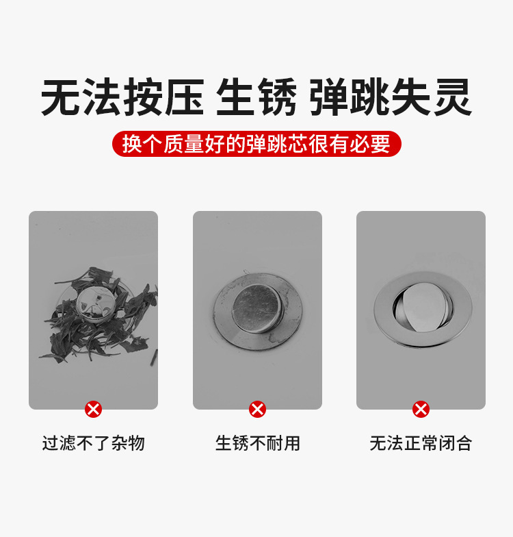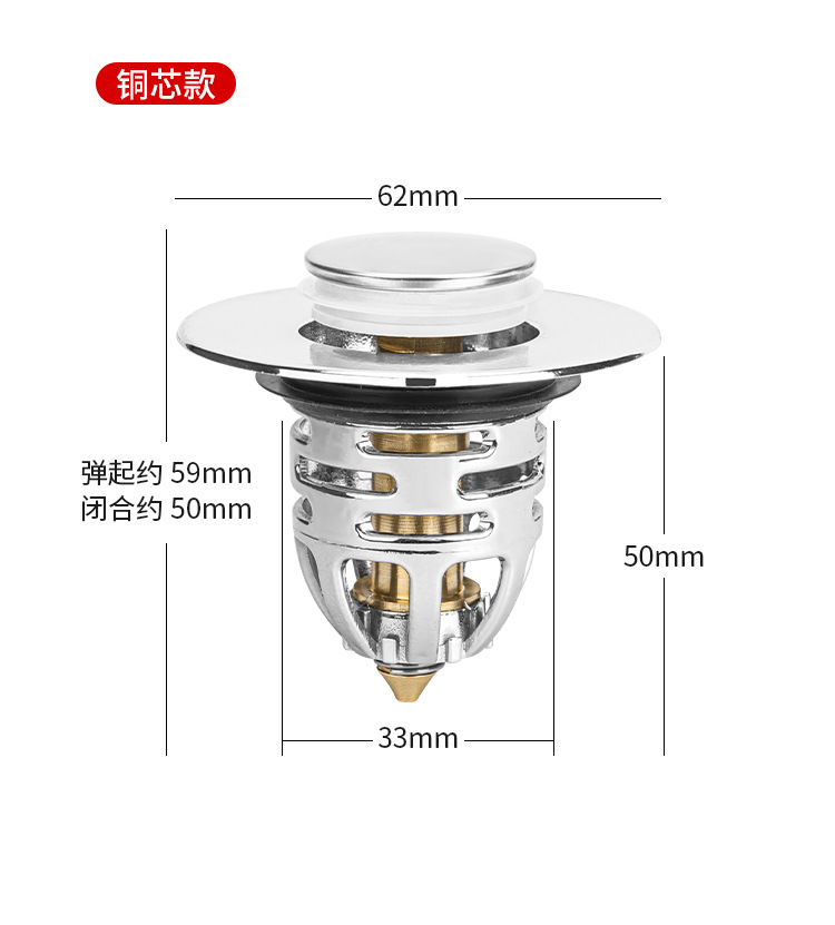 下水器按压式 弹跳芯洗手脸盆台盆铜芯弹漏水塞子
