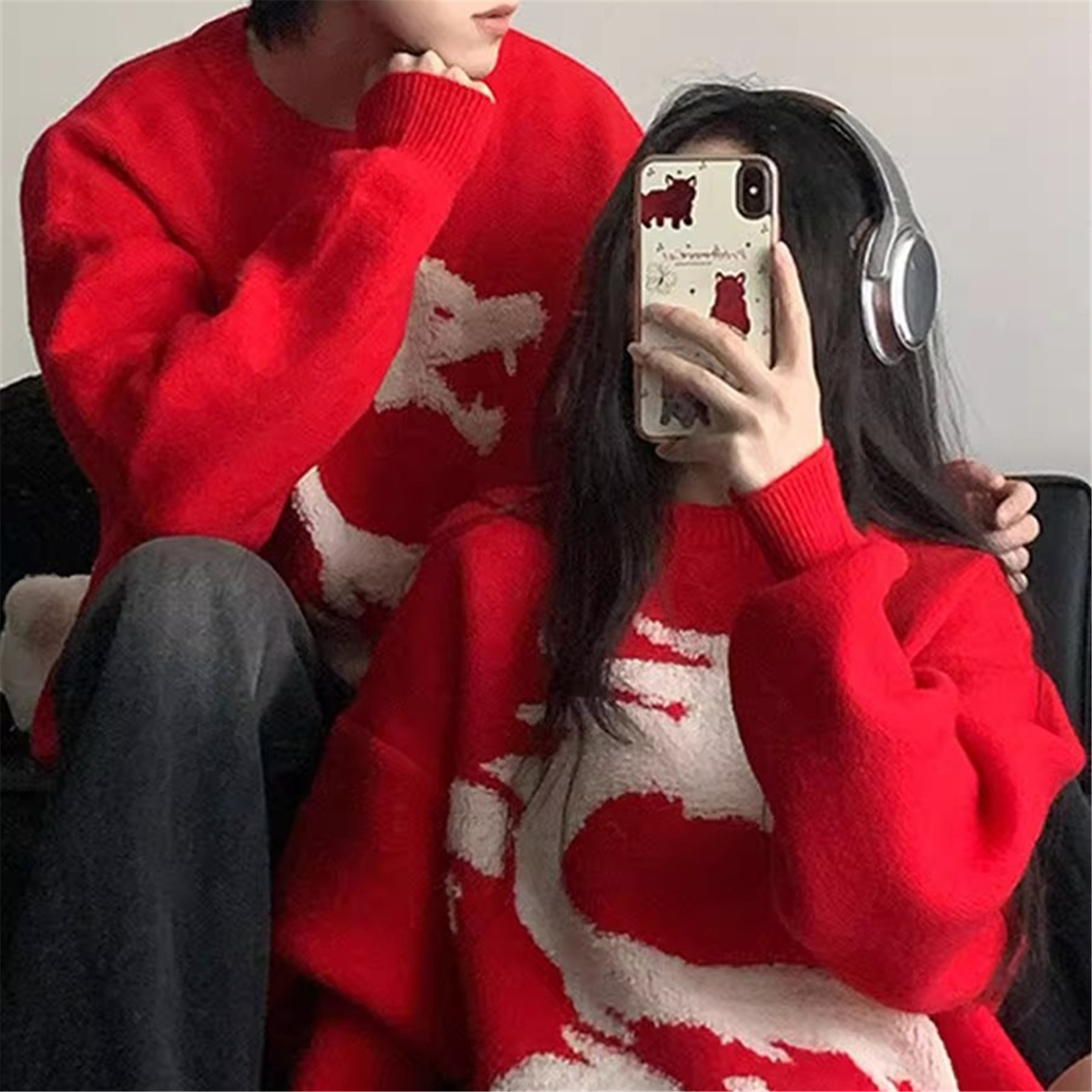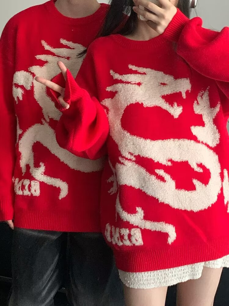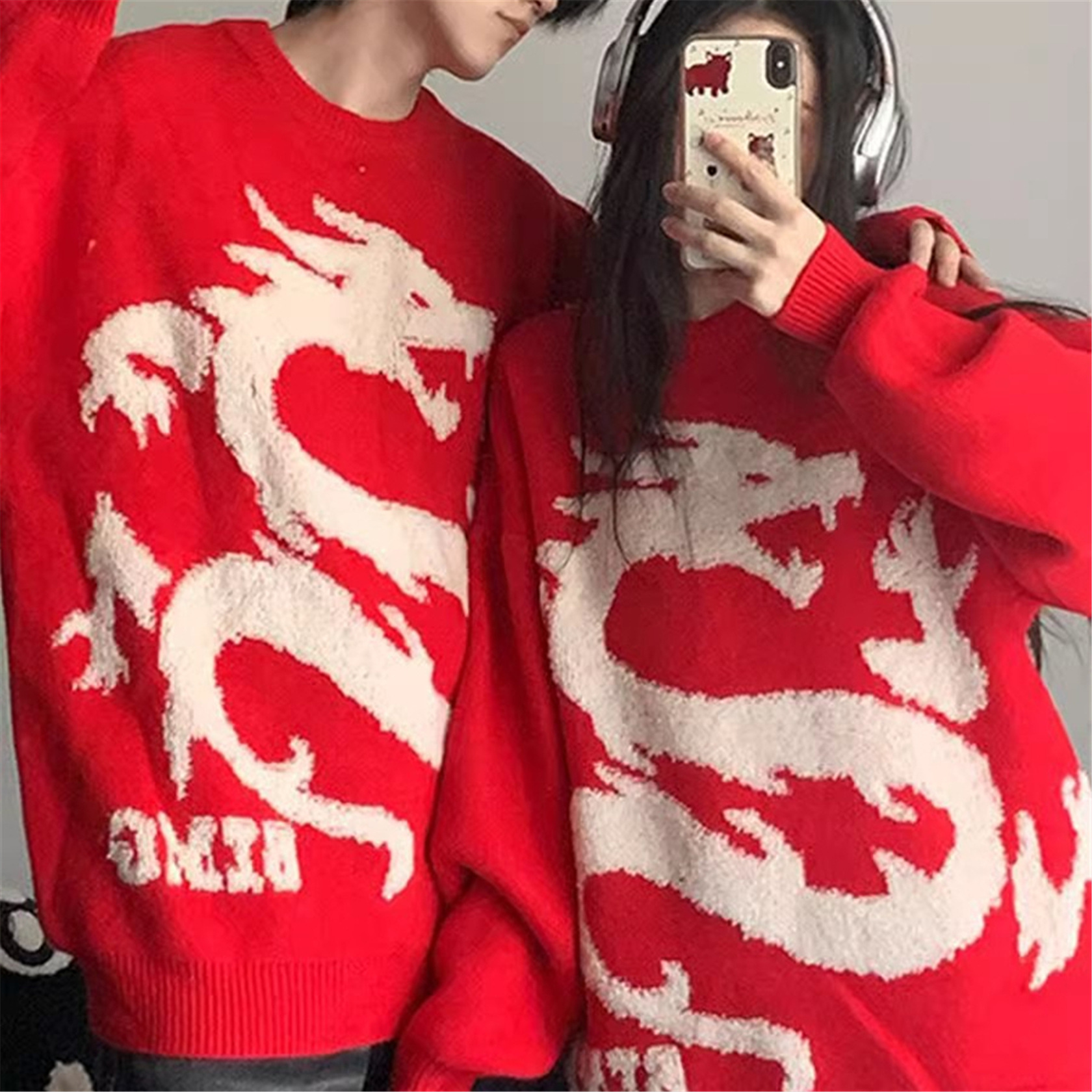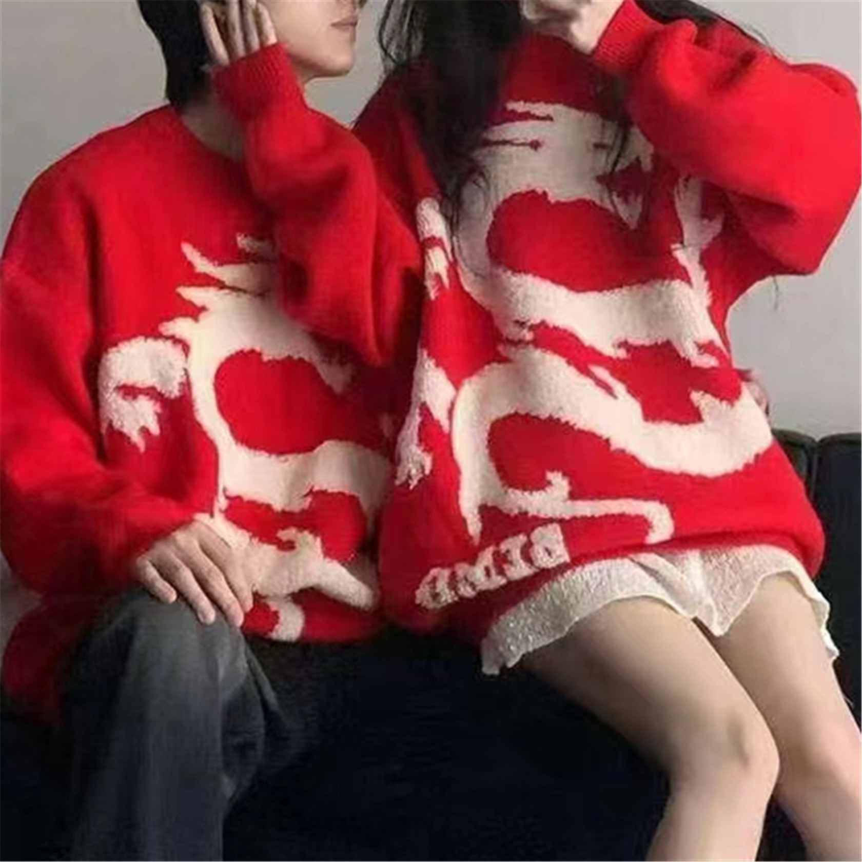 情侣装龙年本命年男女红色毛衣2024季新款外搭宽松新年喜庆针织衫