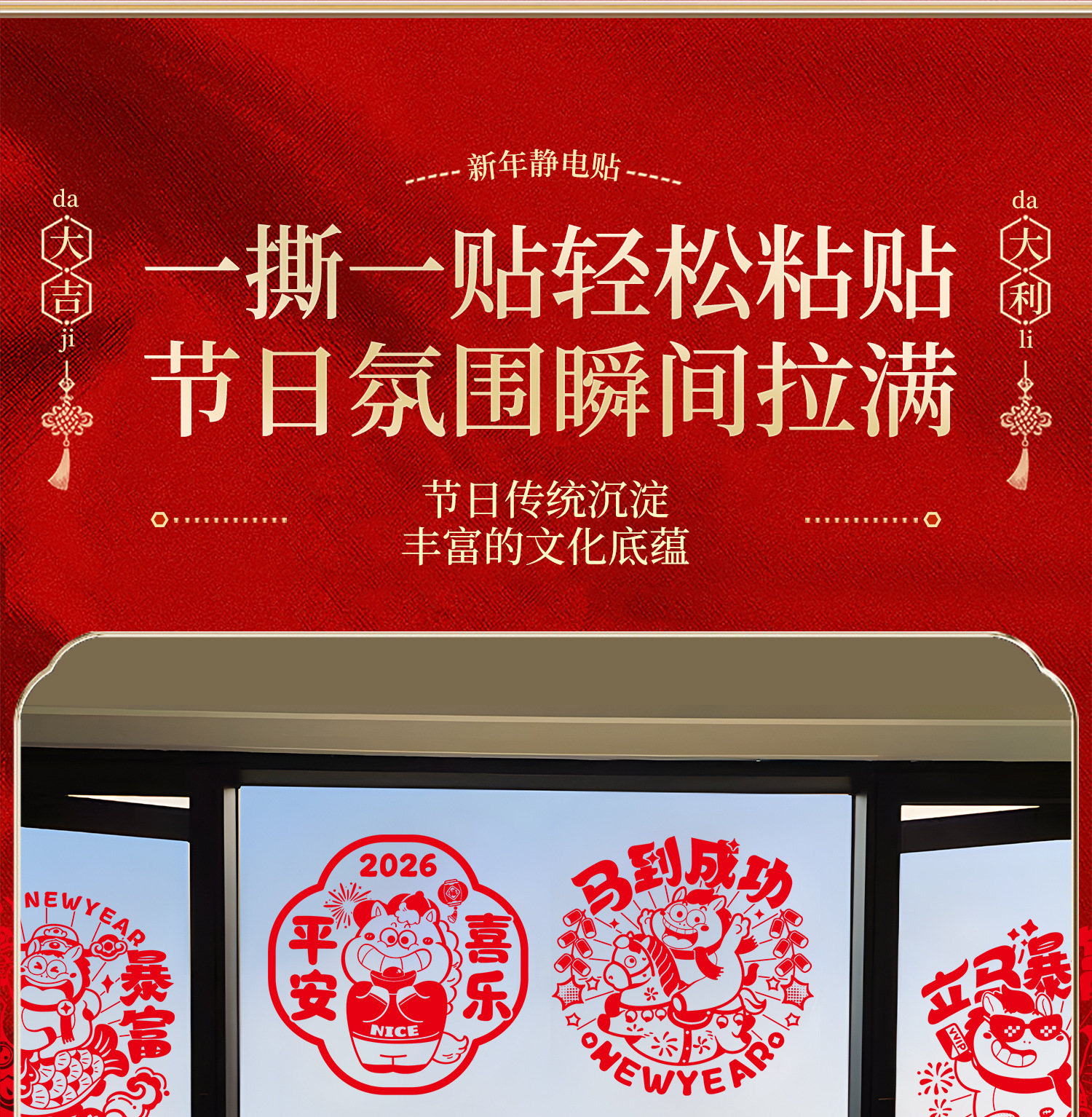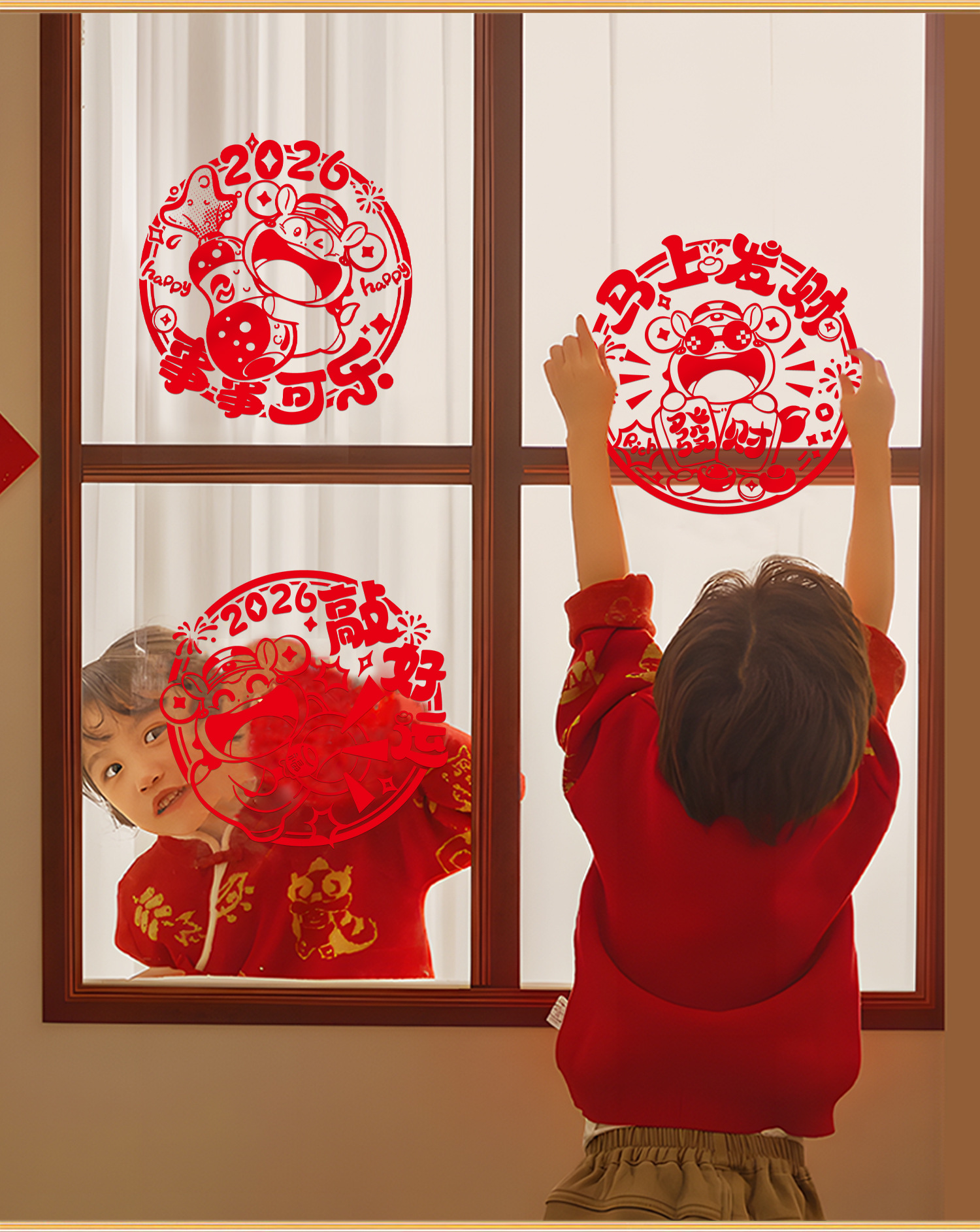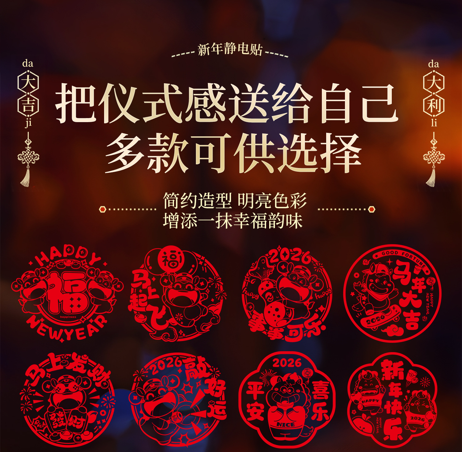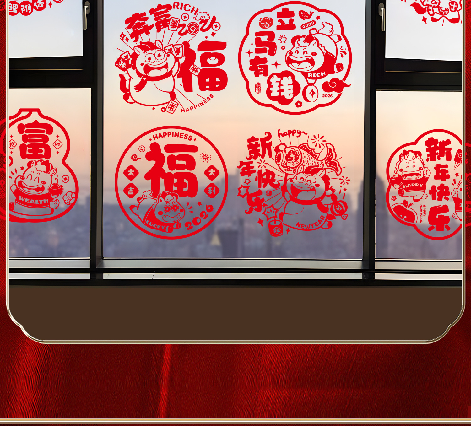 新年窗花贴2026马年新款静电贴剪纸门贴画窗户玻璃窗花福字贴装饰