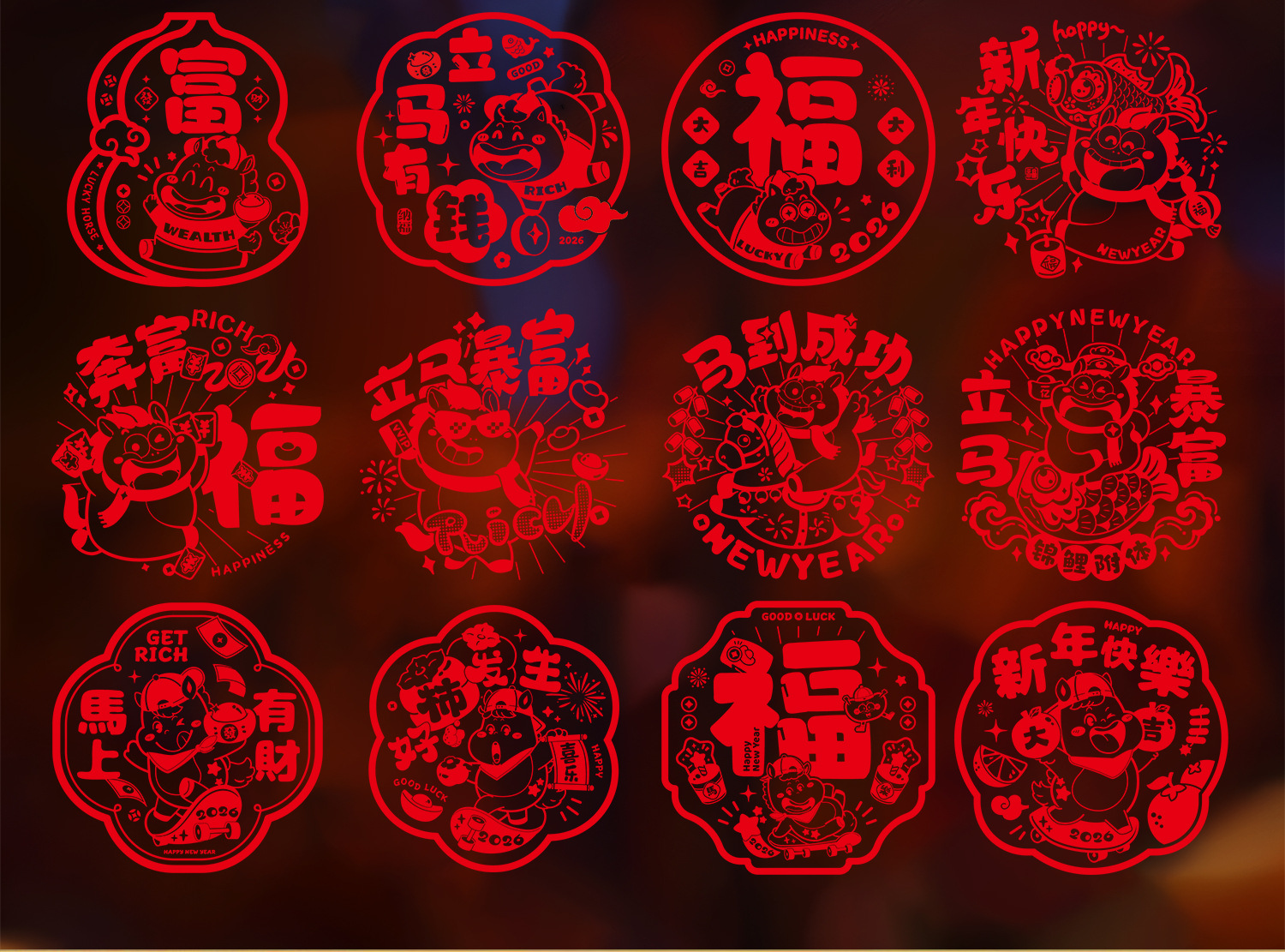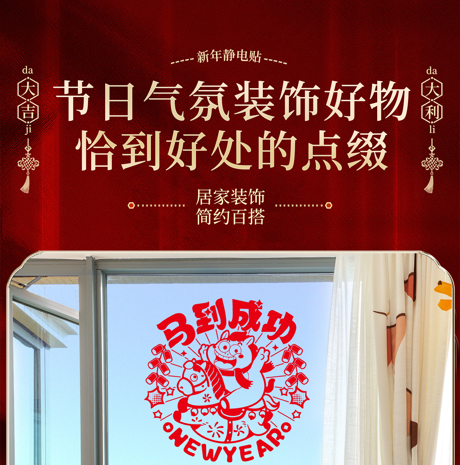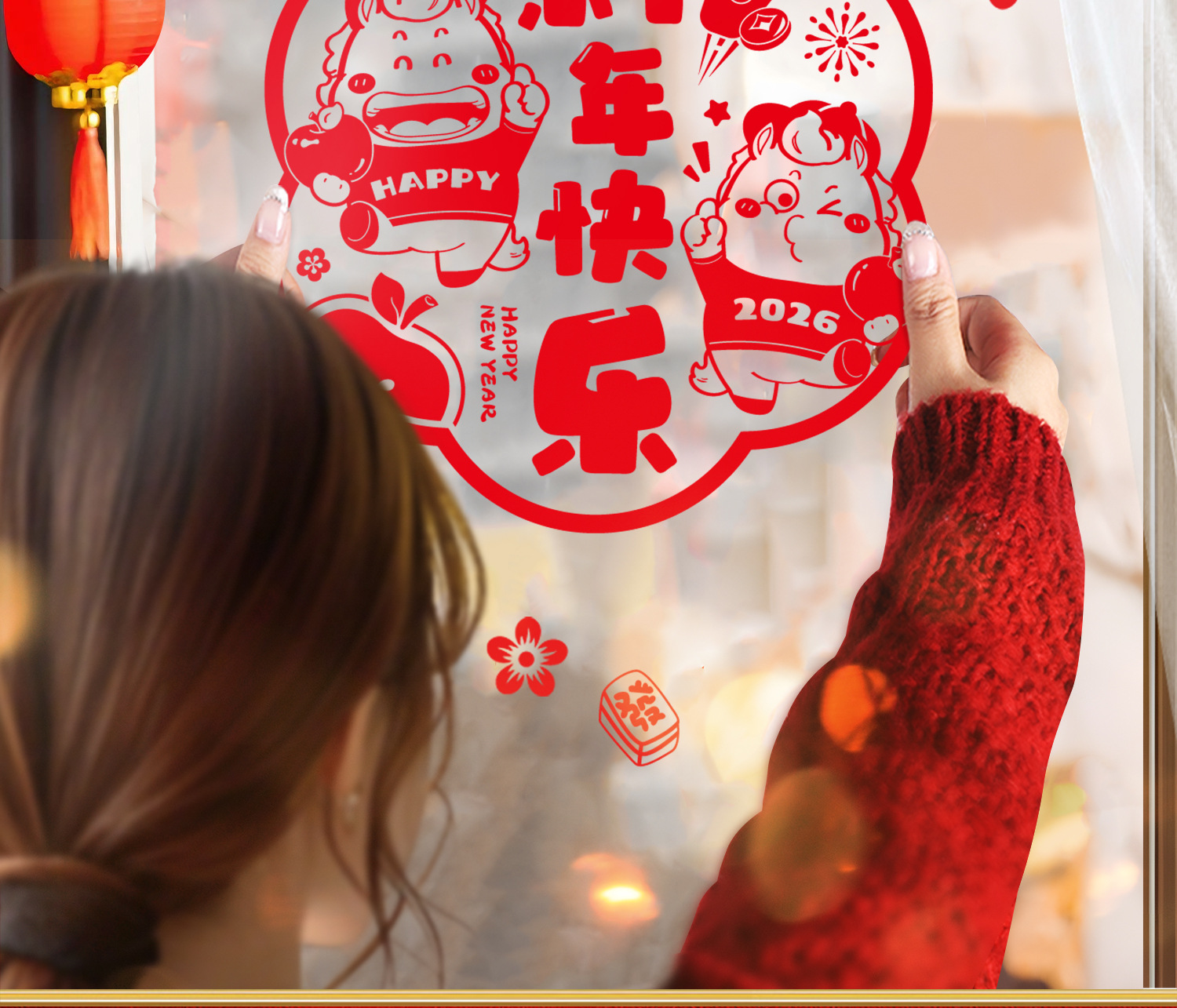 新年窗花贴2026马年新款静电贴剪纸门贴画窗户玻璃窗花福字贴装饰