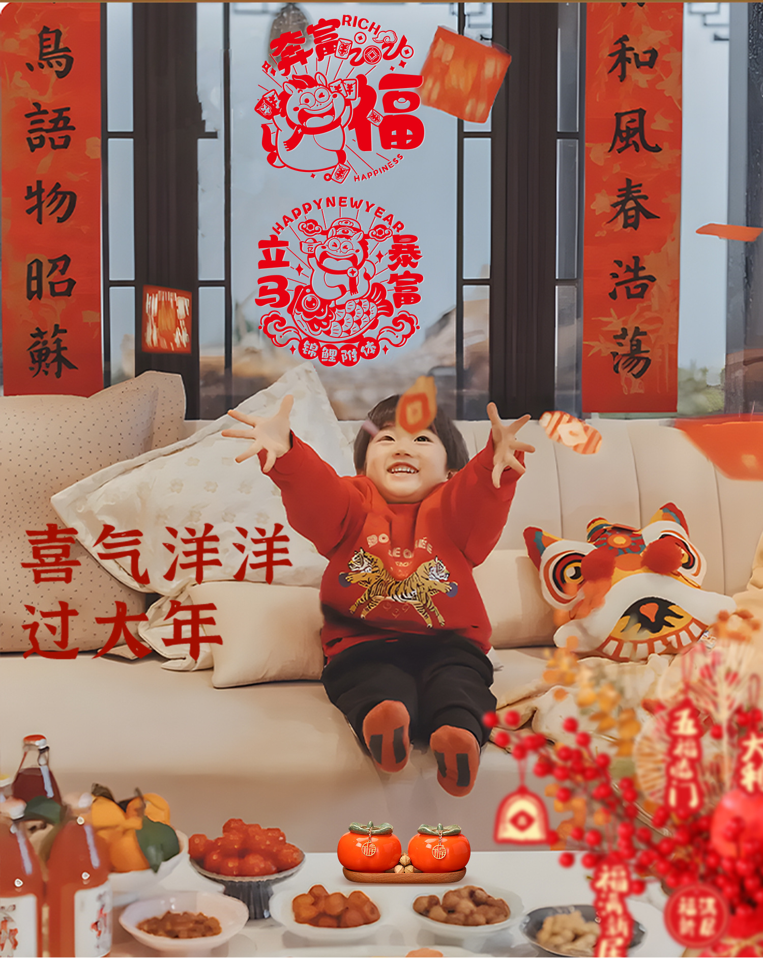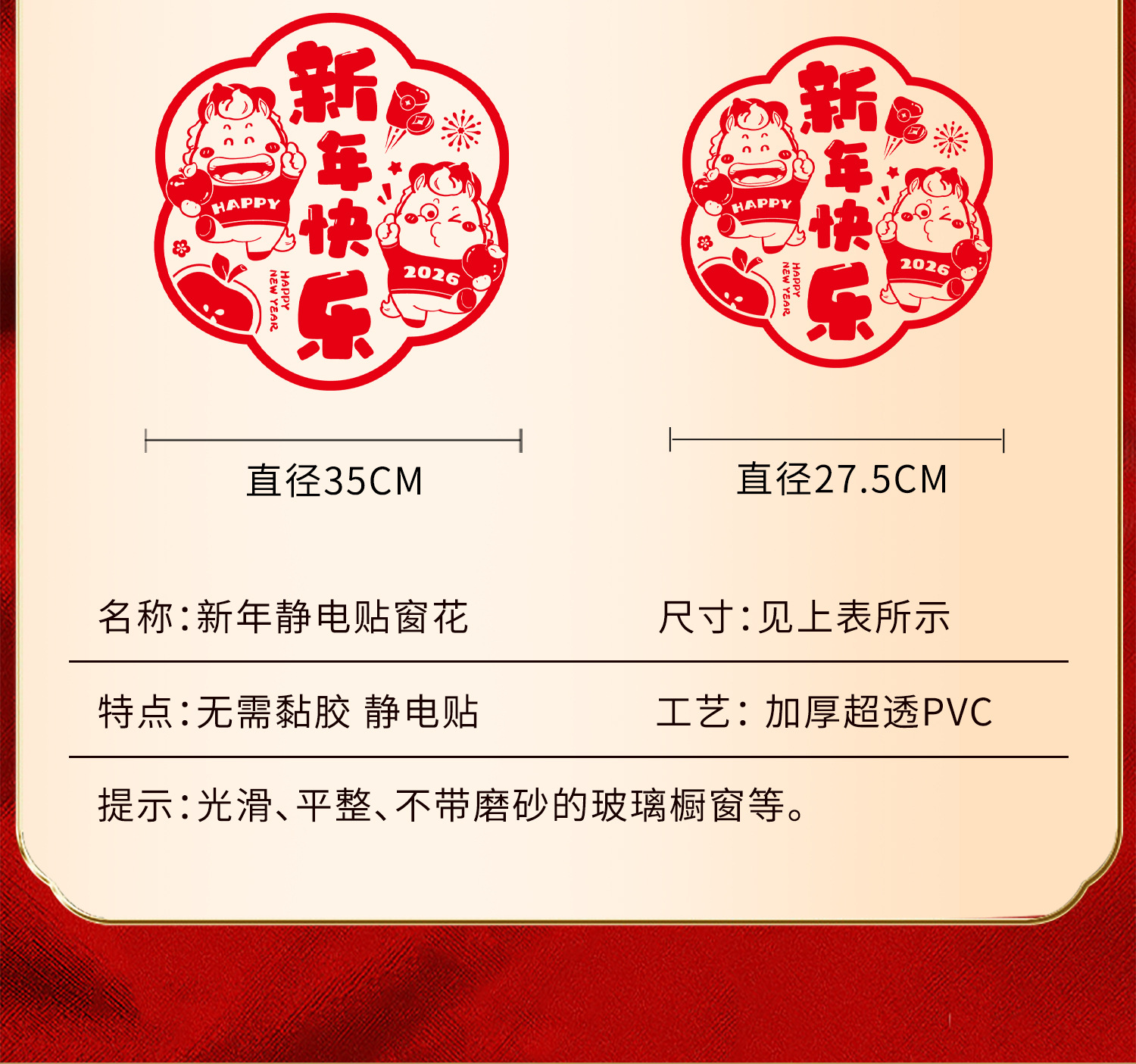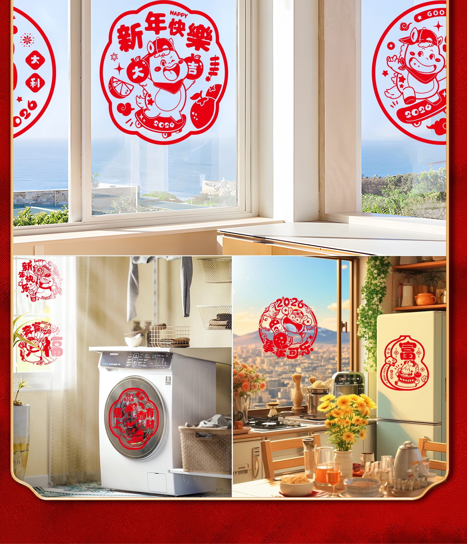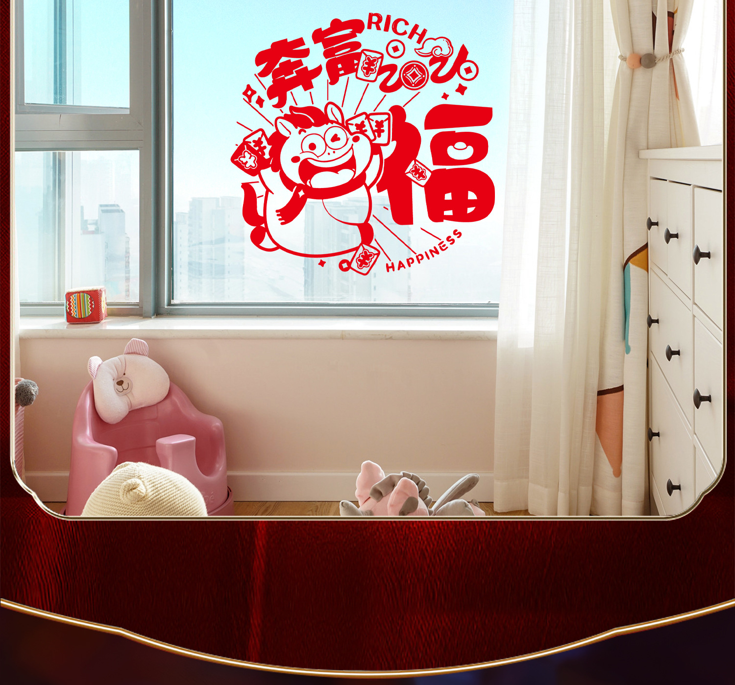 新年窗花贴2026马年新款静电贴剪纸门贴画窗户玻璃窗花福字贴装饰