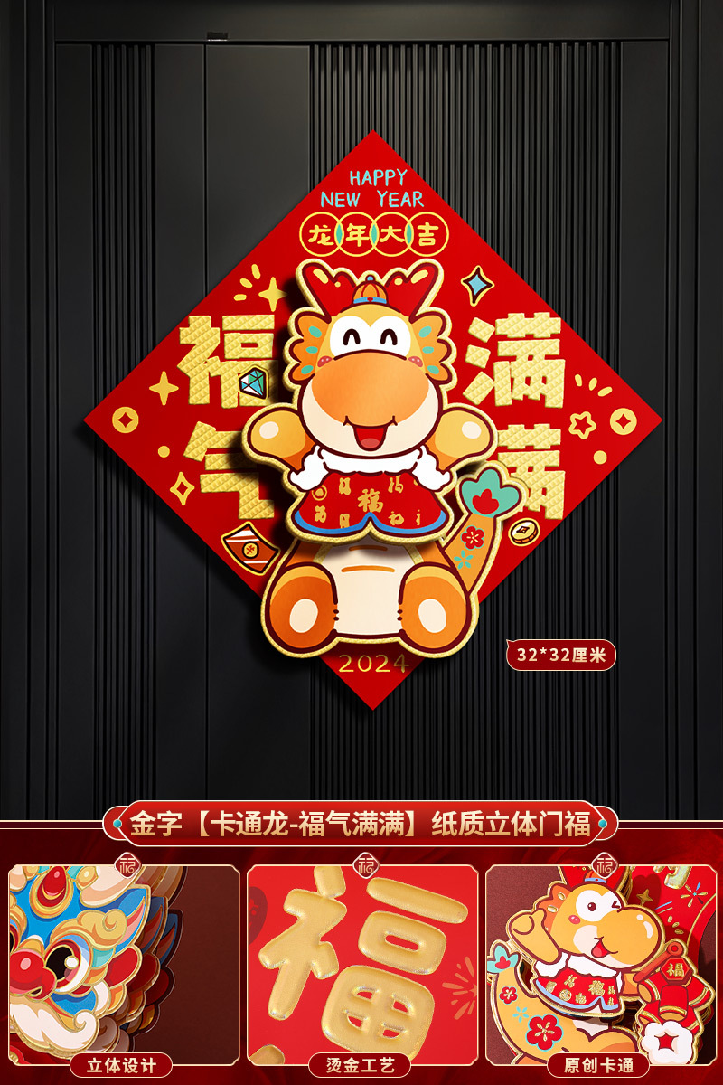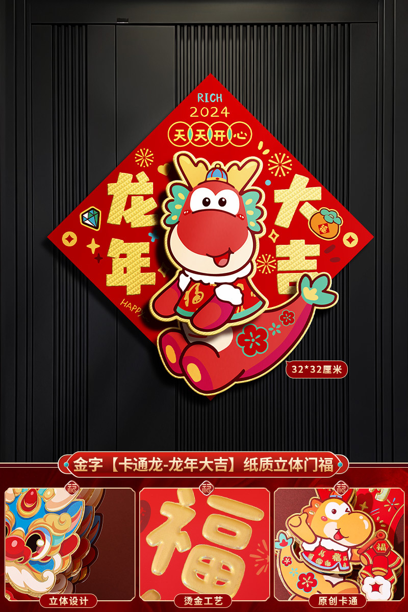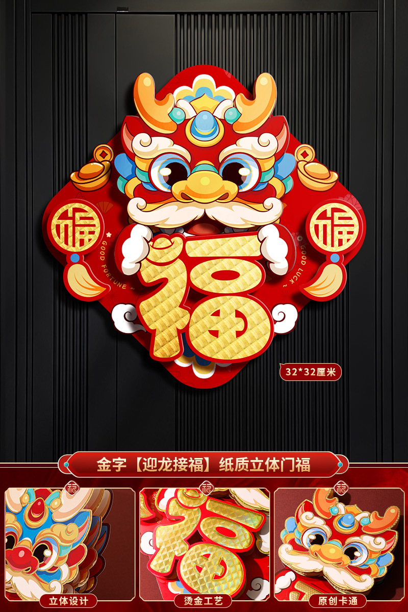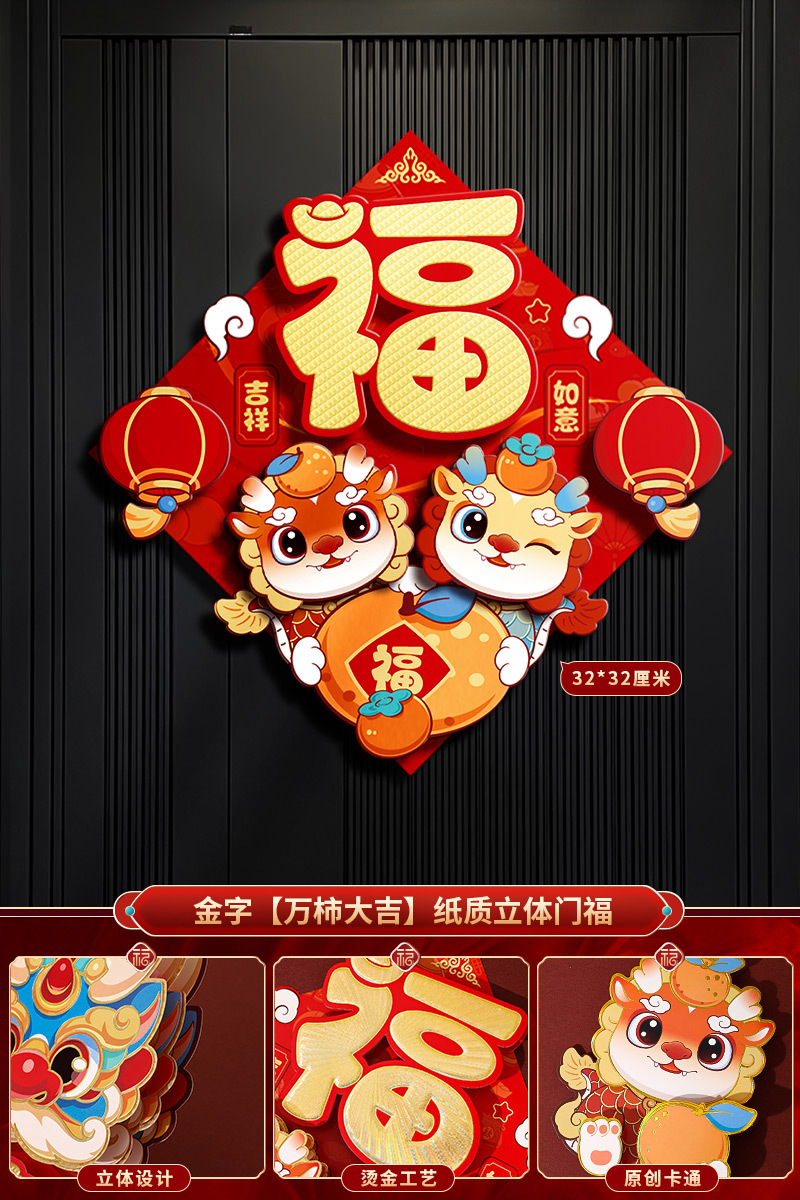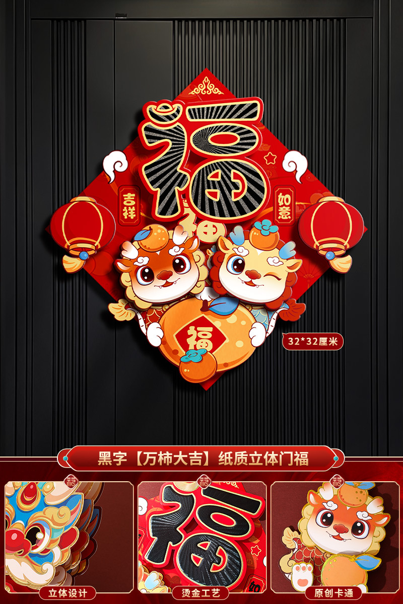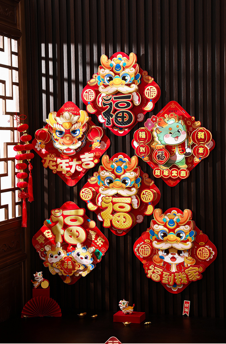 2024龙年福字新年立体新款家用过年春节剪纸窗花贴纸装饰品大门贴