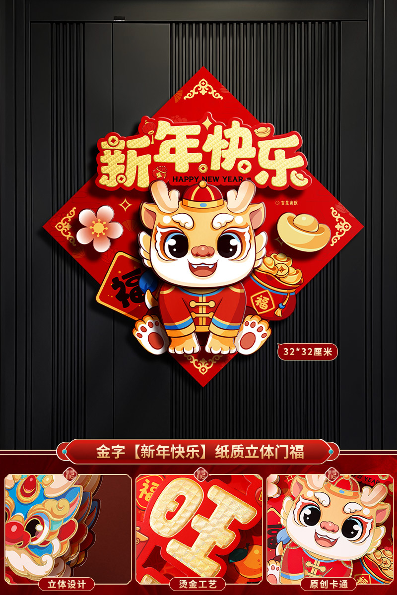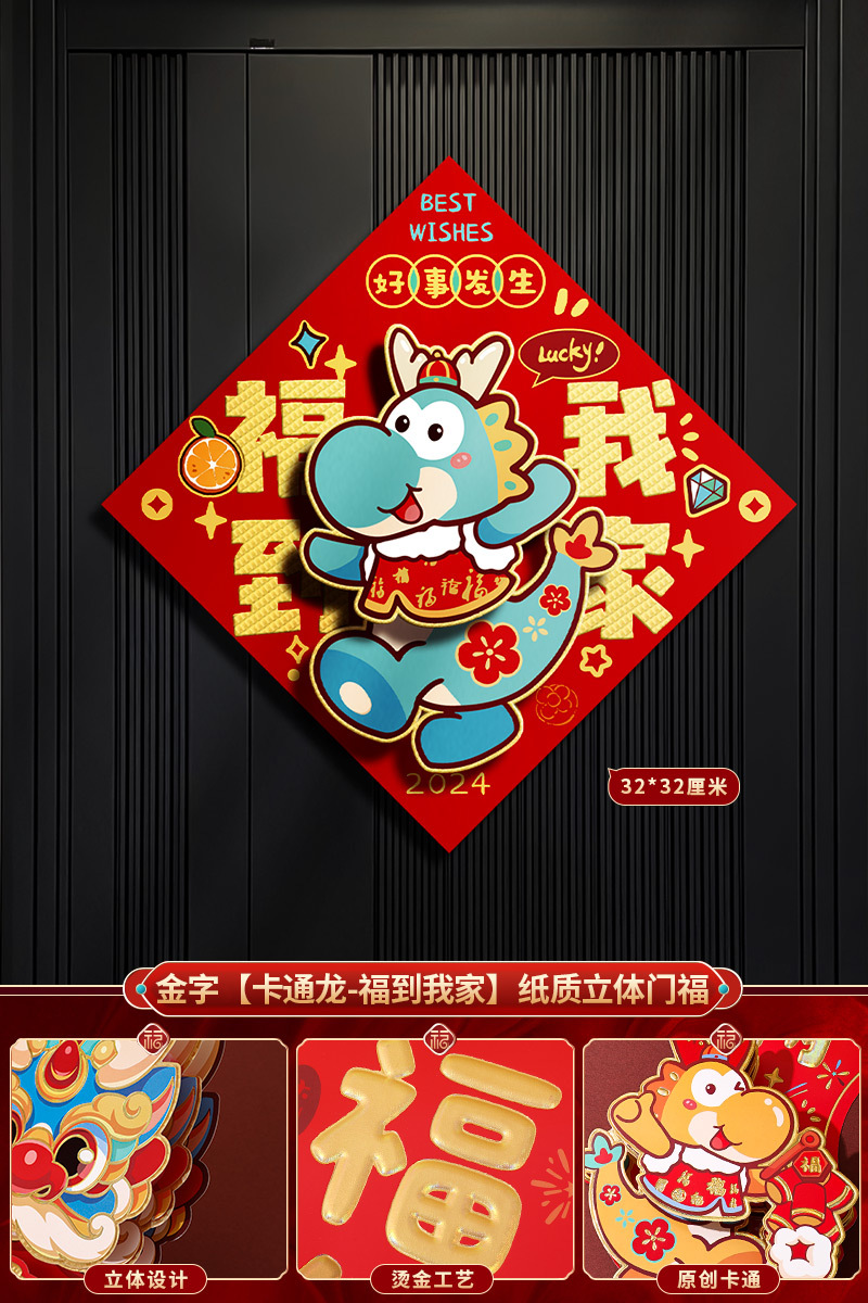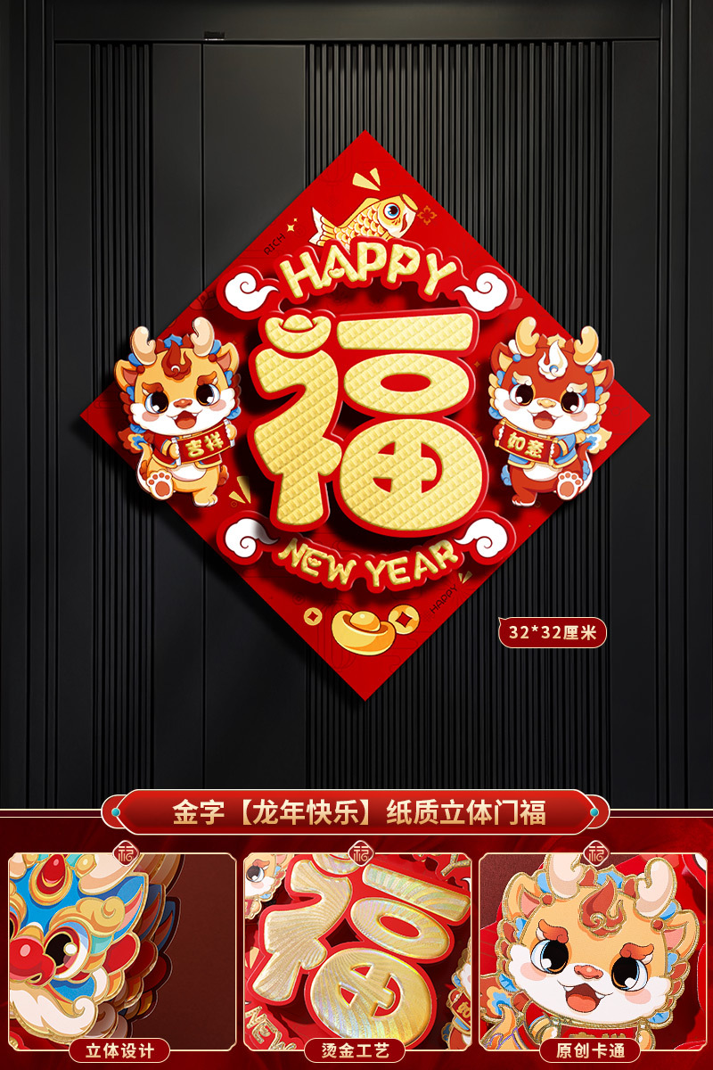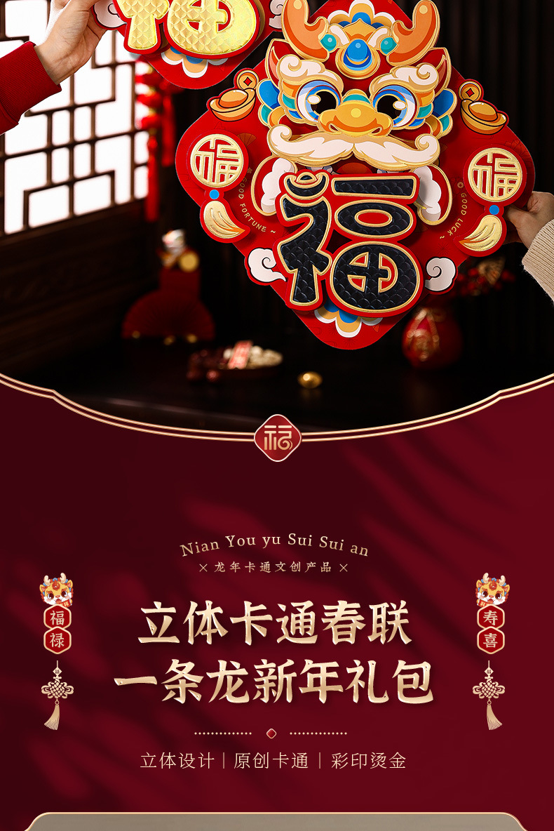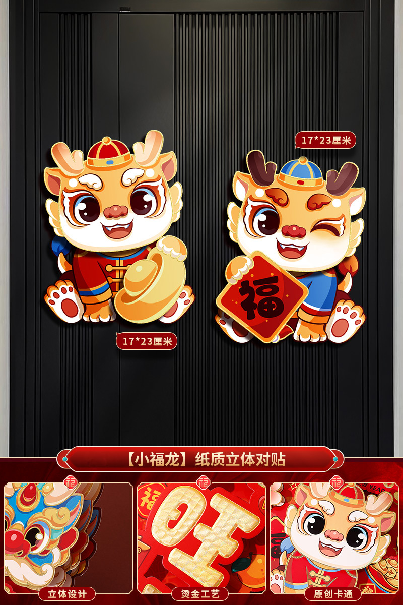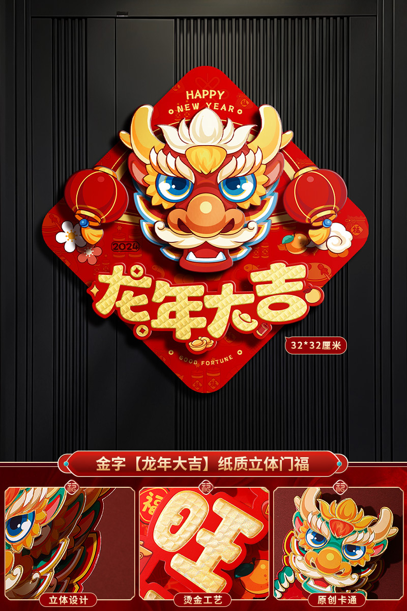 2024龙年福字新年立体新款家用过年春节剪纸窗花贴纸装饰品大门贴
