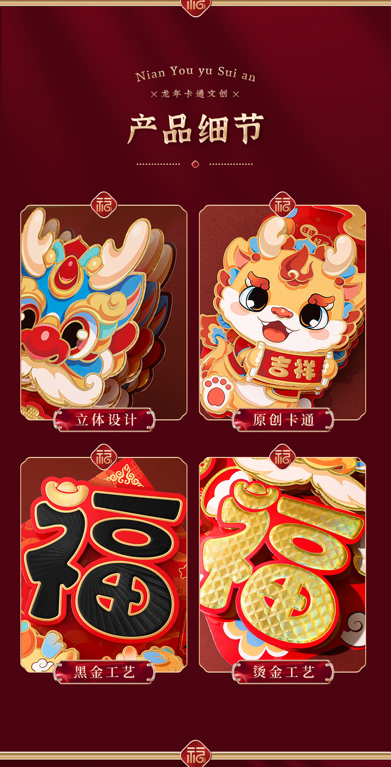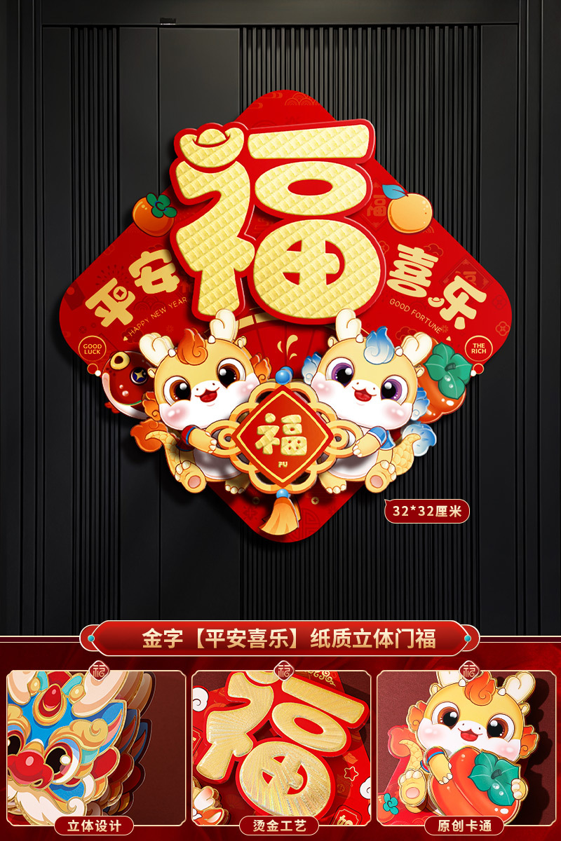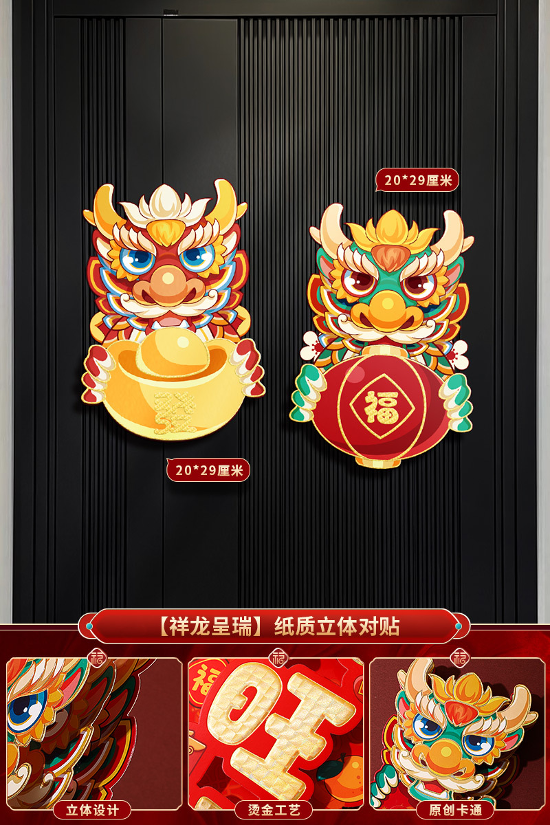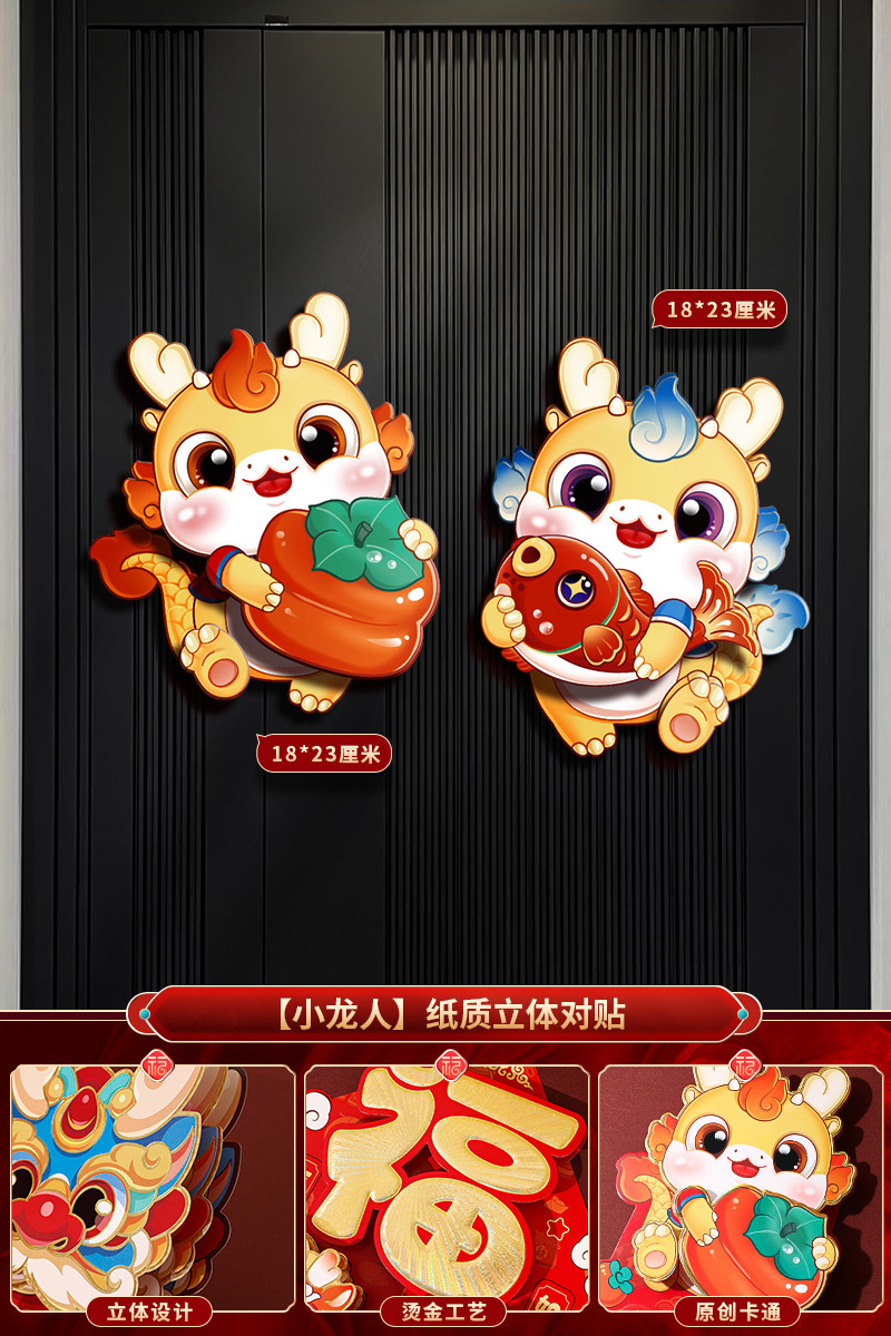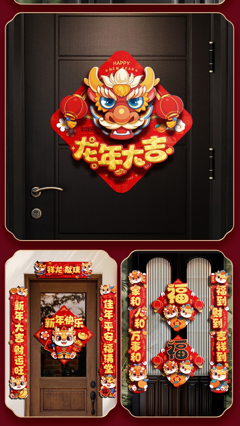 2024龙年福字新年立体新款家用过年春节剪纸窗花贴纸装饰品大门贴