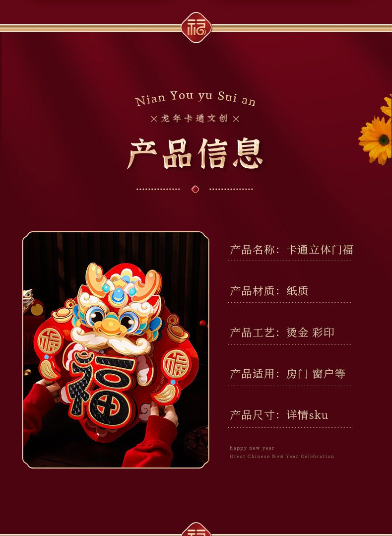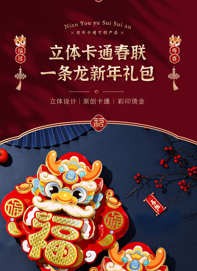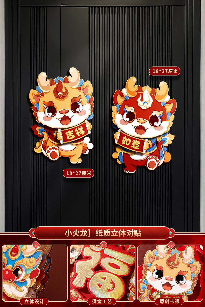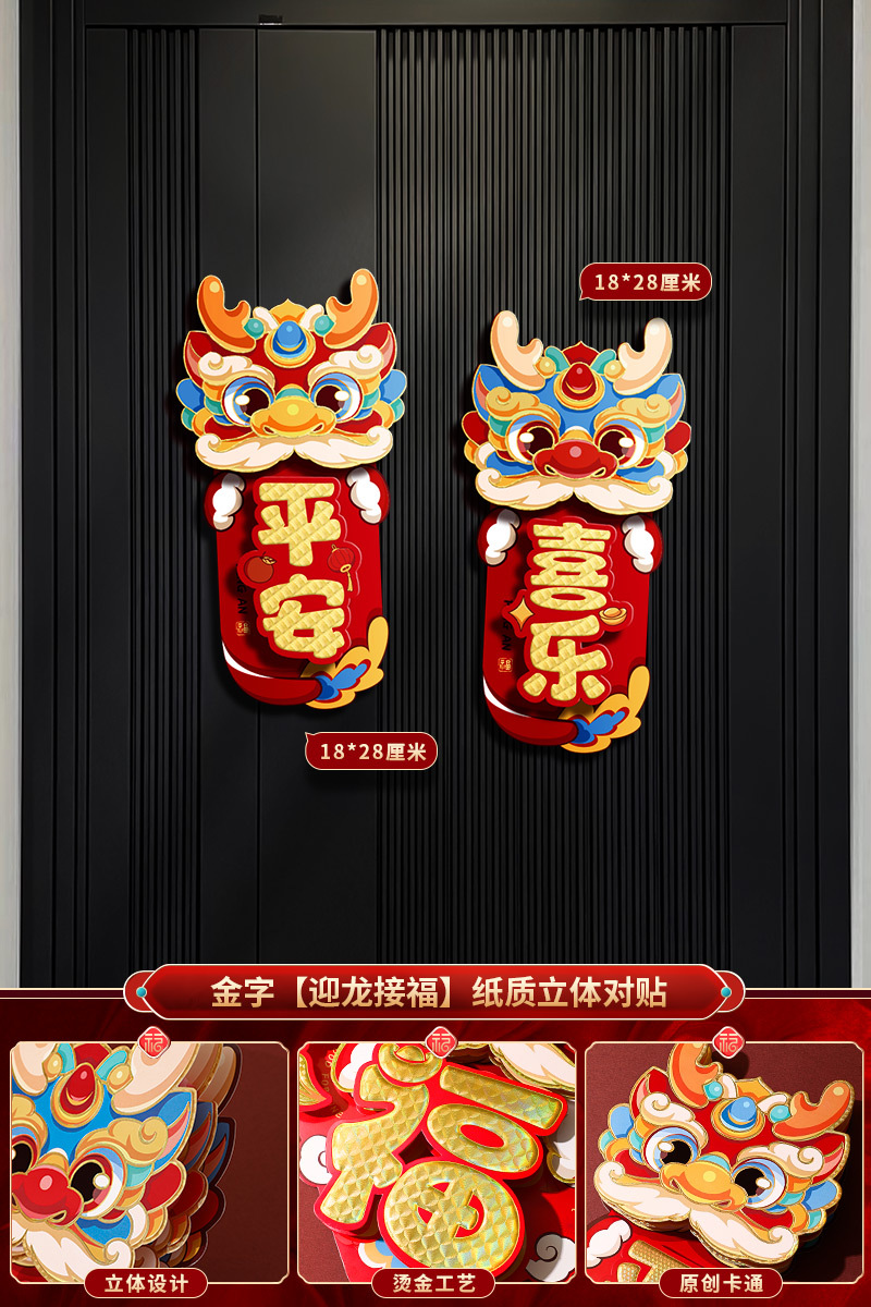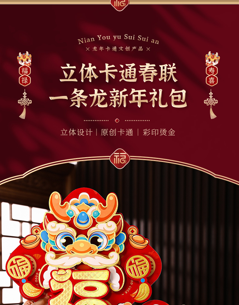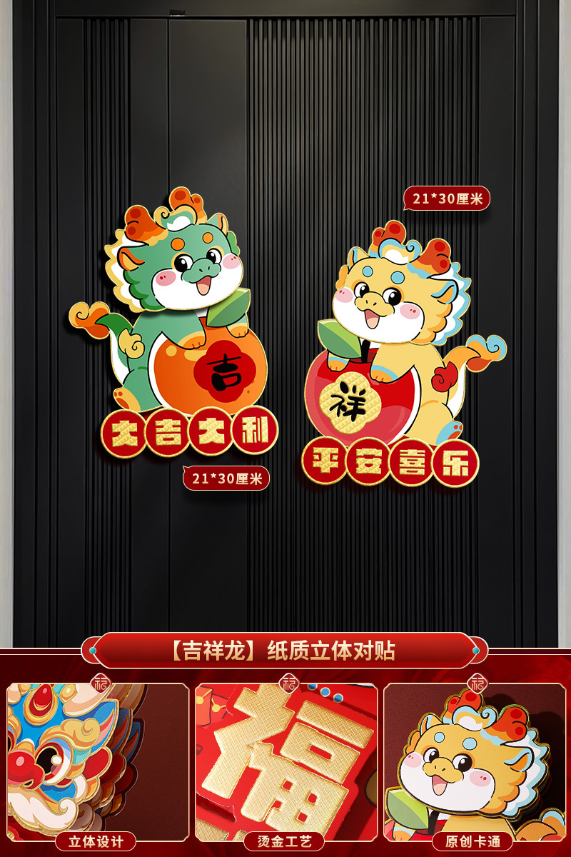 2024龙年福字新年立体新款家用过年春节剪纸窗花贴纸装饰品大门贴