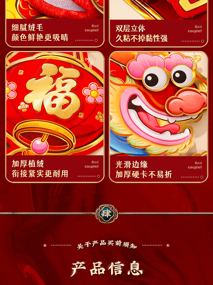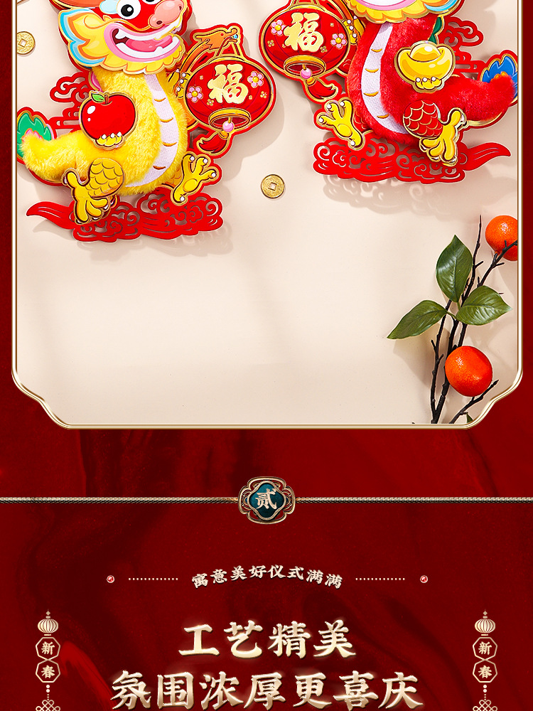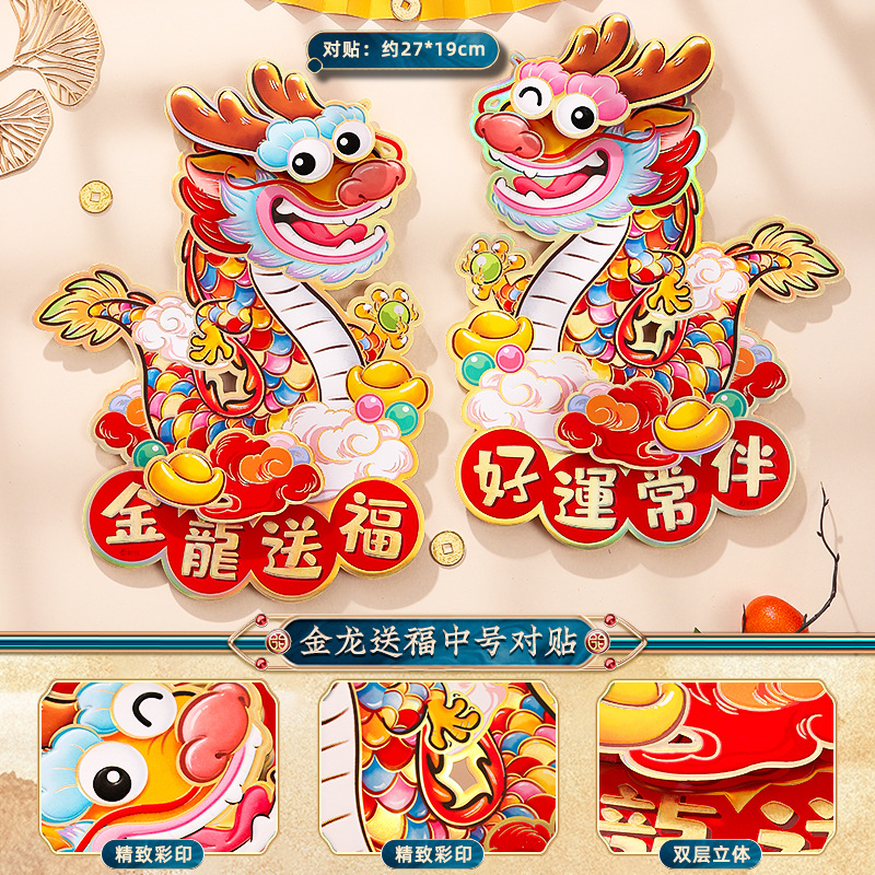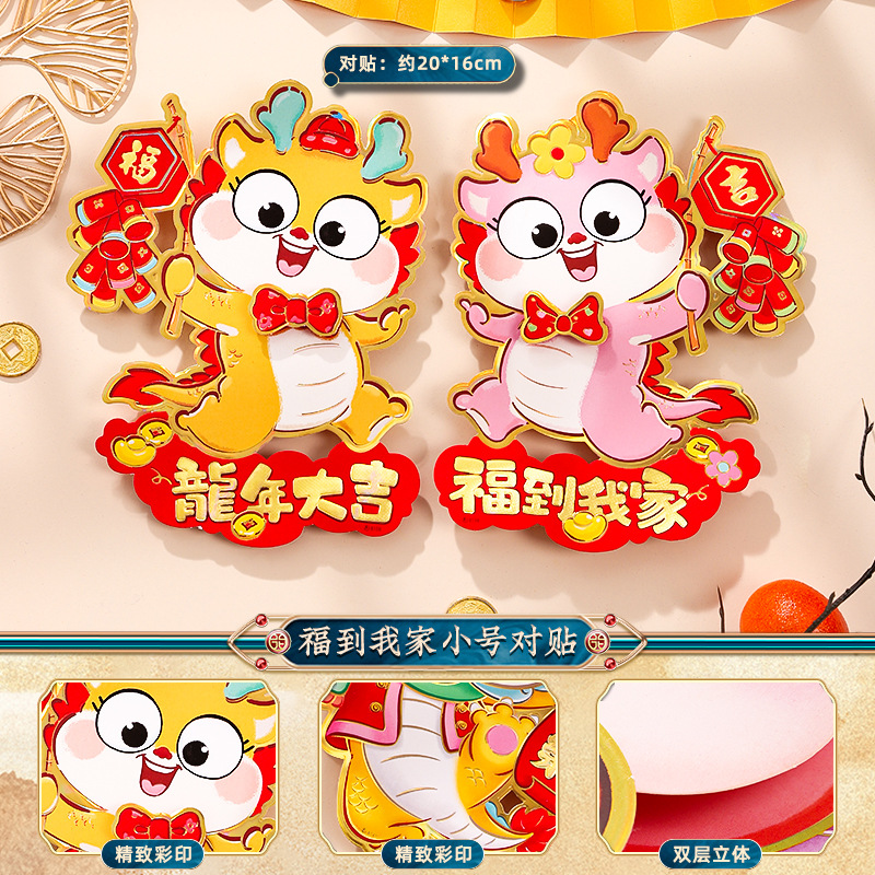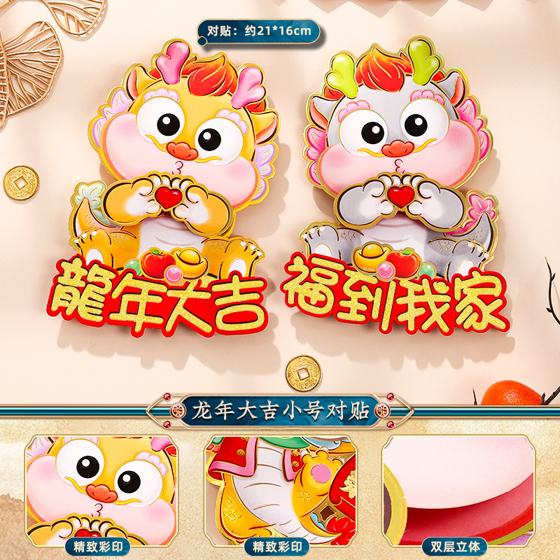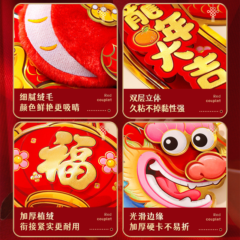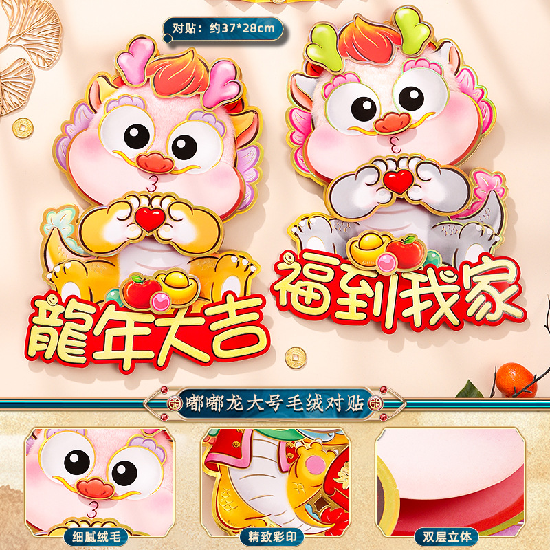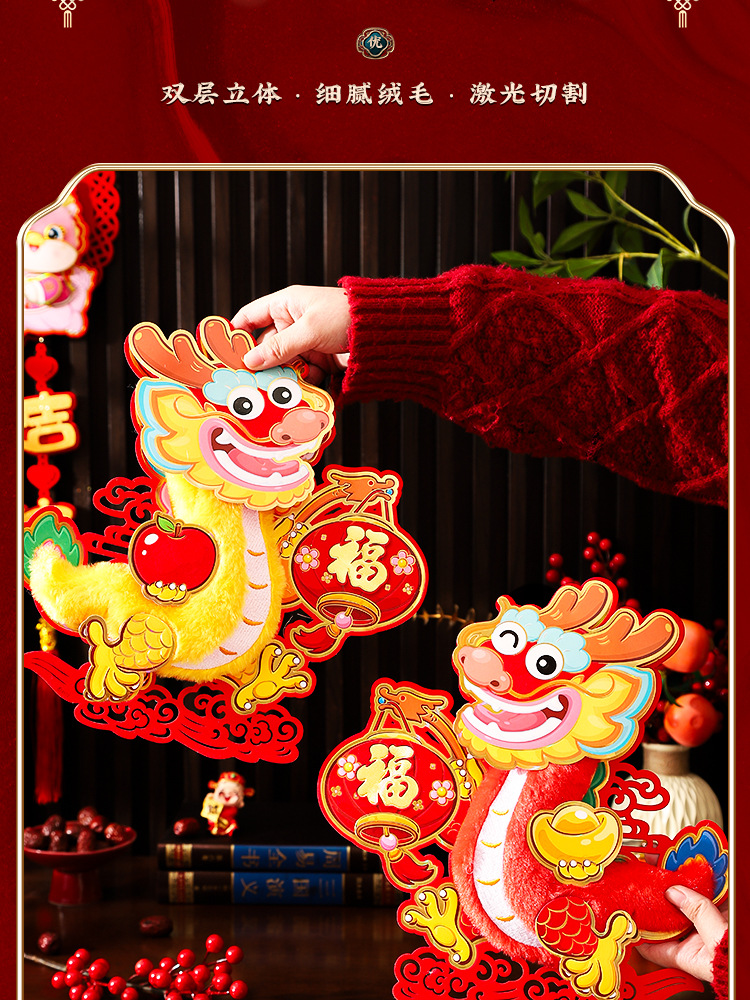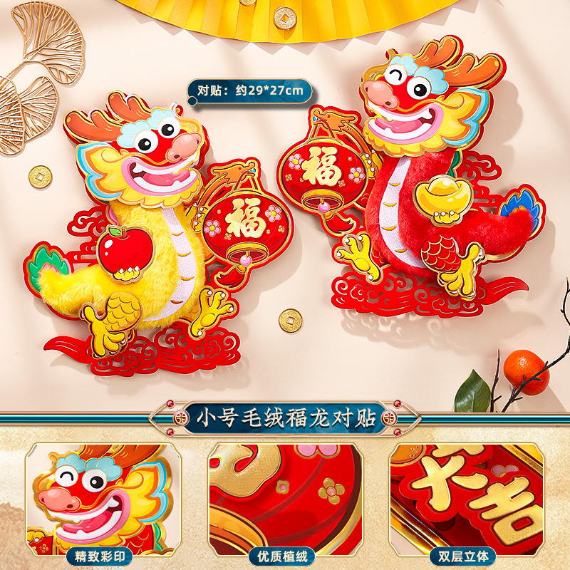 2024龙年福字门贴植绒春节用品过年贴纸新年装饰毛毡年画门神批发