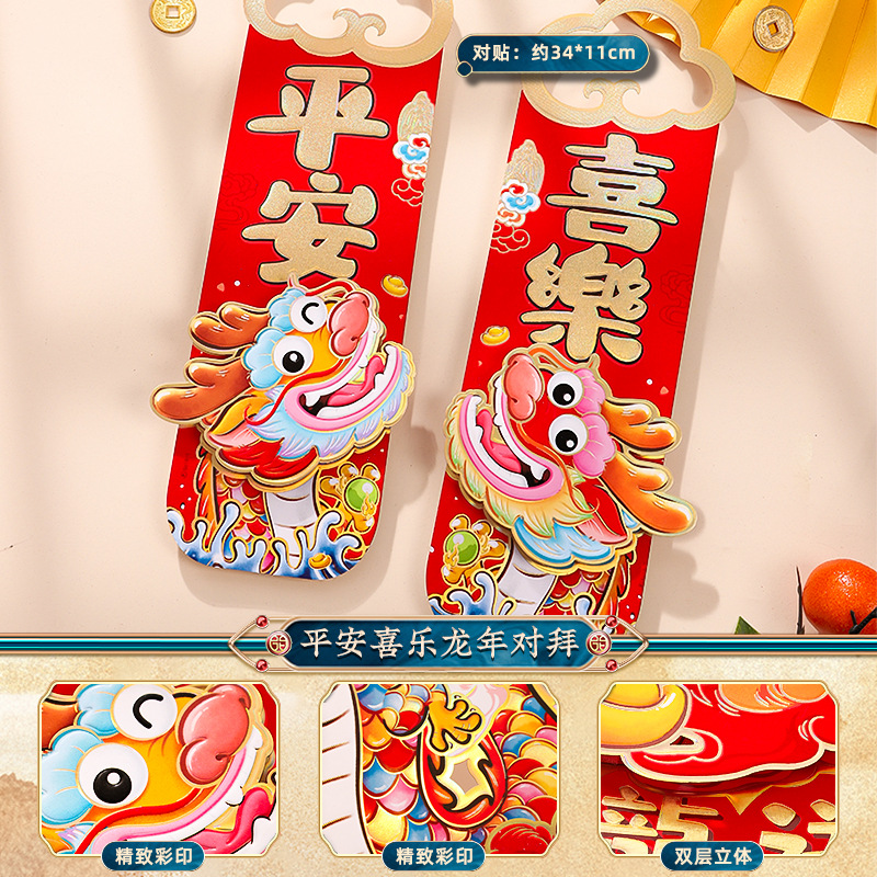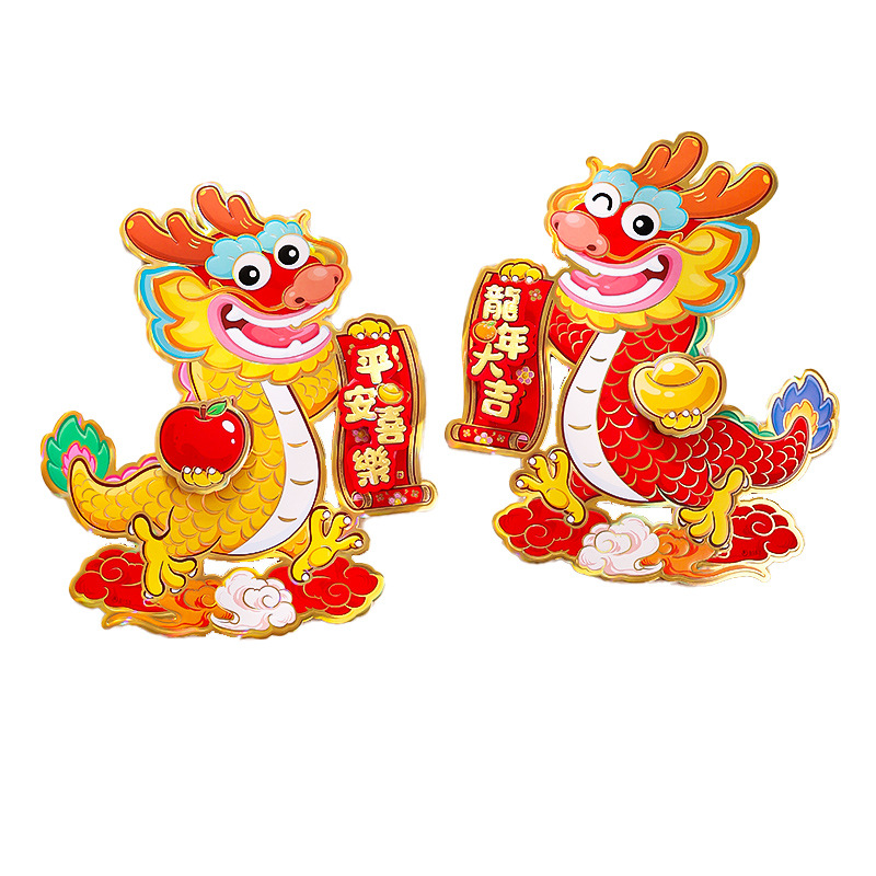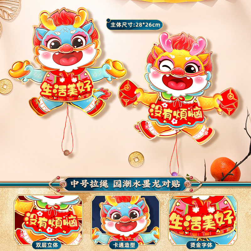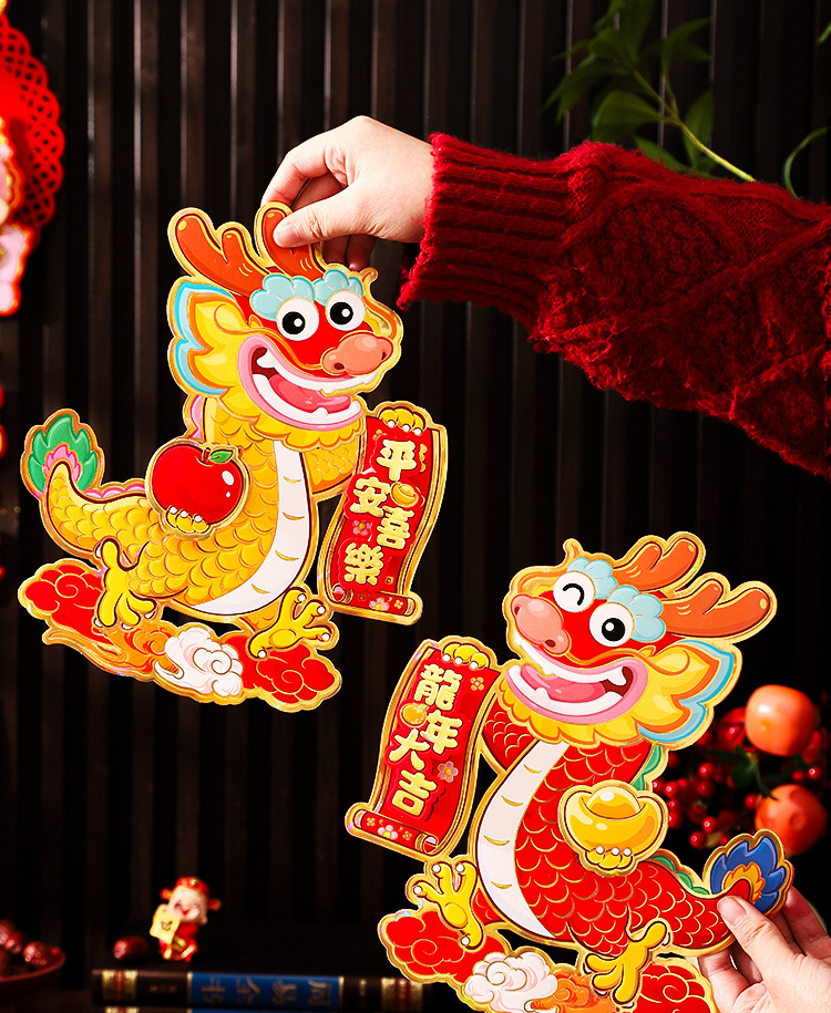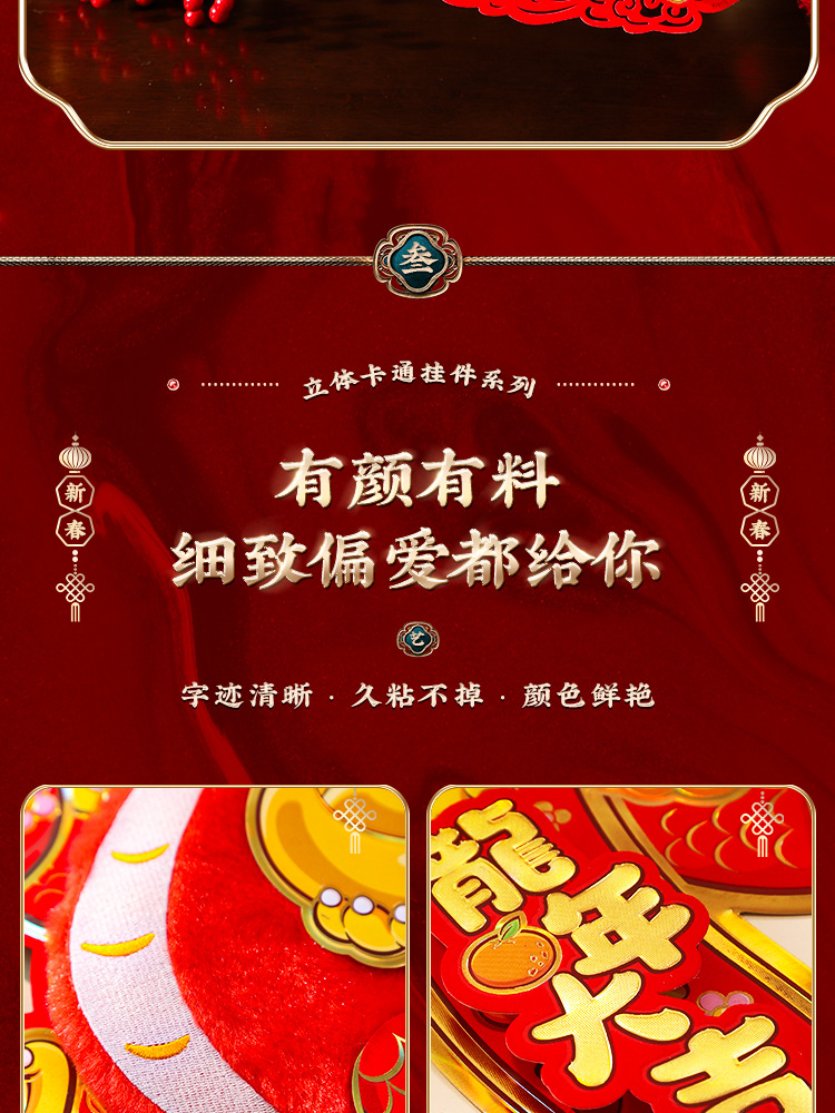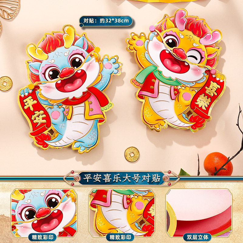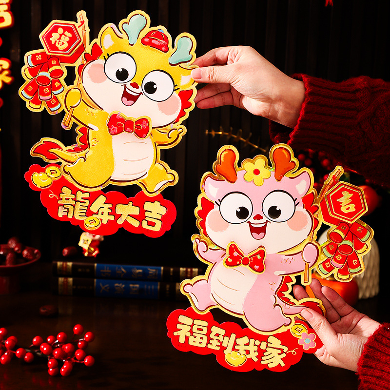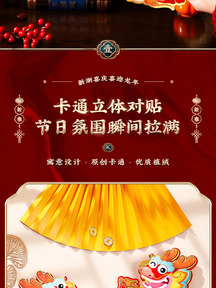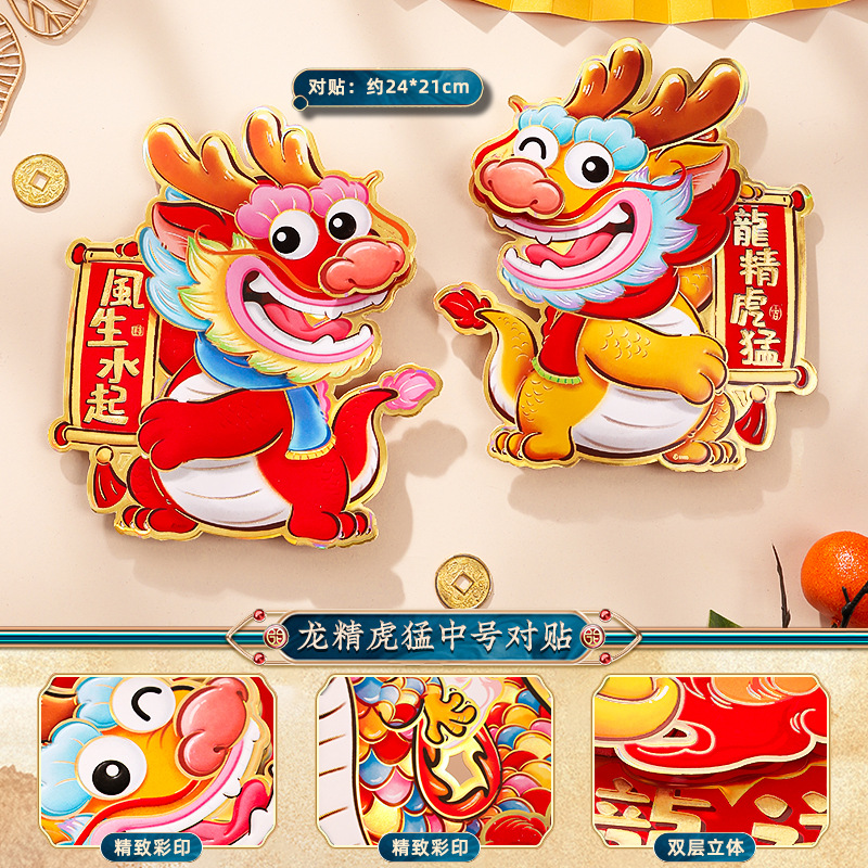 2024龙年福字门贴植绒春节用品过年贴纸新年装饰毛毡年画门神批发