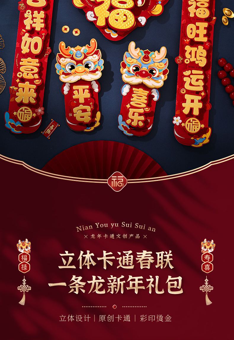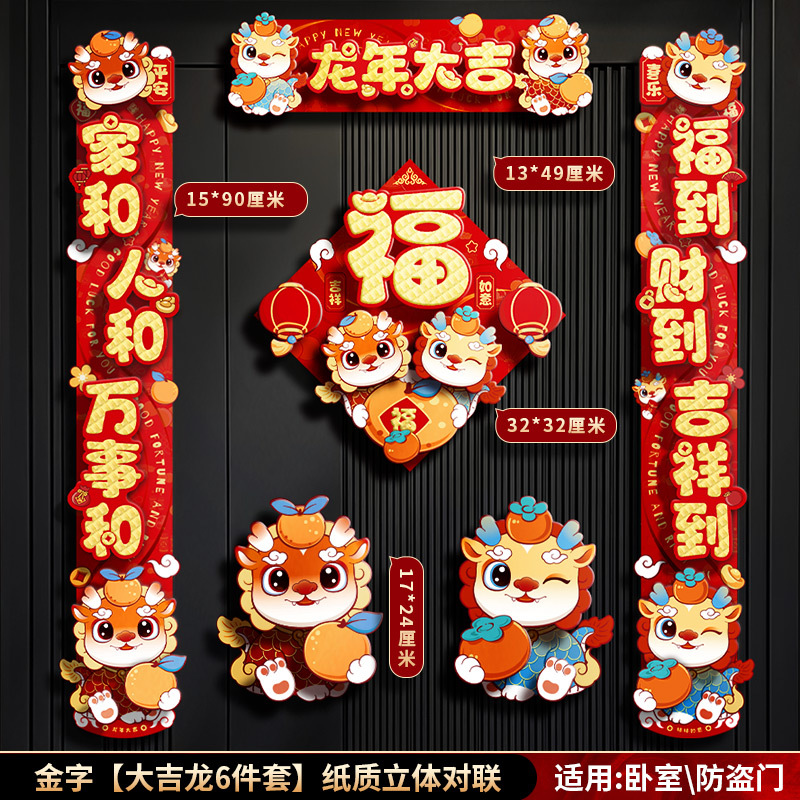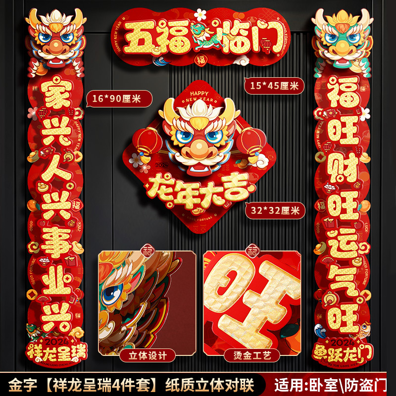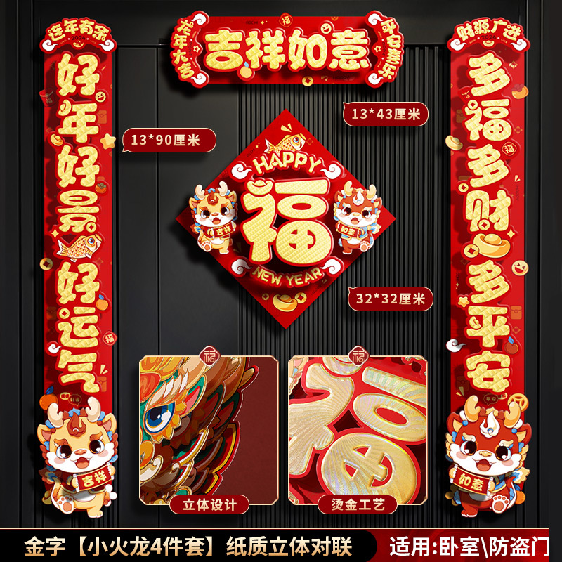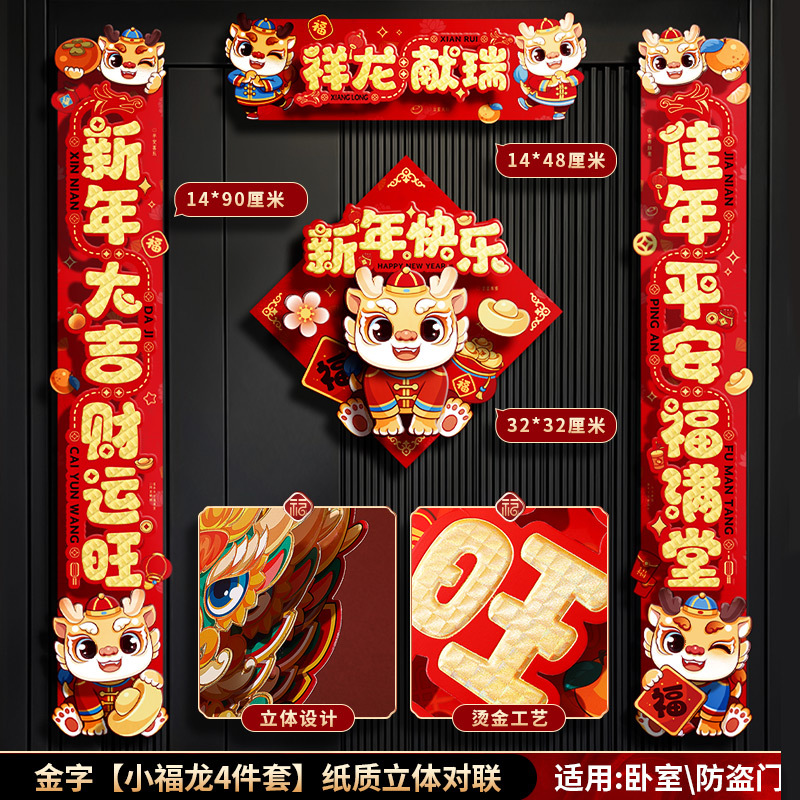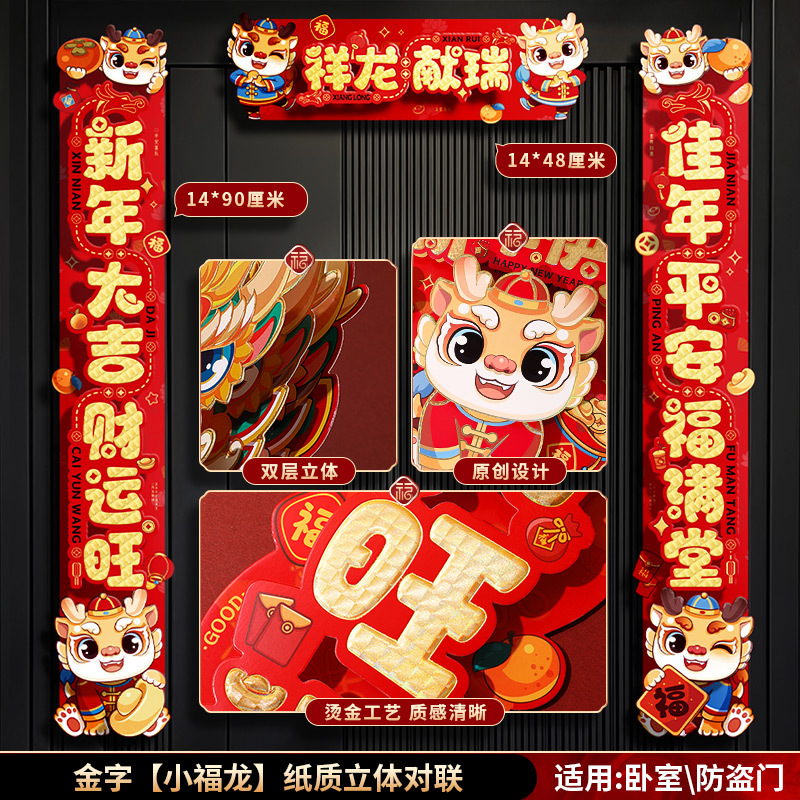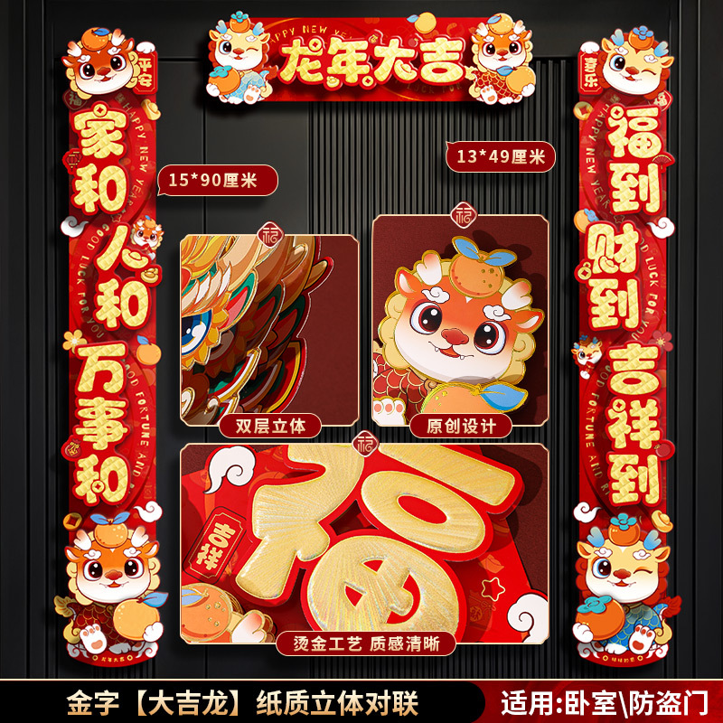 对联春联龙年高级感年货春节用品摆摊新年装饰立体福字贴套装批发