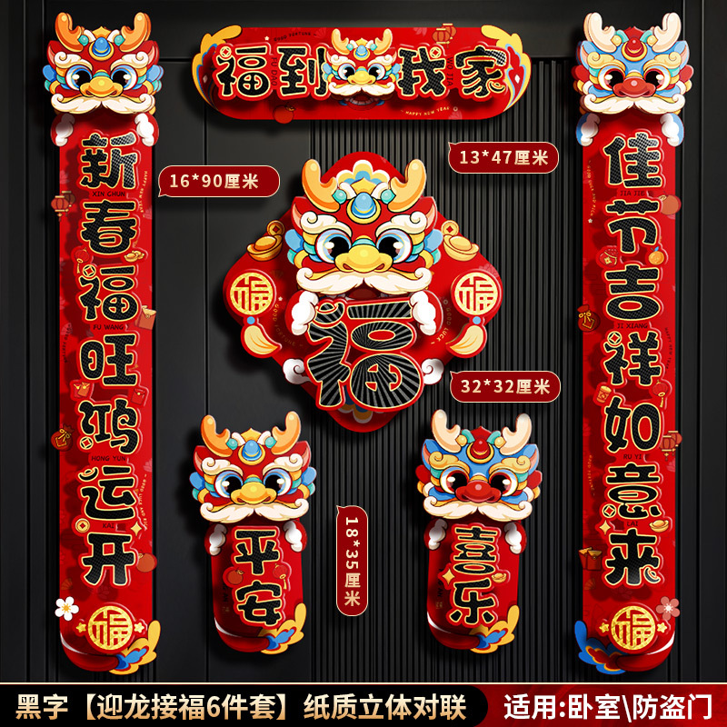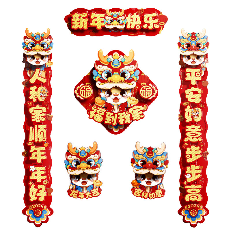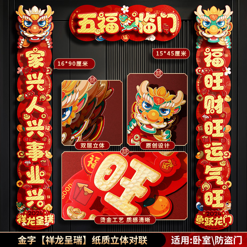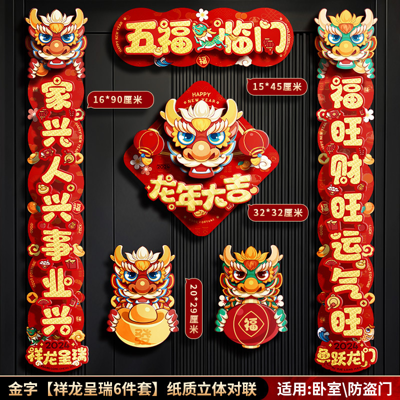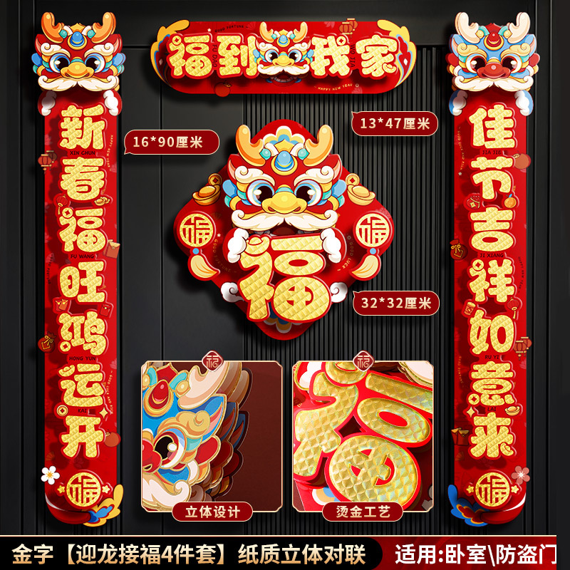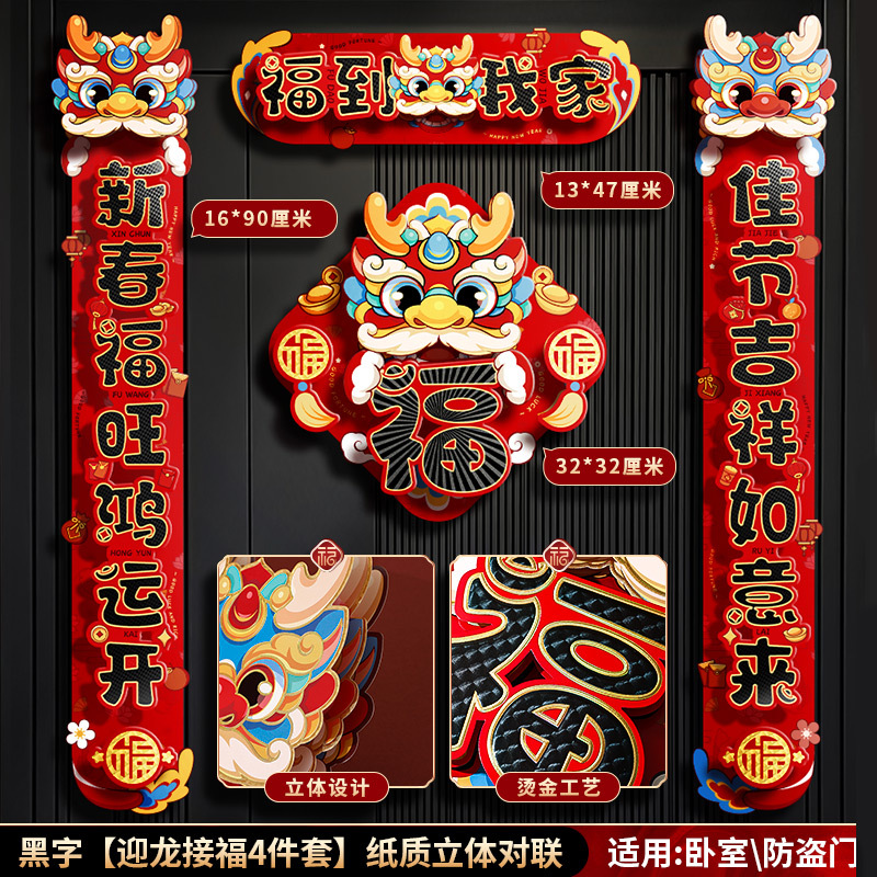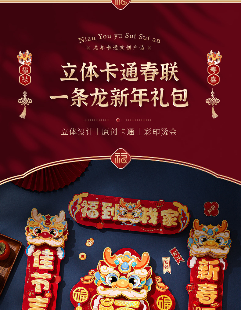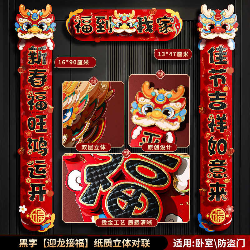 对联春联龙年高级感年货春节用品摆摊新年装饰立体福字贴套装批发