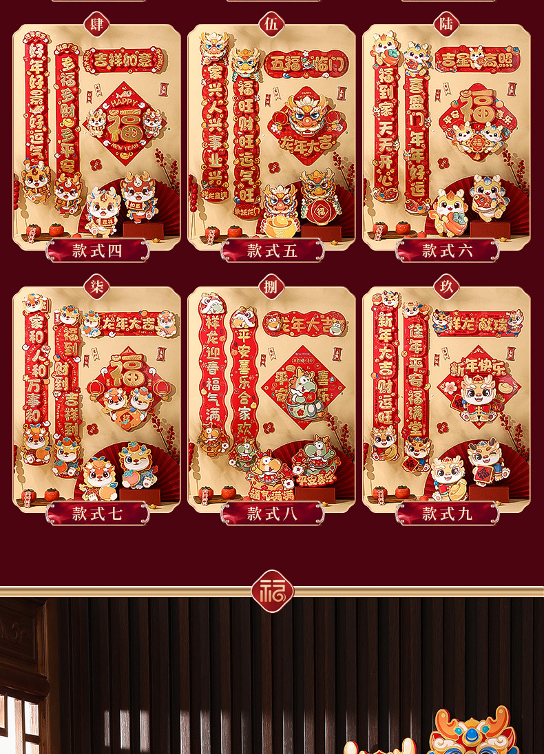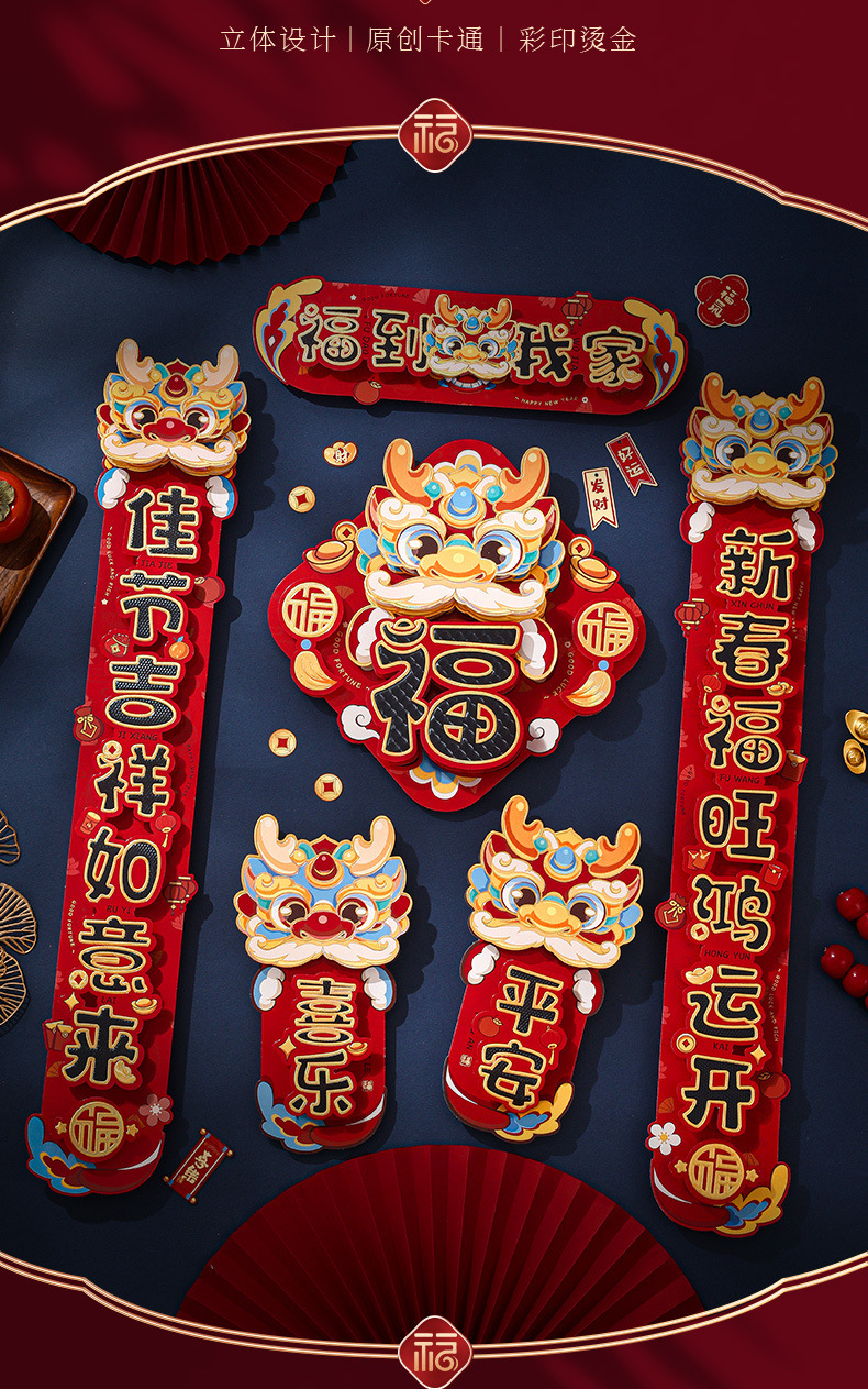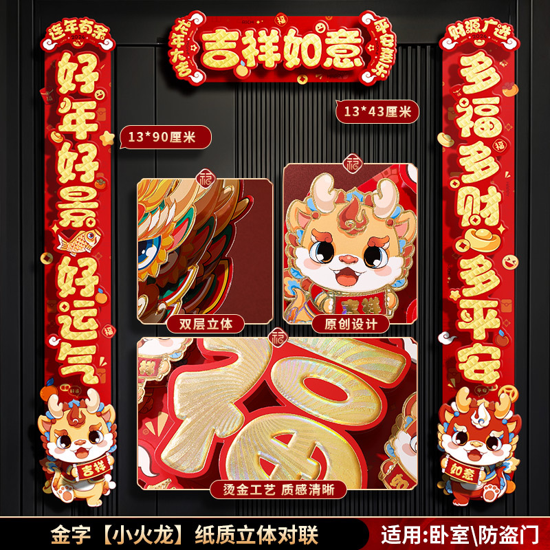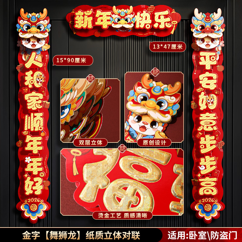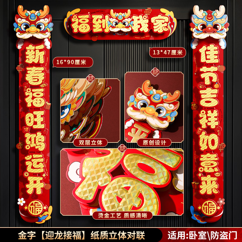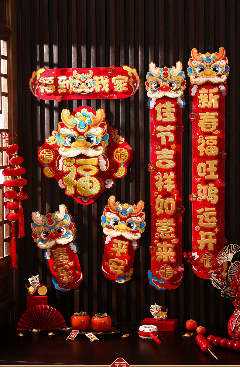 对联春联龙年高级感年货春节用品摆摊新年装饰立体福字贴套装批发