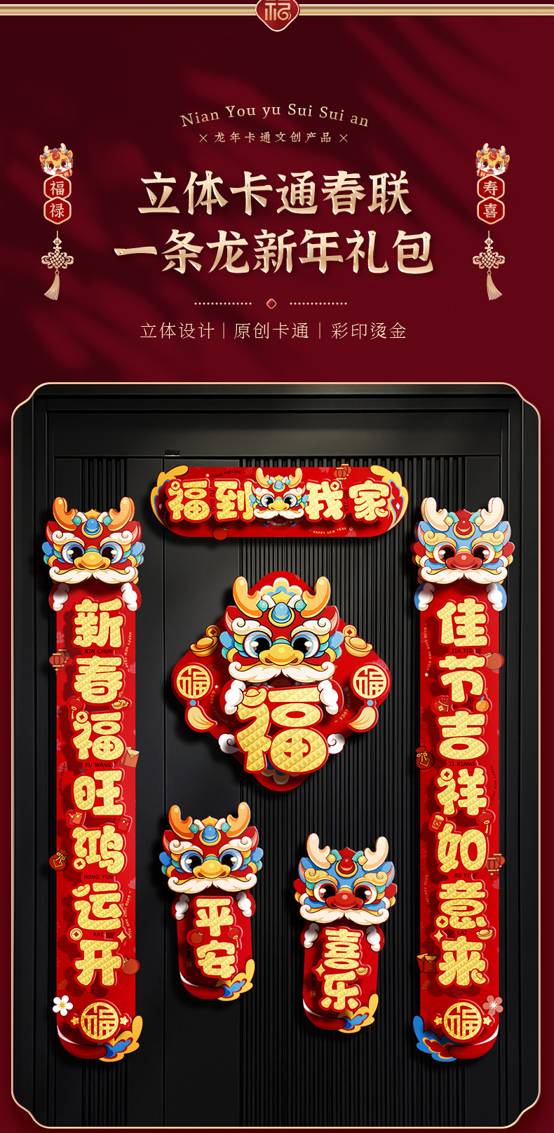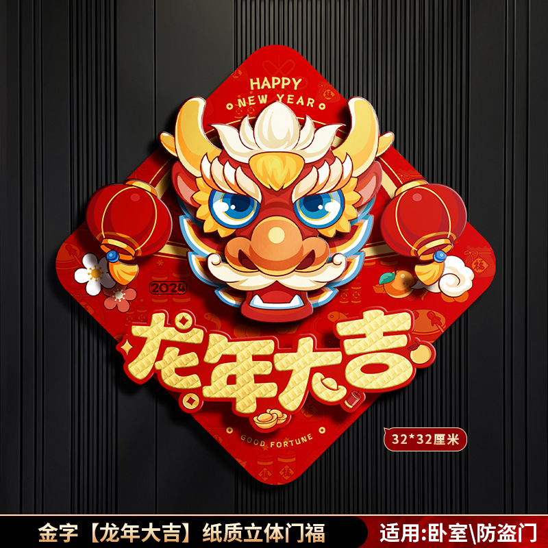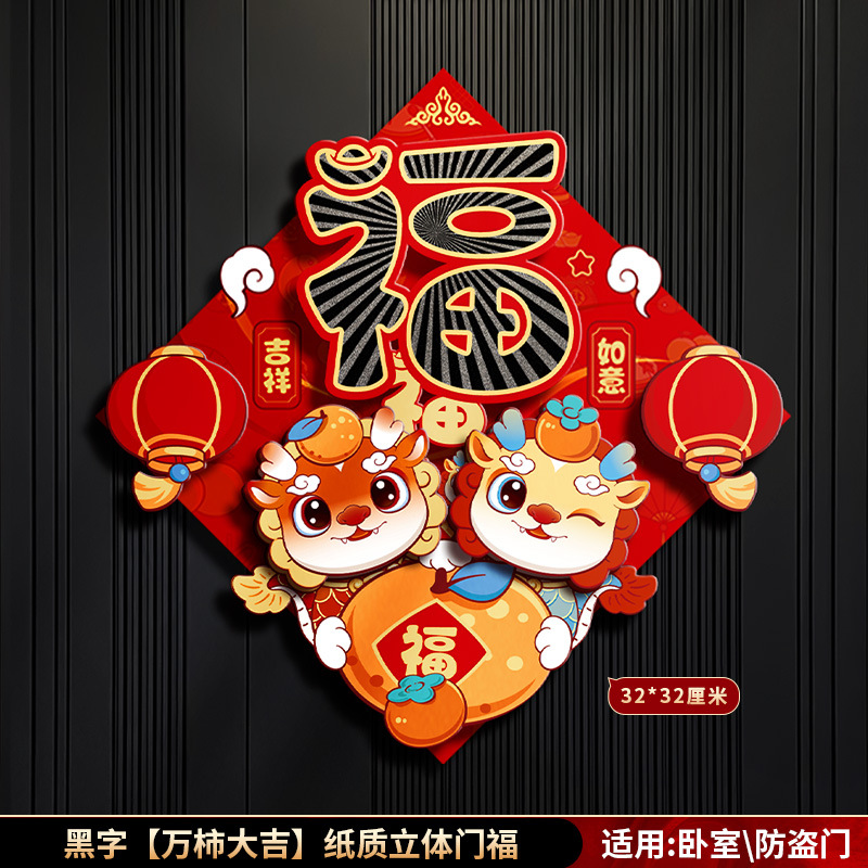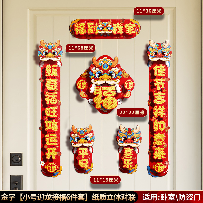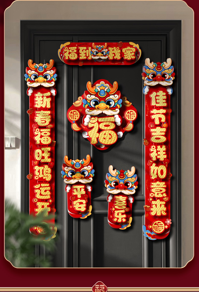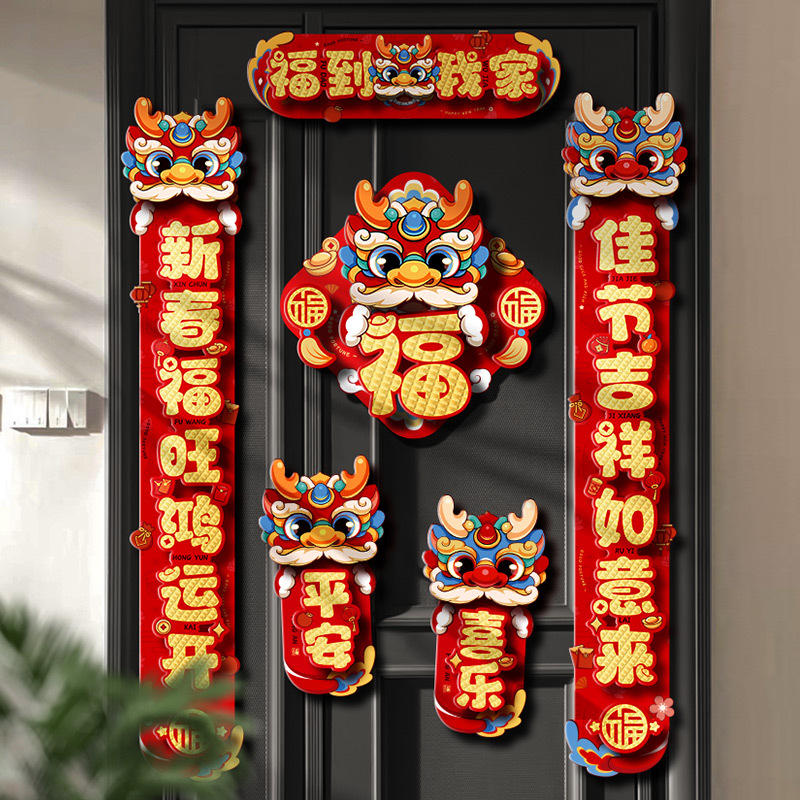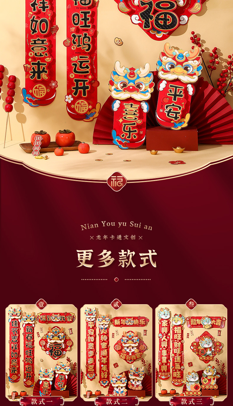 对联春联龙年高级感年货春节用品摆摊新年装饰立体福字贴套装批发