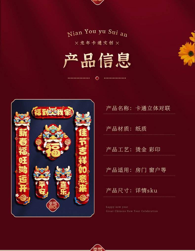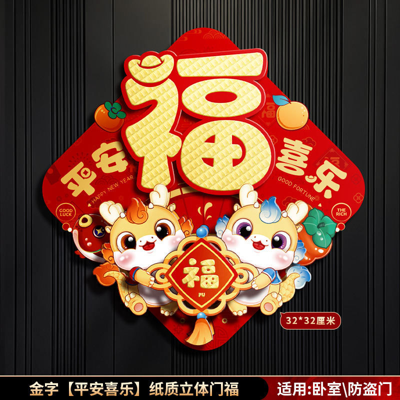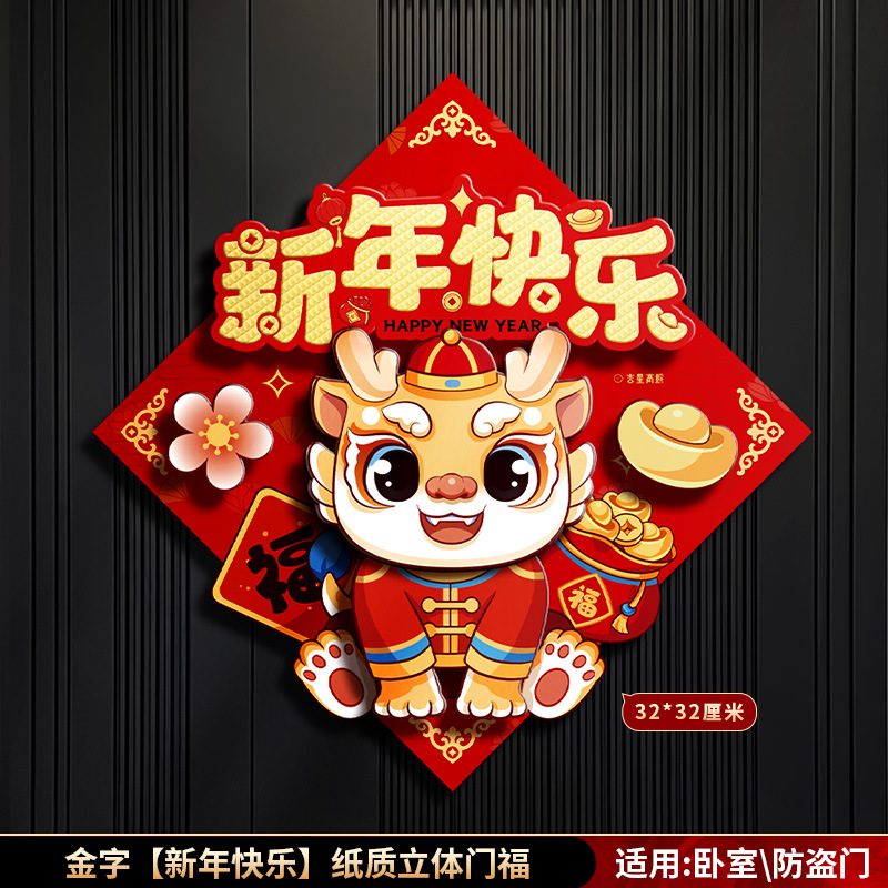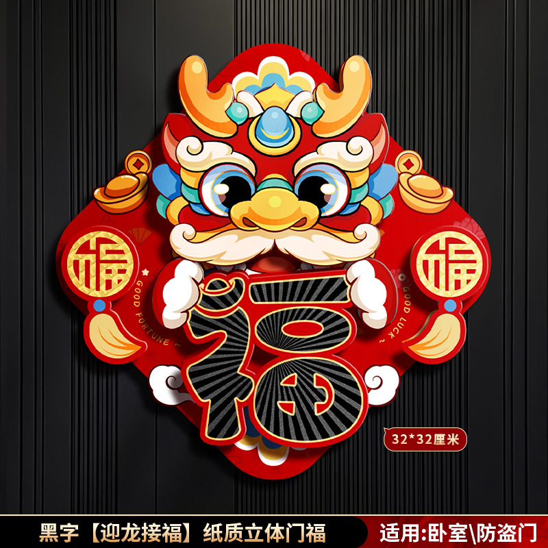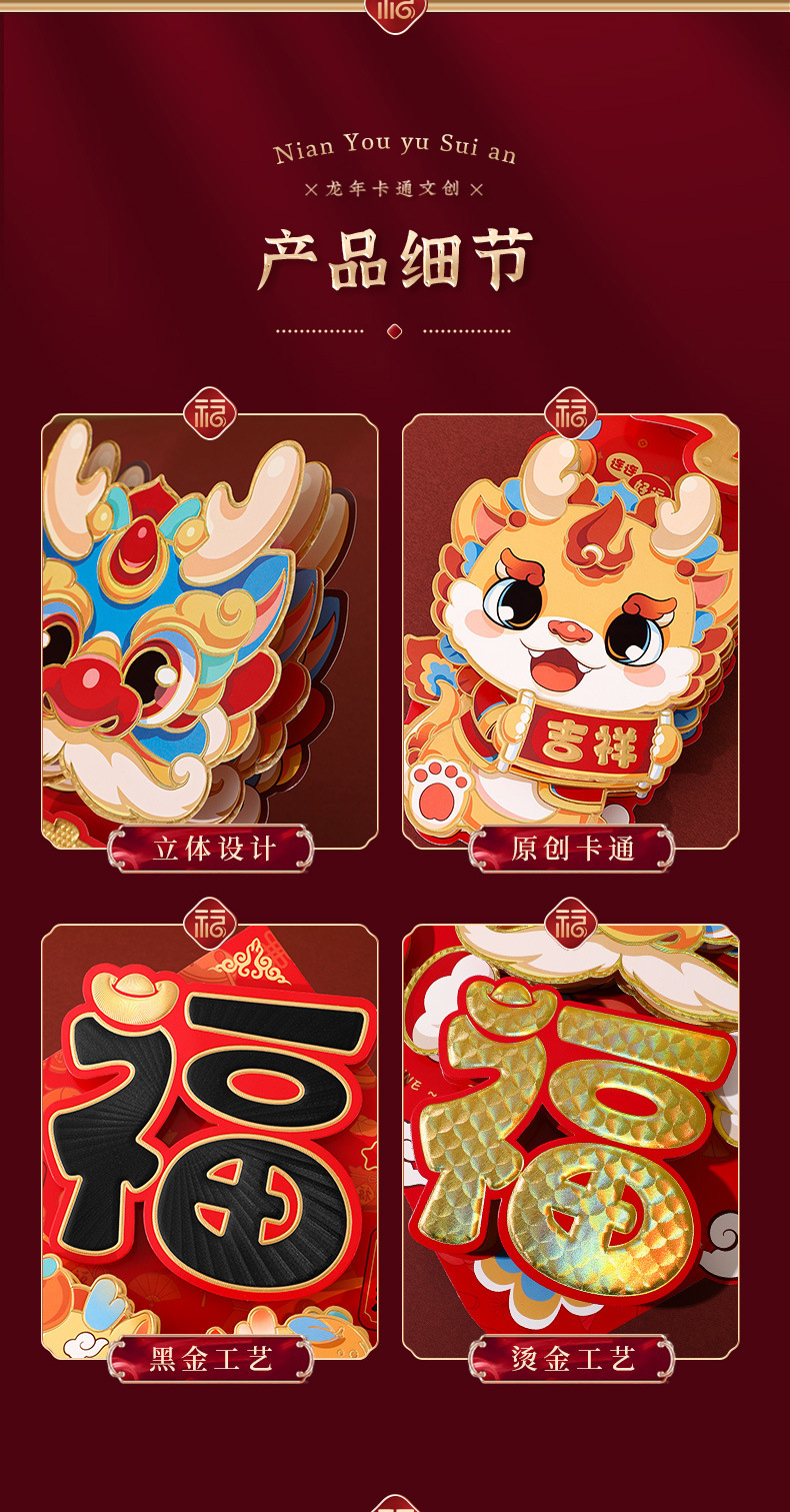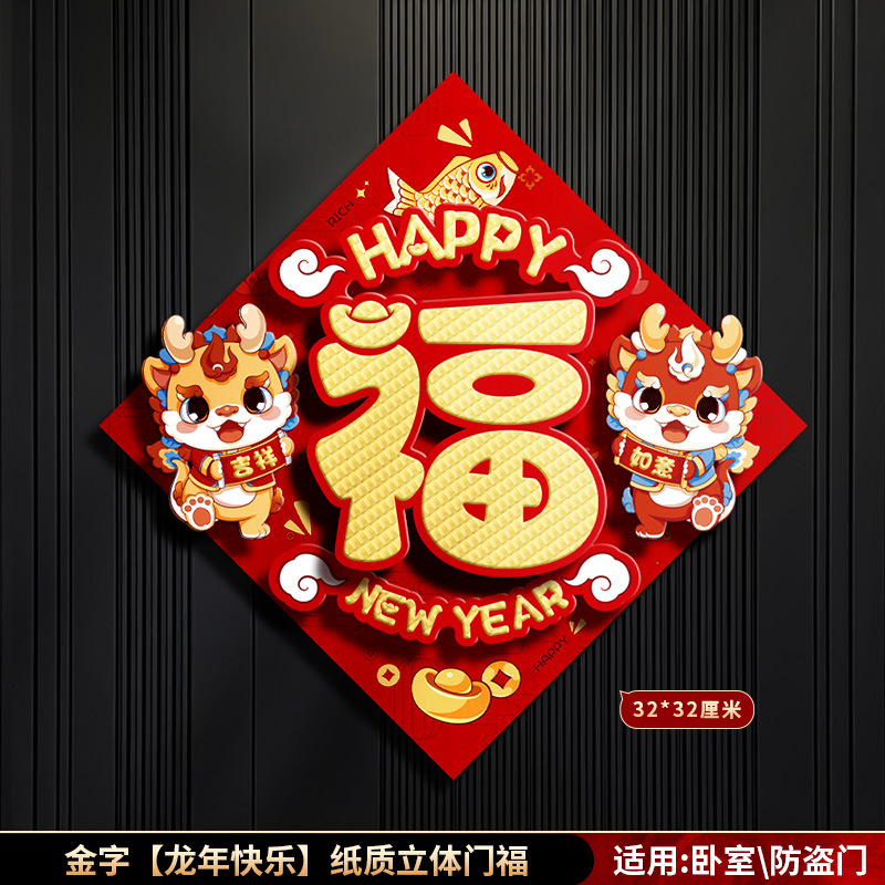 对联春联龙年高级感年货春节用品摆摊新年装饰立体福字贴套装批发