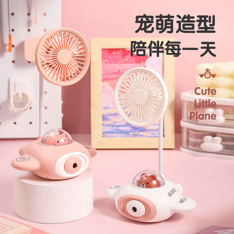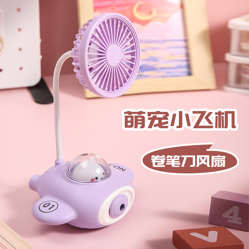 新款卡通飞机USB充电小风扇氛围灯削笔刀小风扇学生户外礼品批发