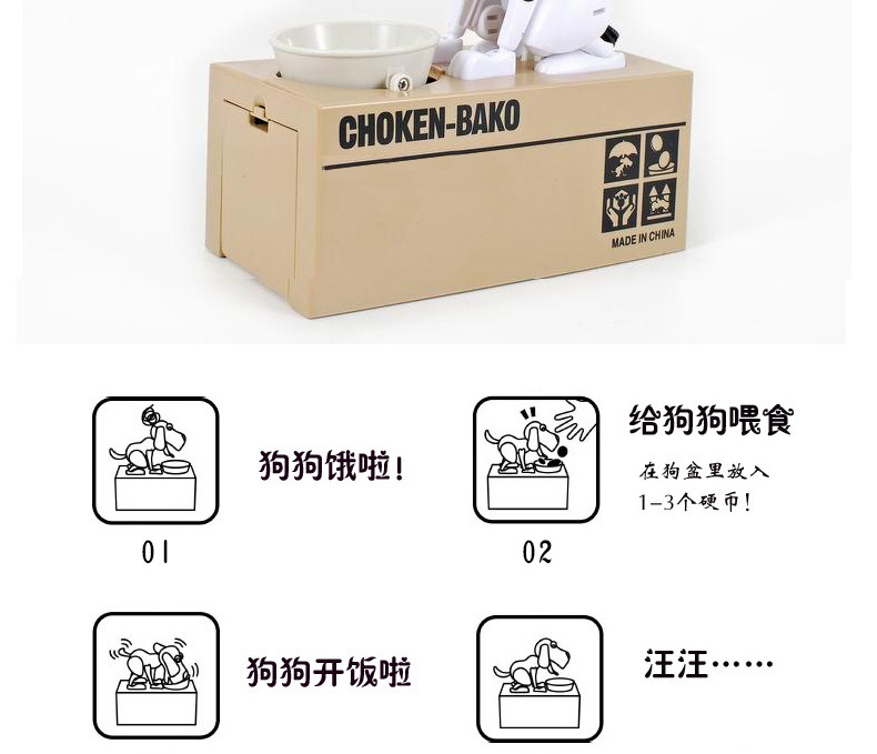 5.装好电池,打开开关后,要放硬币进盘里面,狗狗才会有反应。