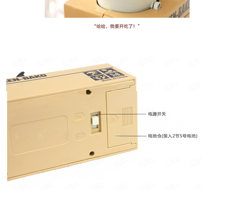 3、好了,装上2节5号电池,打开底部开关,准备足够钱币,来吃~狗