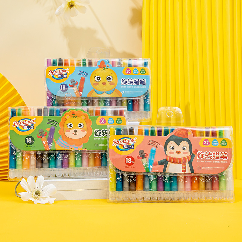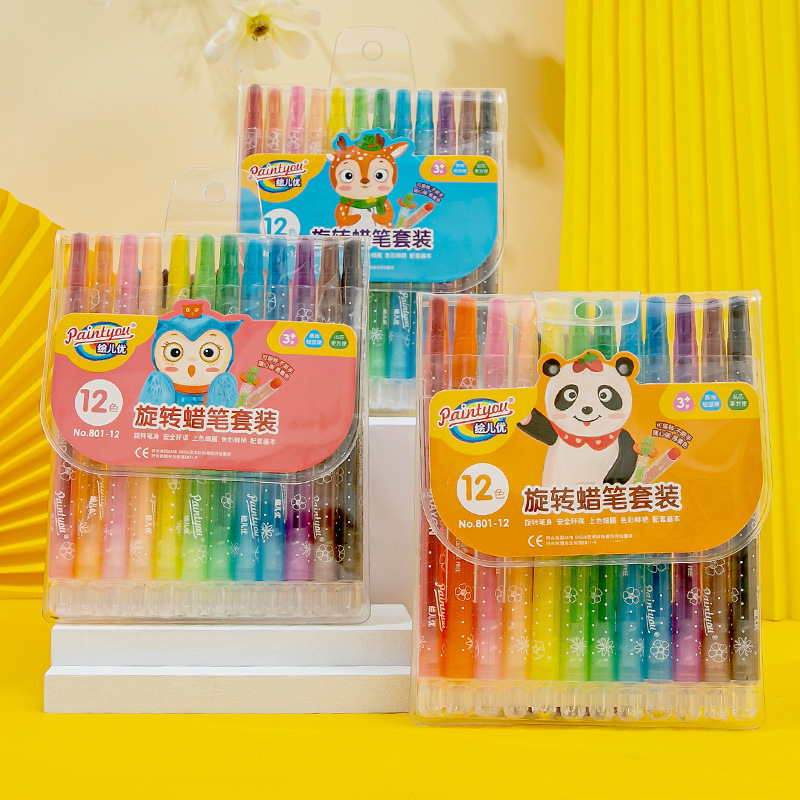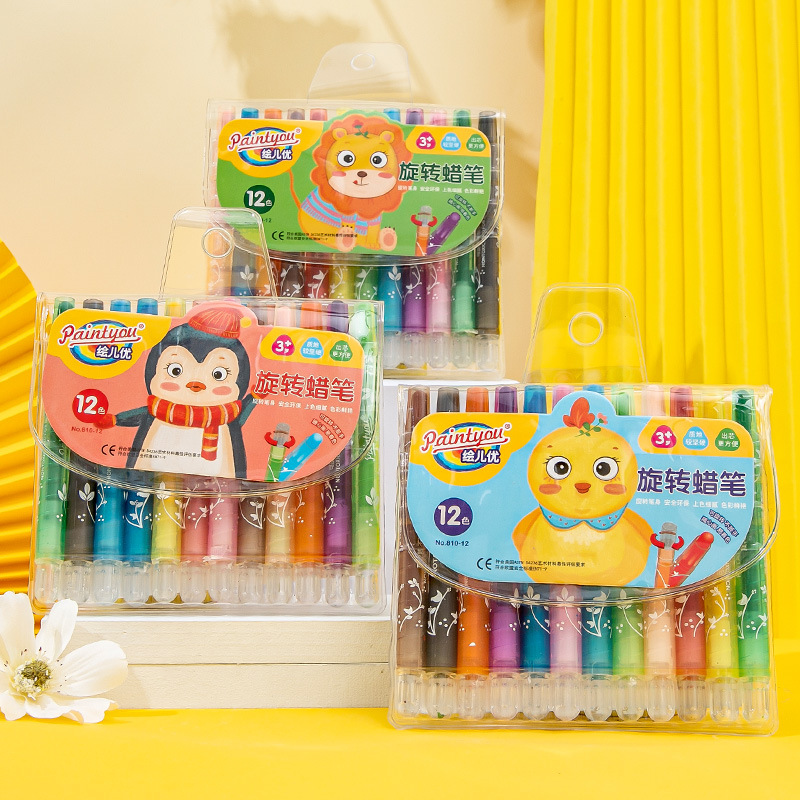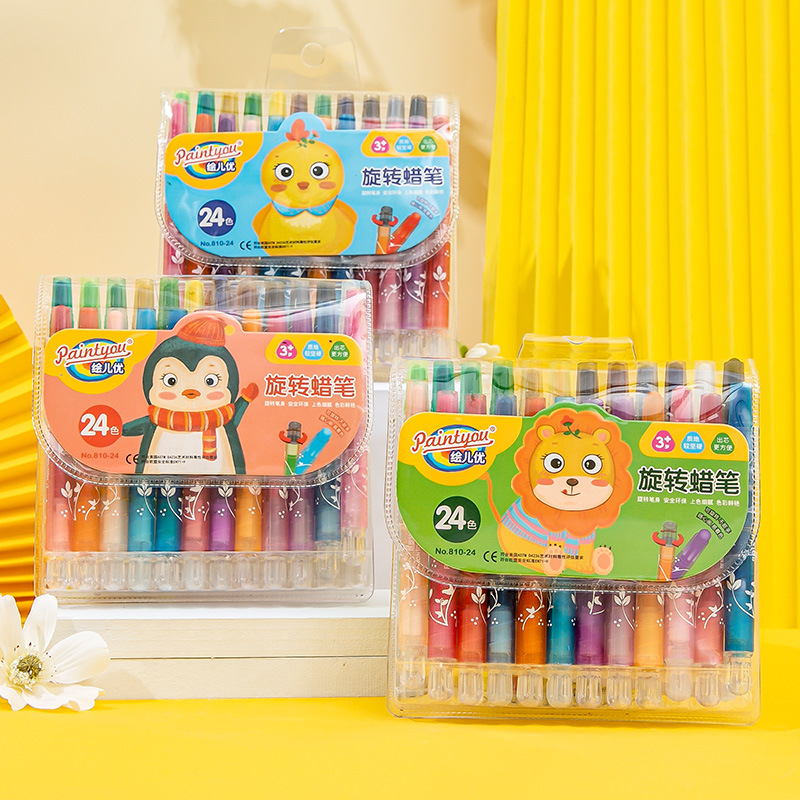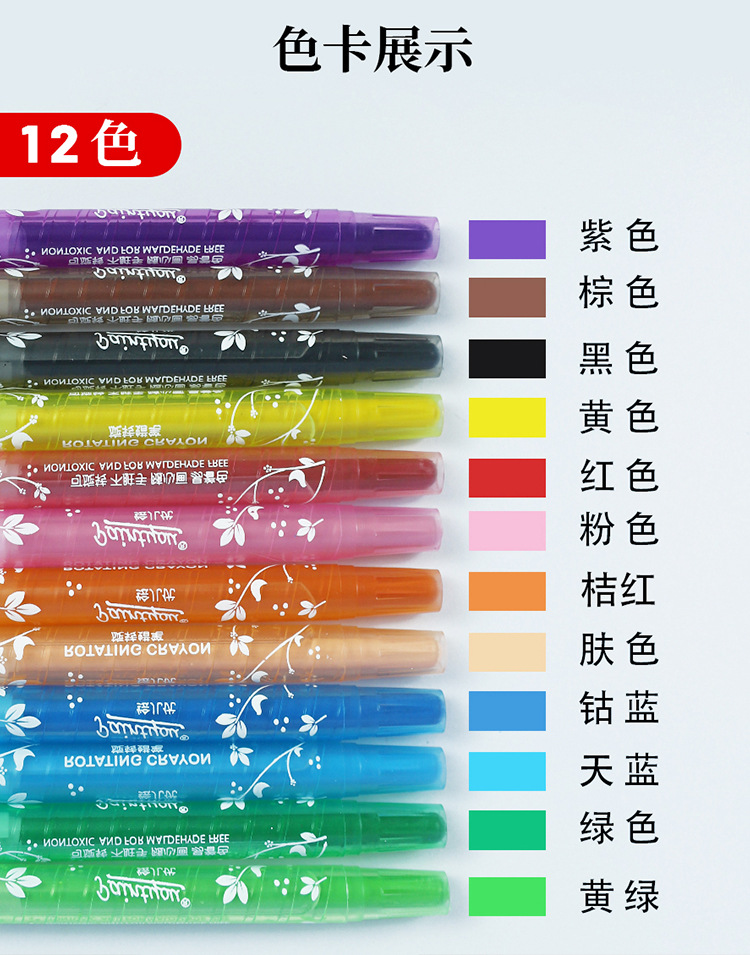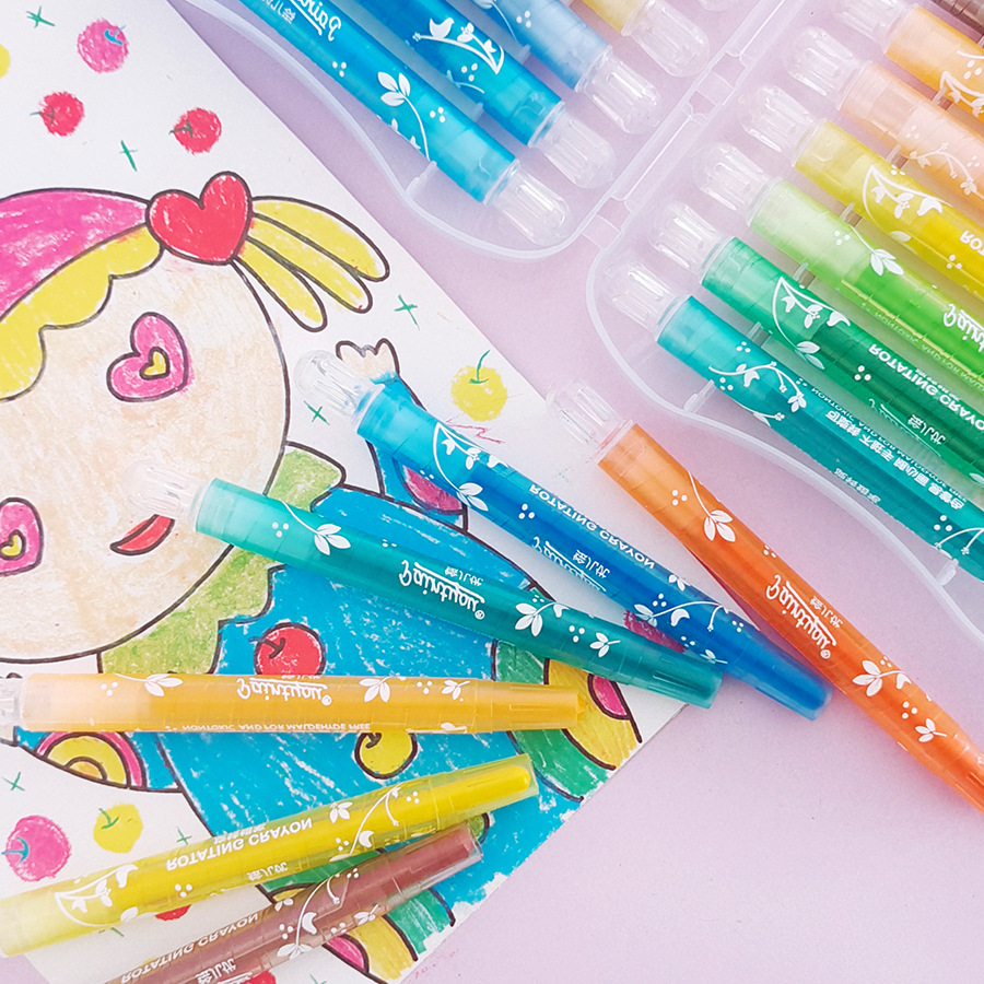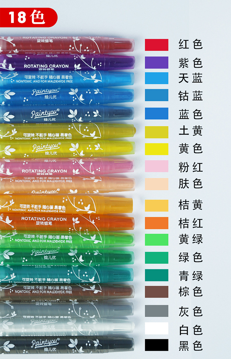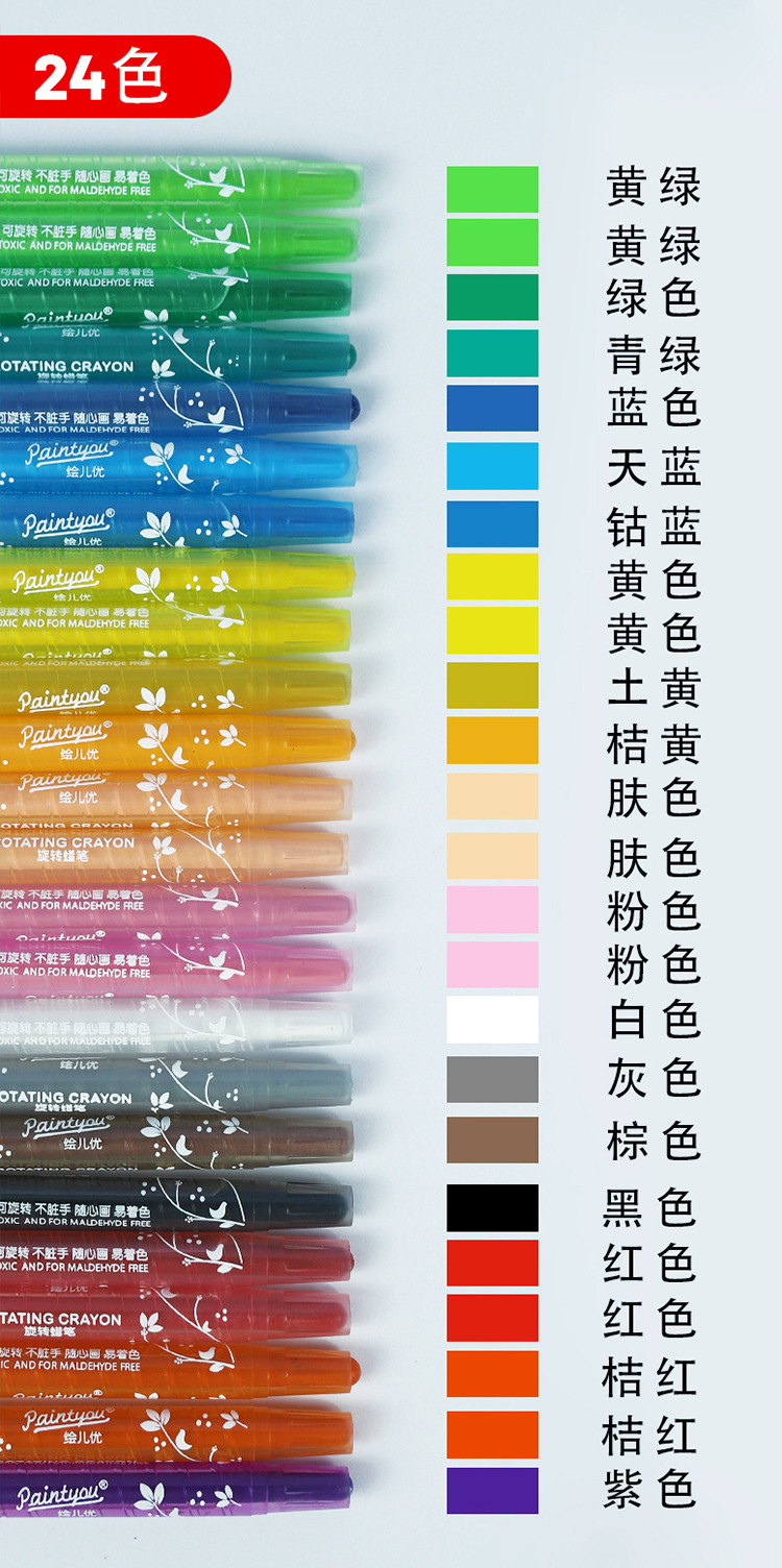 绘儿优旋转蜡笔儿童幼儿园不脏手安全无毒画笔学生油画棒绘画套装