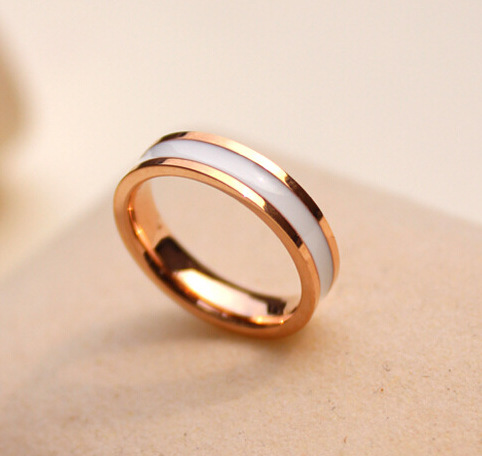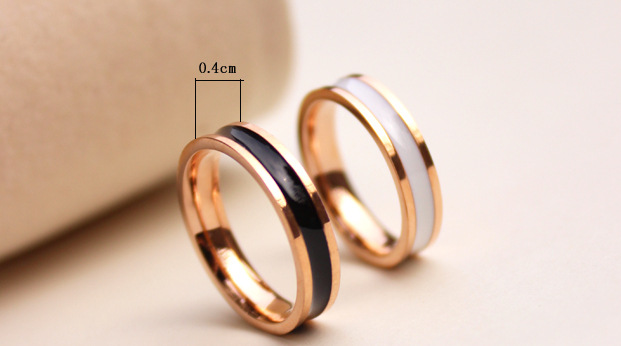 新款钛钢玫瑰金韩版时尚黑白滴胶戒指女食指尾戒钛钢玫瑰金饰品