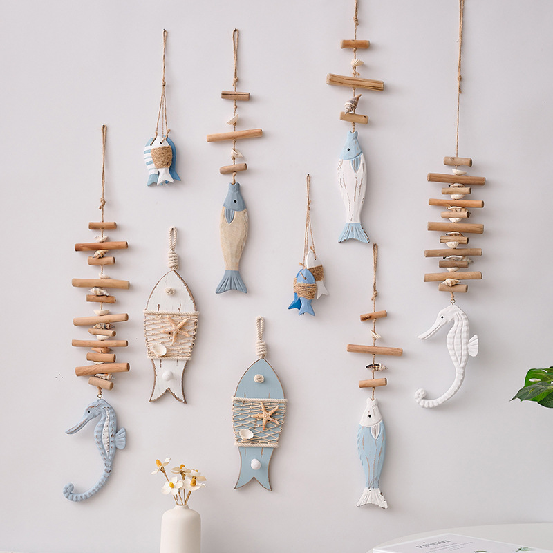 仿古装饰鱼串木质地中海鱼实木鱼雕刻家居鱼雕刻挂件