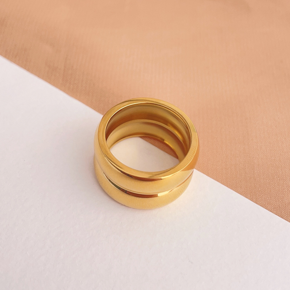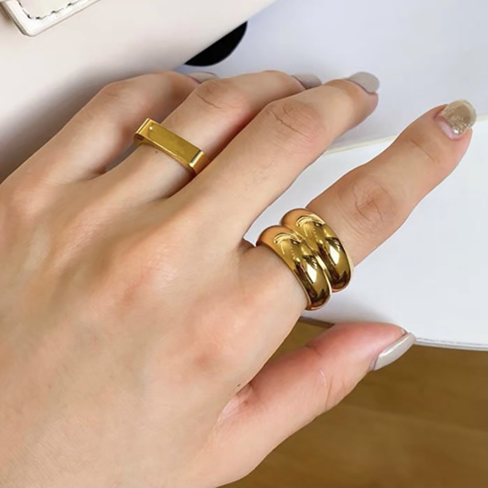 欧美保色钛钢镀18K金色复古简约百搭网红博主戒指女金属指环女
