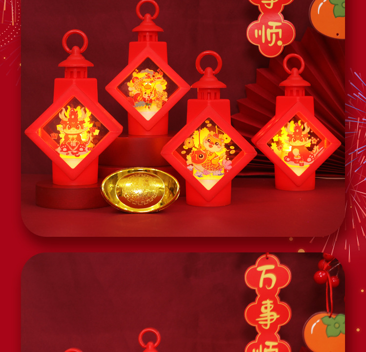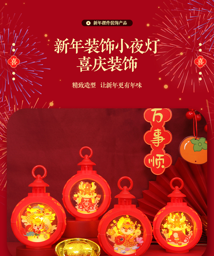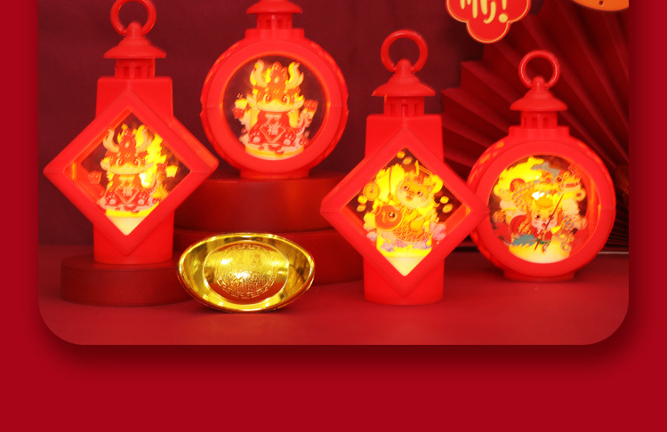 2024龙年风灯元宵节幼儿园儿童装饰小油灯手提发光小灯笼桌面摆件