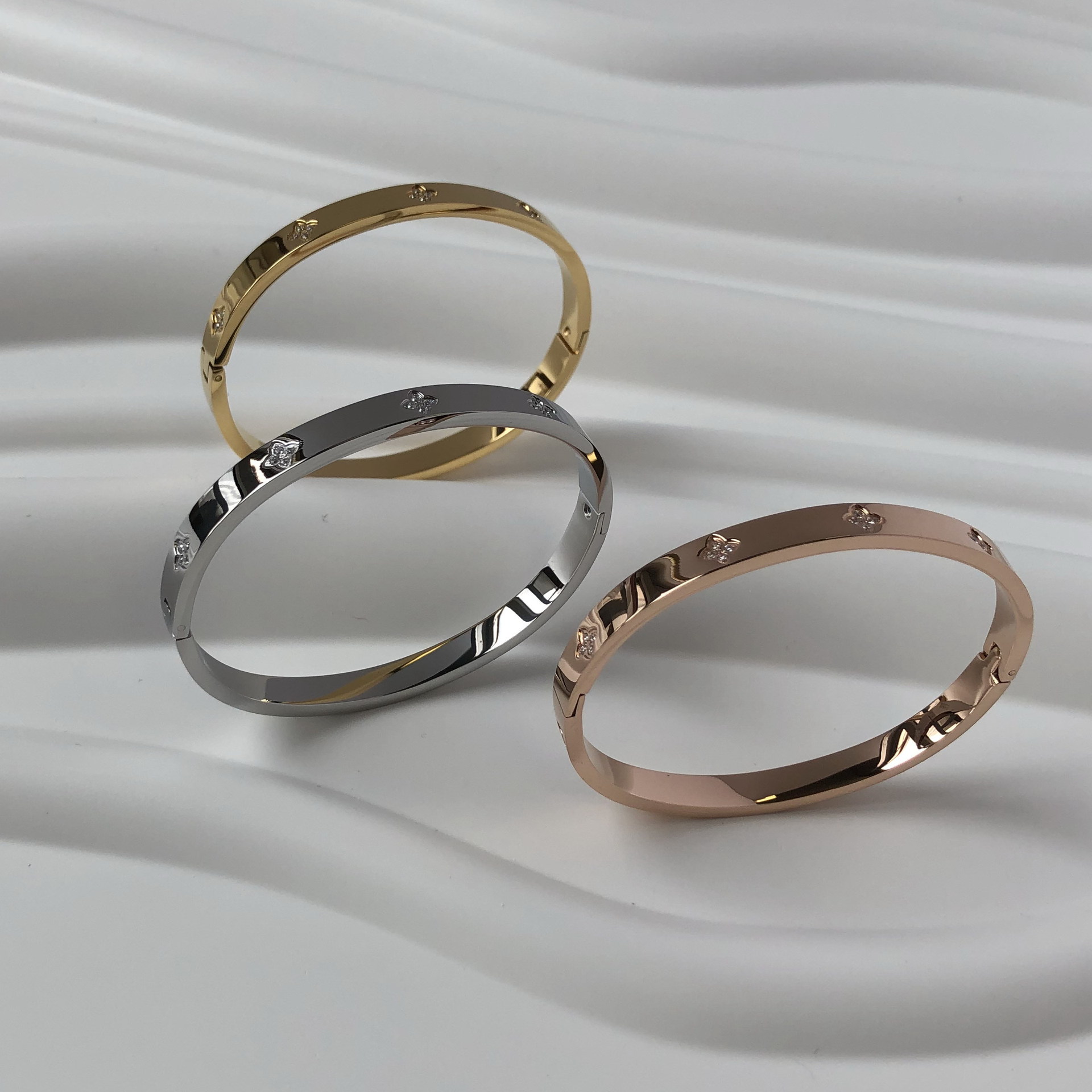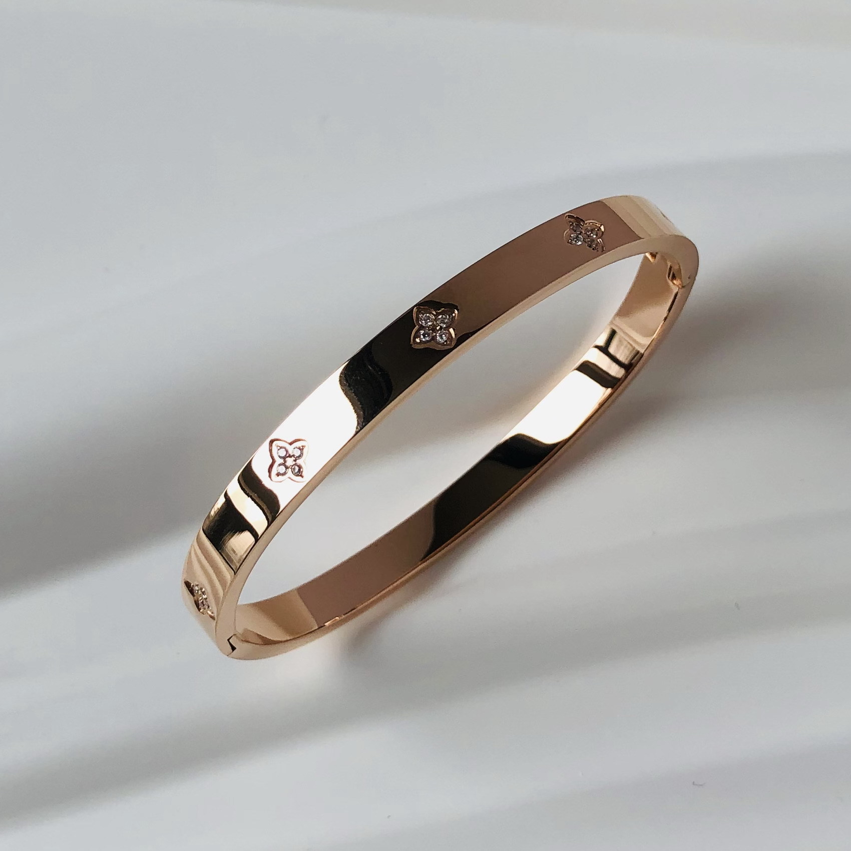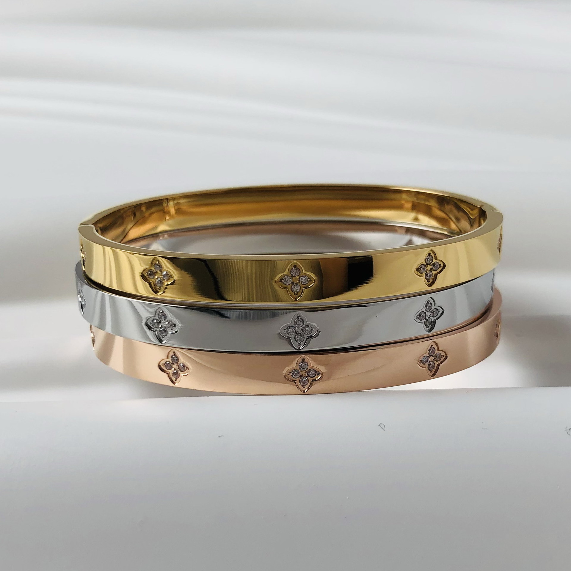 卡家同款钛钢镶锆四叶草十花手镯优雅气质设计感手环