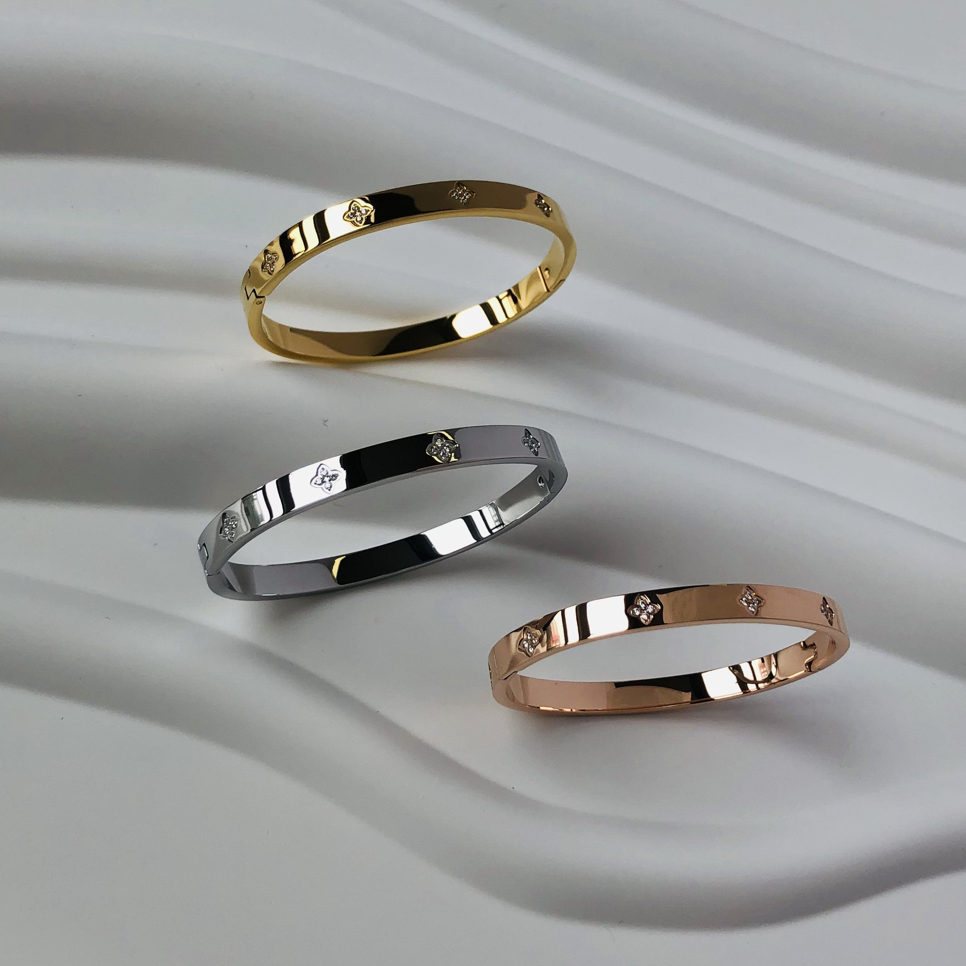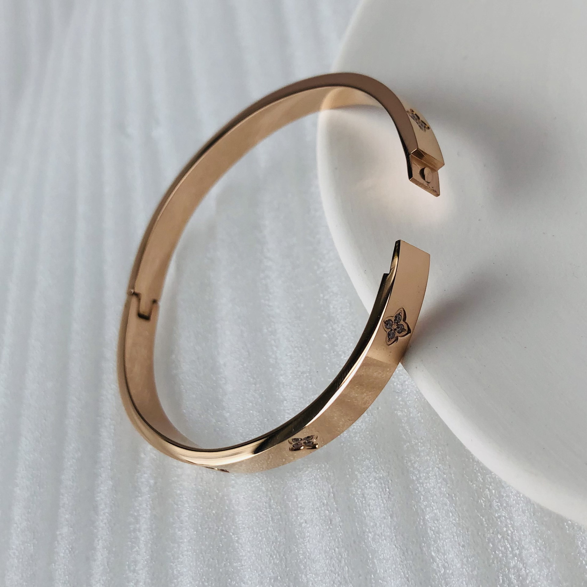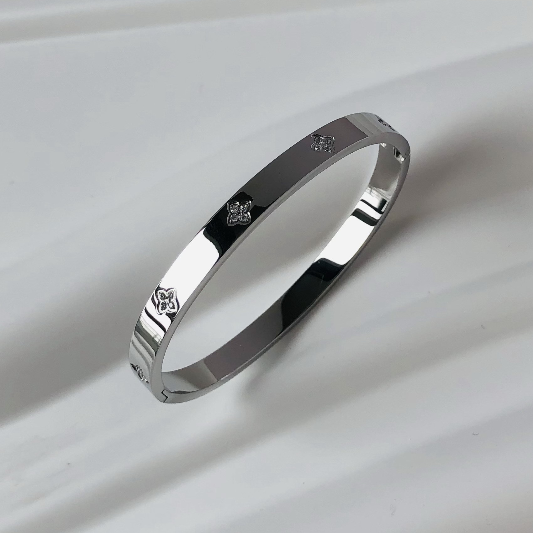 卡家同款钛钢镶锆四叶草十花手镯优雅气质设计感手环