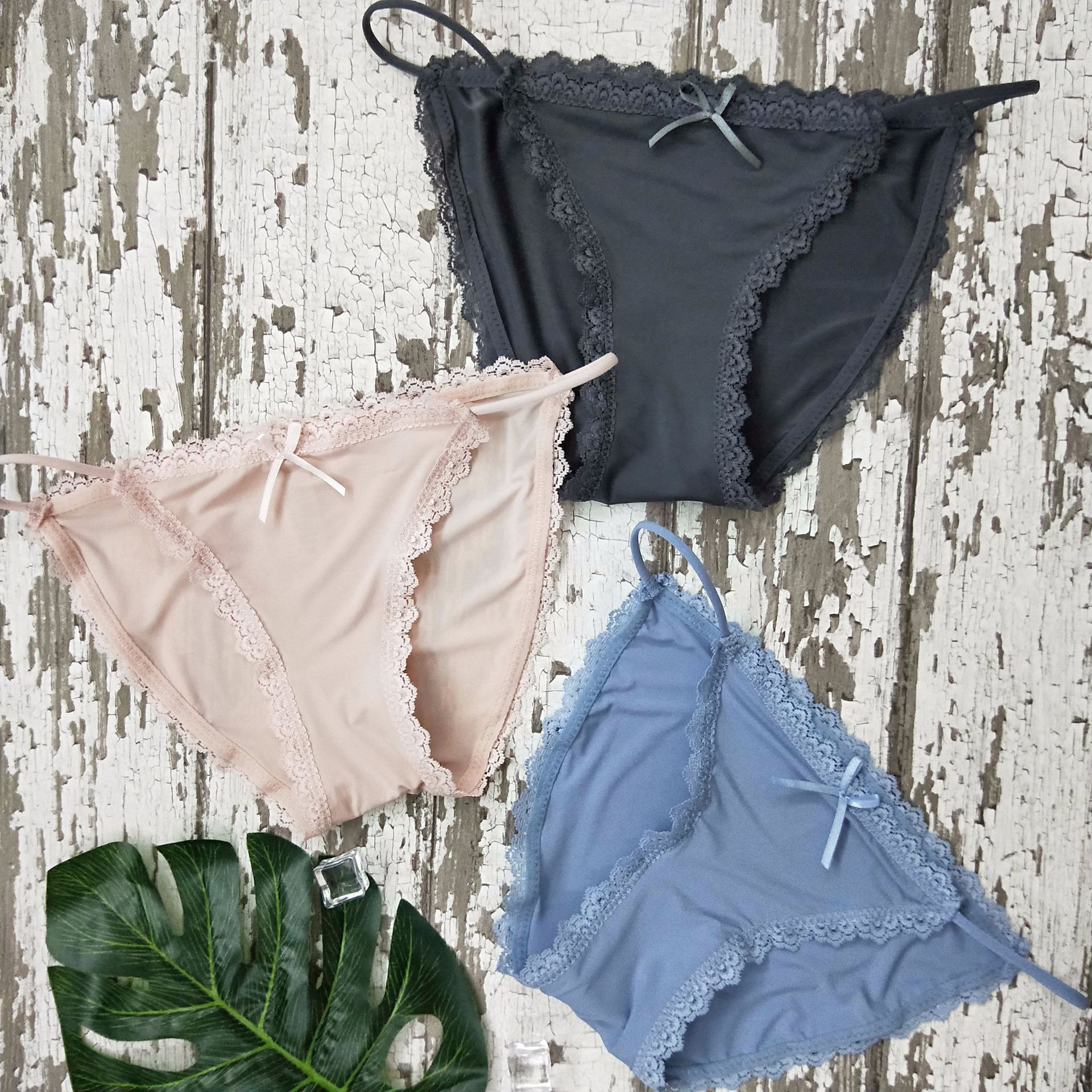 新款比基尼女士内裤速干细带内裤冰丝无痕蕾丝简约舒适一件代发
