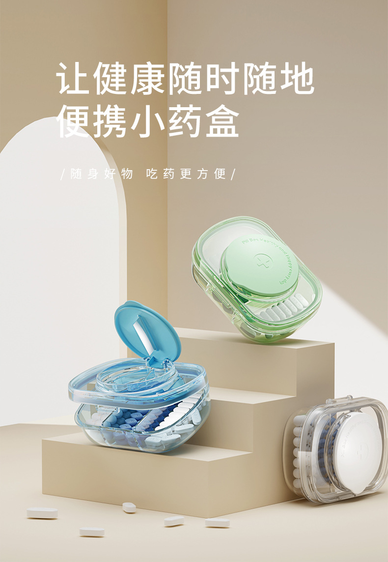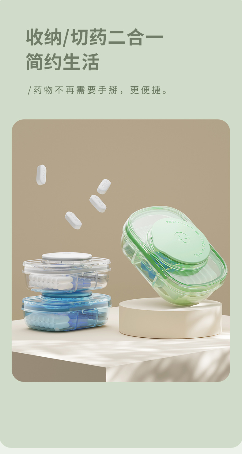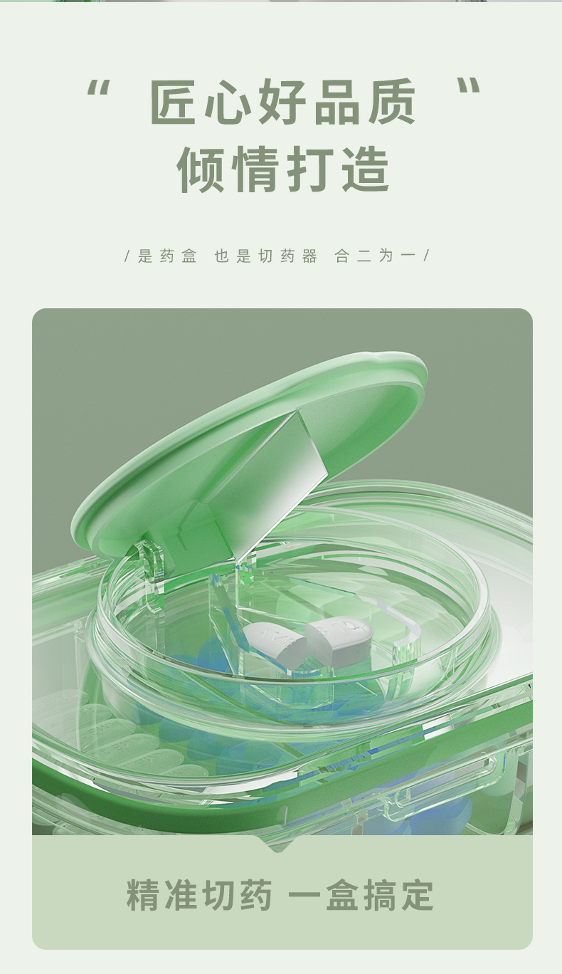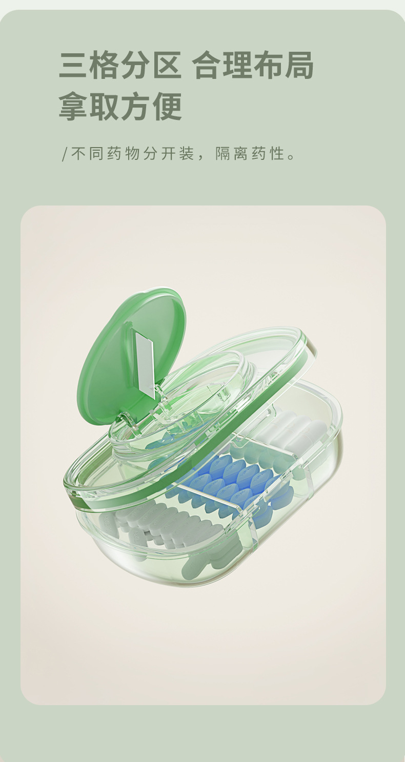 便携式药盒药丸分药切药器分装密封药丸盒大容量分格药品收纳盒