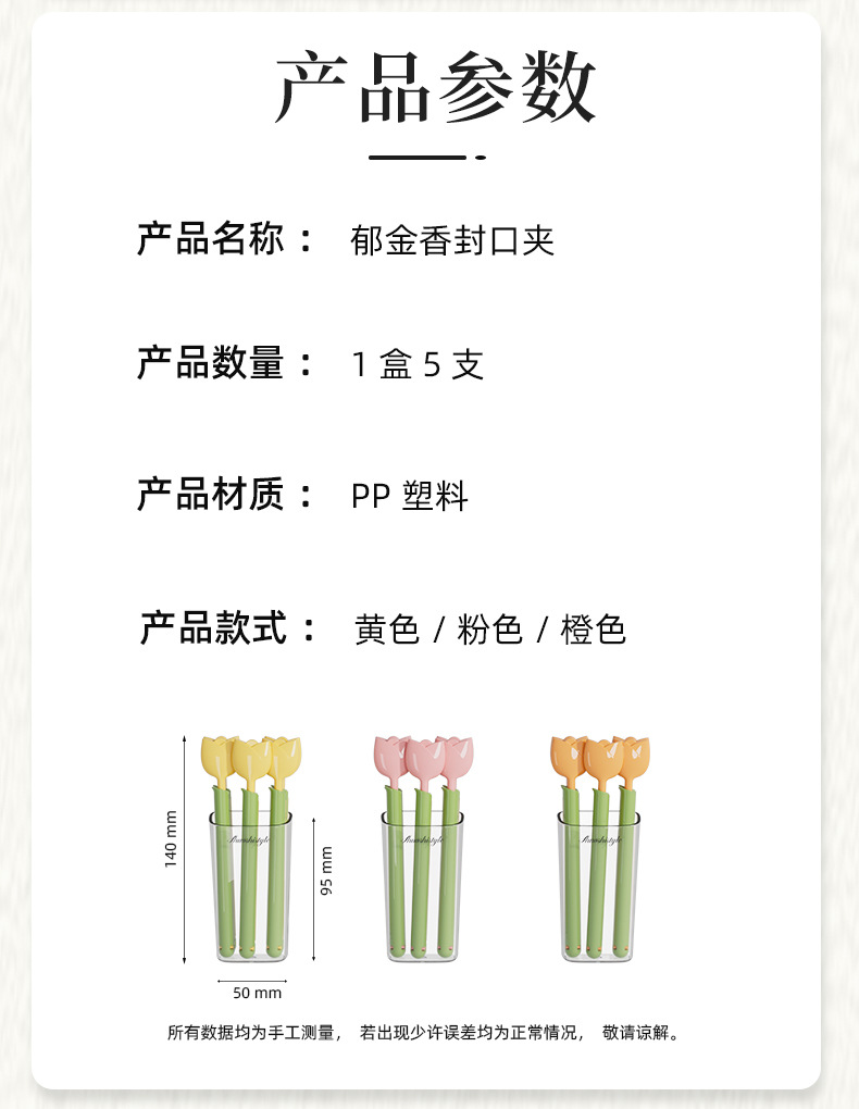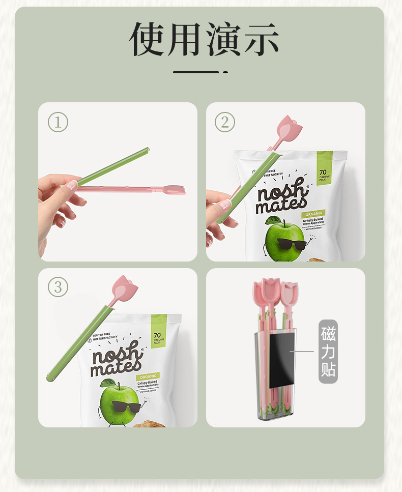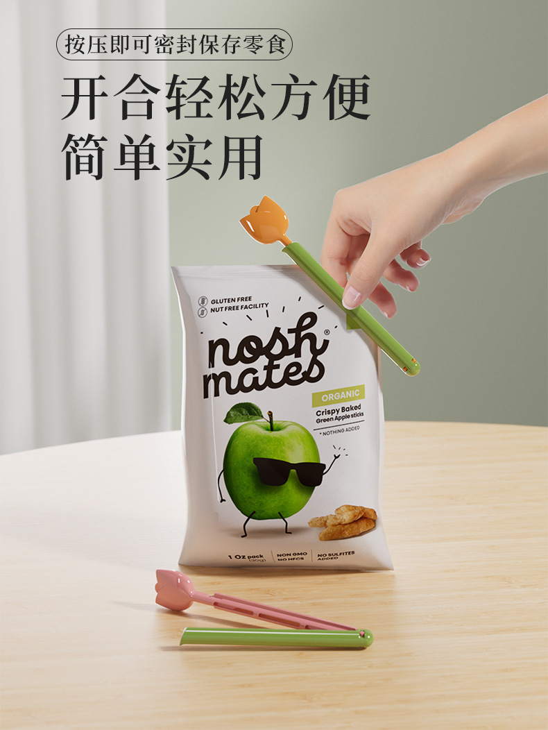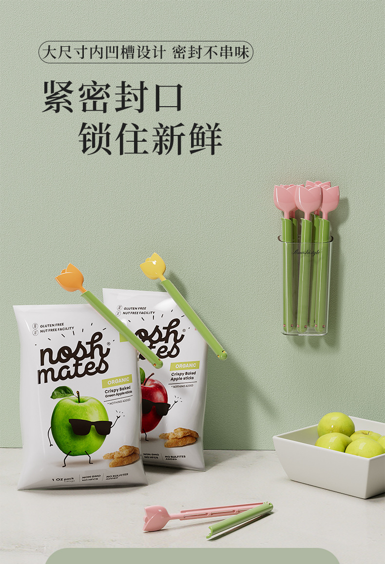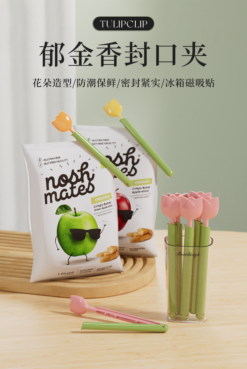 磁吸郁金香封口夹食物塑料袋防潮保鲜夹奶粉封口条神器零食密封夹